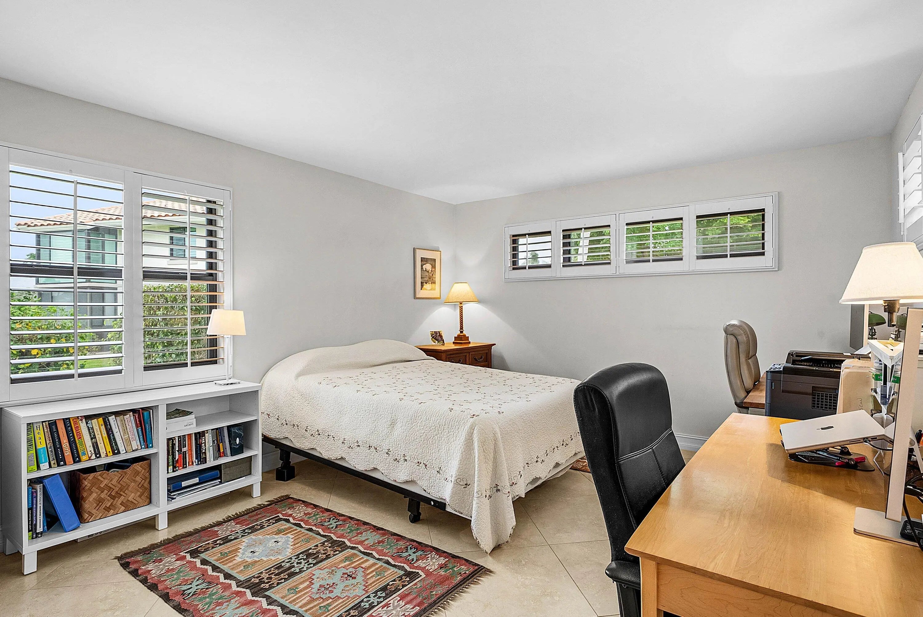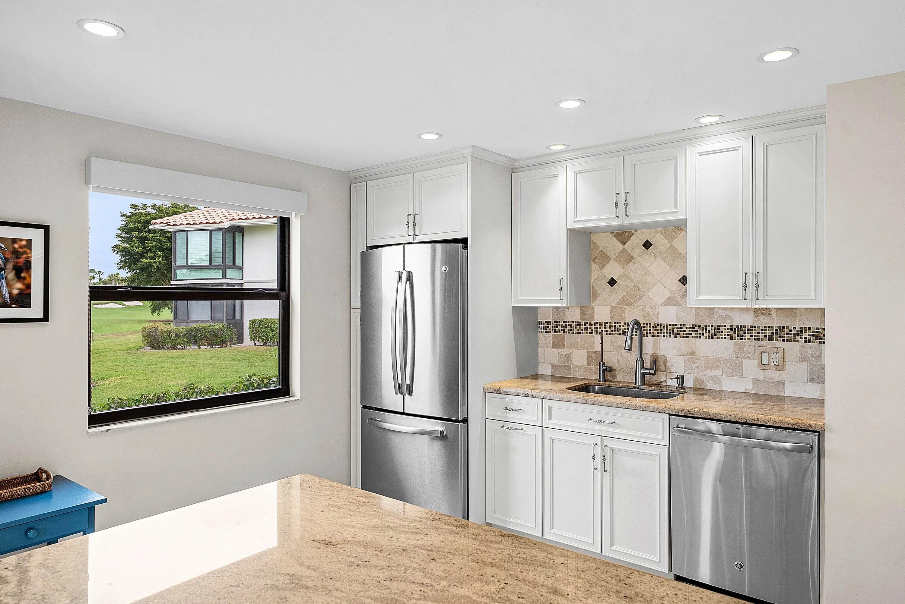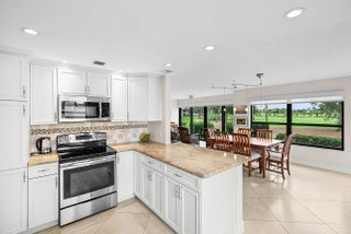 Exceptional golf course views wrap around this renovated 2-bedroom, 2-bath first-floor corner condo. This inviting residence features a front entry open patio and a light-filled interior designed for comfortable living and entertaining. The open kitchen and dining area bar graced with stone counter tops. Tile flooring set on the diagonal flows throughout, enhancing the spacious feel. Impact glass windows, plantation shutters and sunscreen blinds add both style and functionality. Enjoy serene fairway views and effortless first-floor living in this beautifully updated condo.Quail Ridge is a mandatory membership private club community offering many upscale amenities - golf, tennis, pickle ball, clubhouse with dining and social events all in a vibrant community atmosphere.