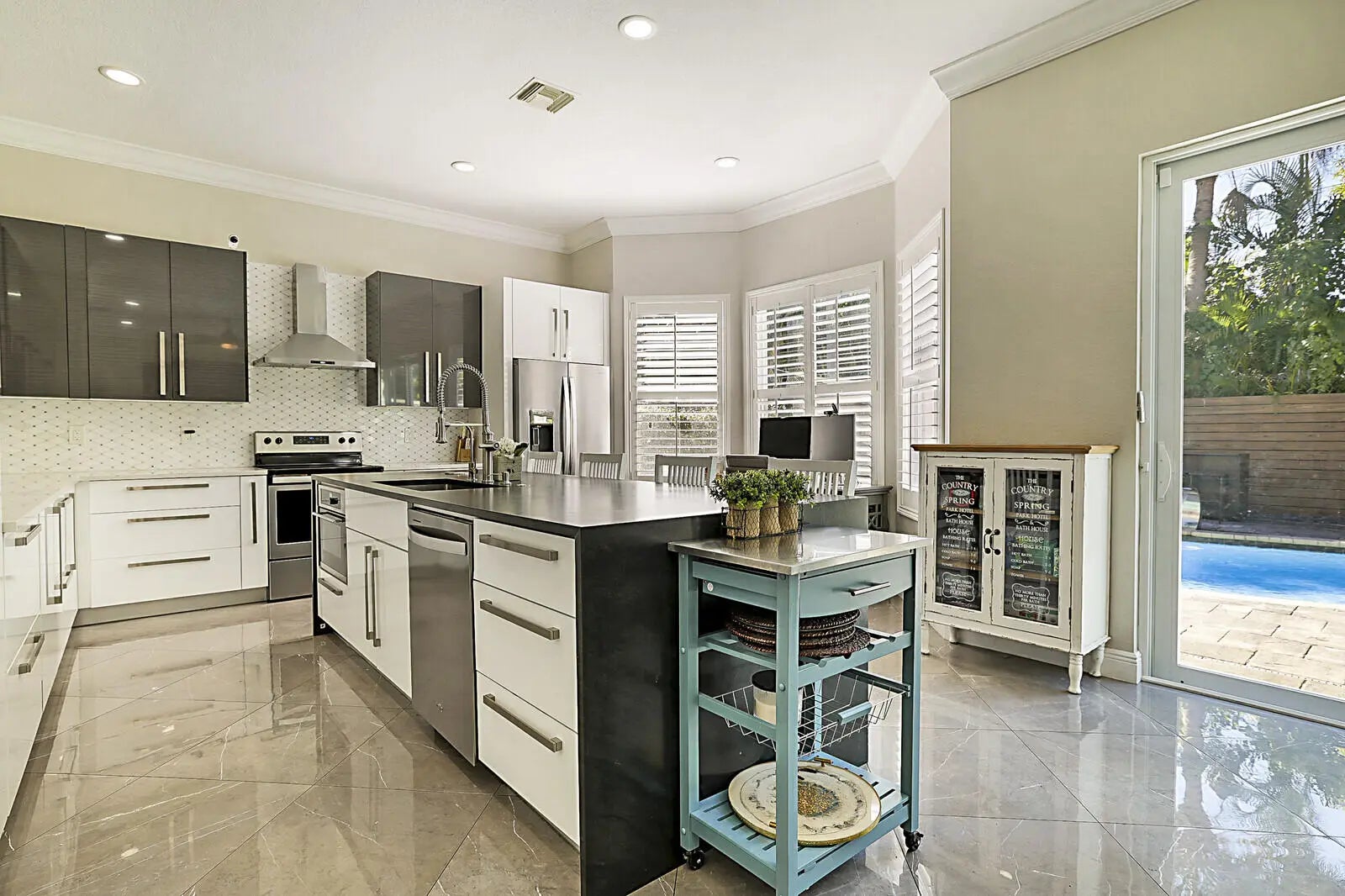 This beautifully upgraded 4-bedroom, 2.5-bath home with a 2-car garage delivers the ideal South Florida lifestyle. Enter through double impact doors to an open living and dining space featuring volume ceilings, recess lighting, crown molding and ceramic flooring throughout the main level. The renovated chef's kitchen showcases quartz countertops, a waterfall island, and abundant cabinetry. Impact sliding doors open to a private backyard oasis with a heated saltwater pool, outdoor kitchen, and outdoor shower. Marble staircases lead to the upper level where the oversized primary suite offers walk-in closets and a private en-suite bath. Additional bedrooms provide for guests, office, or family needs. Minutes from shopping, dining, beaches, and major highways. Inquire for more!!