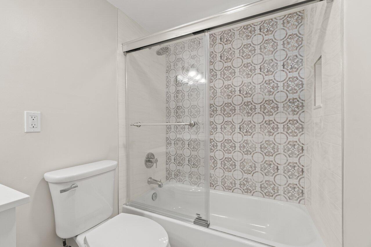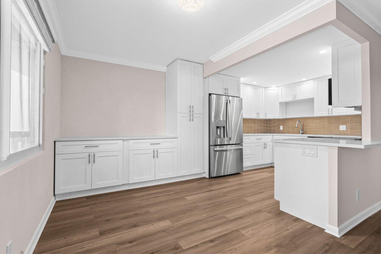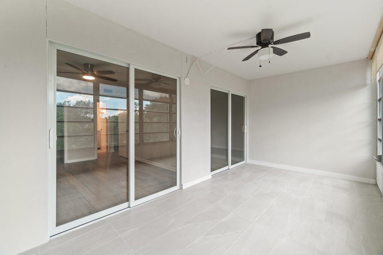 Brand New & pristine 2 bedroom and full 2 bath unit. Located in the BEST luxury building of Century Village East. New Roof. No assessments. All inspections completed. Reserves met. New impact windows and doors throughout. Open kitchen concept with white shaker cabinets, brand-new, stainless-steel GE appliances, quartz countertops, and glass tile backsplash. Top of the line wood-look laminate flooring. Freshly painted with elegant and neutral high-end paint. No Popcorn on ceilings. Primary room has large walk-in closet with custom built-ins and fully updated ensuite bathroom with glass shower doors. Guest bathroom is also fully updated. Spacious second bedroom with both rooms leading out to your private enclosed patiooverlooking the protected nature preserve. South facing patio has ample Florida sunshine and beautiful views of the serene nature preserve. Complete with newer A/C & brand new water heater. Oakridge D is extremely well-maintained building. Century Village has a newly redesigned clubhouse that offers over three-acres of entertainment, fitness, arts, resort style pool and indoor pool. Located just 3.5 miles from the Beach. Close to 95, turnpike, sawgrass, shopping and restaurants.