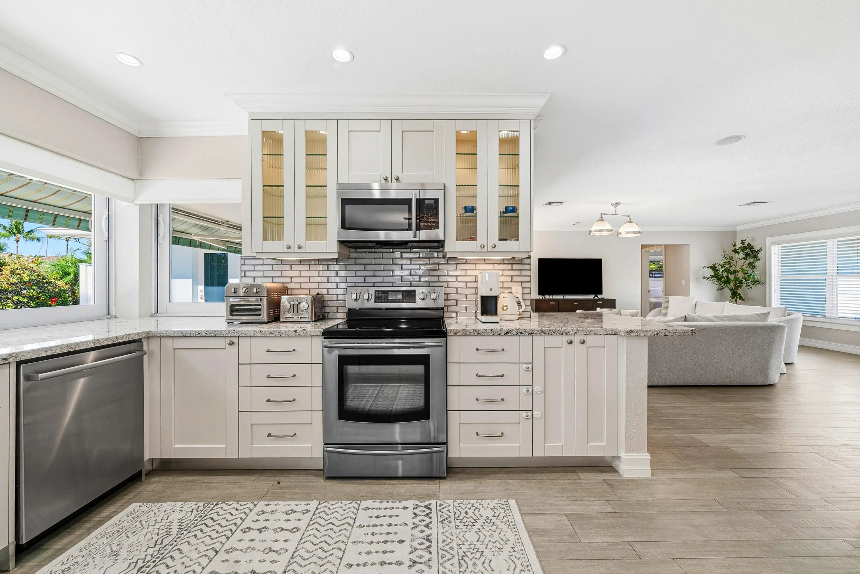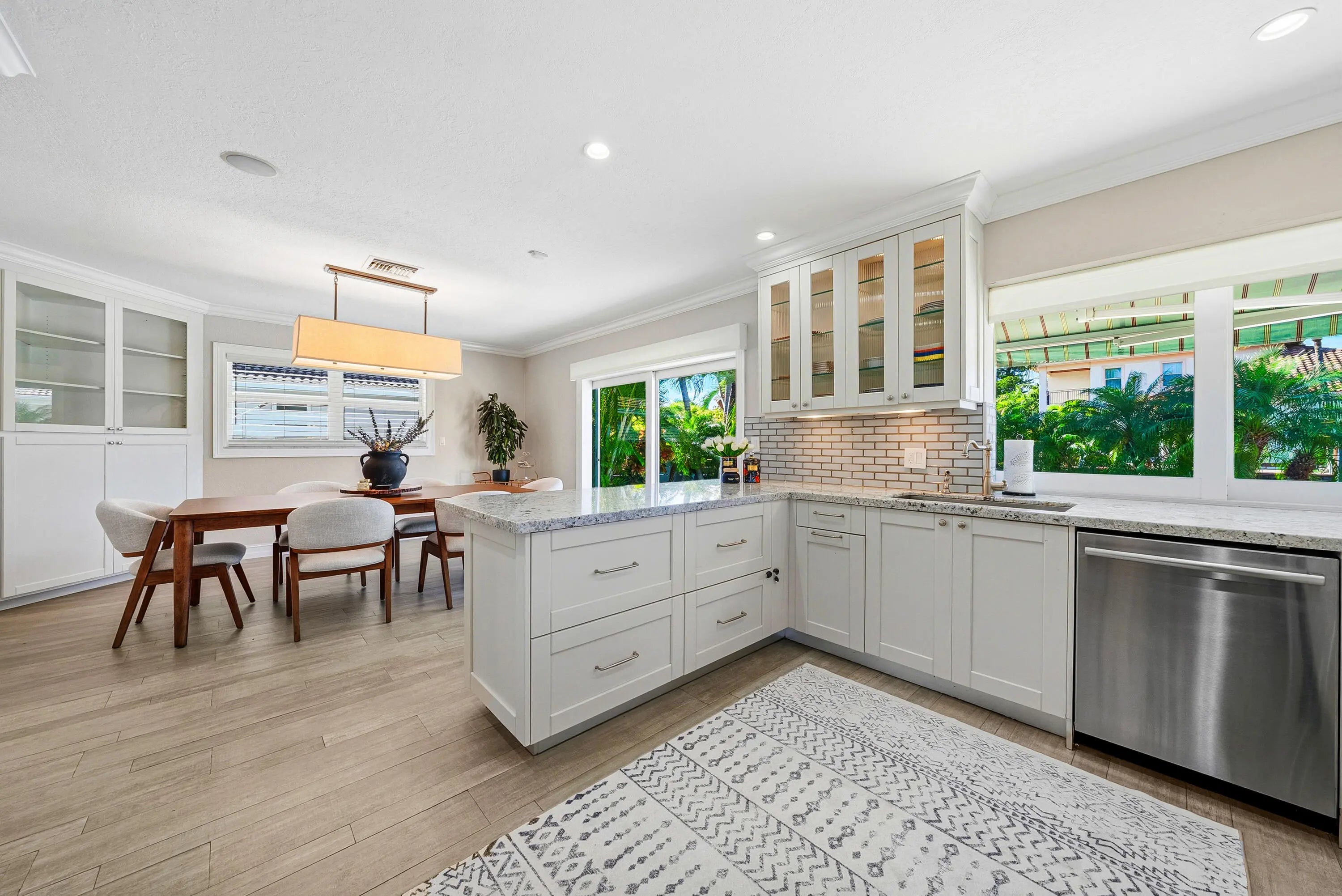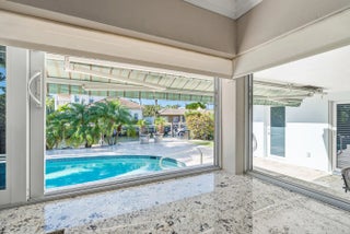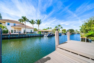 Furnished or unfurnished waterfront property is in one of the most desired East Boca Raton neighborhoods. Move-in Ready! Updated 3-bedroom, 2-bathroom waterfront home has 2-car garage, 75ft waterfrontage with a new dock with power, deep-water canal access, and no fixed bridges, offering quick, easy access to the Intracoastal and ocean and is located just off the Intracoastal. The home features wood-look tile flooring throughout, impact windows and doors. Resort-style heated saltwater pool and hot tub, elegant marble paver deck, covered patio, fenced yard, and lush tropical landscaping.