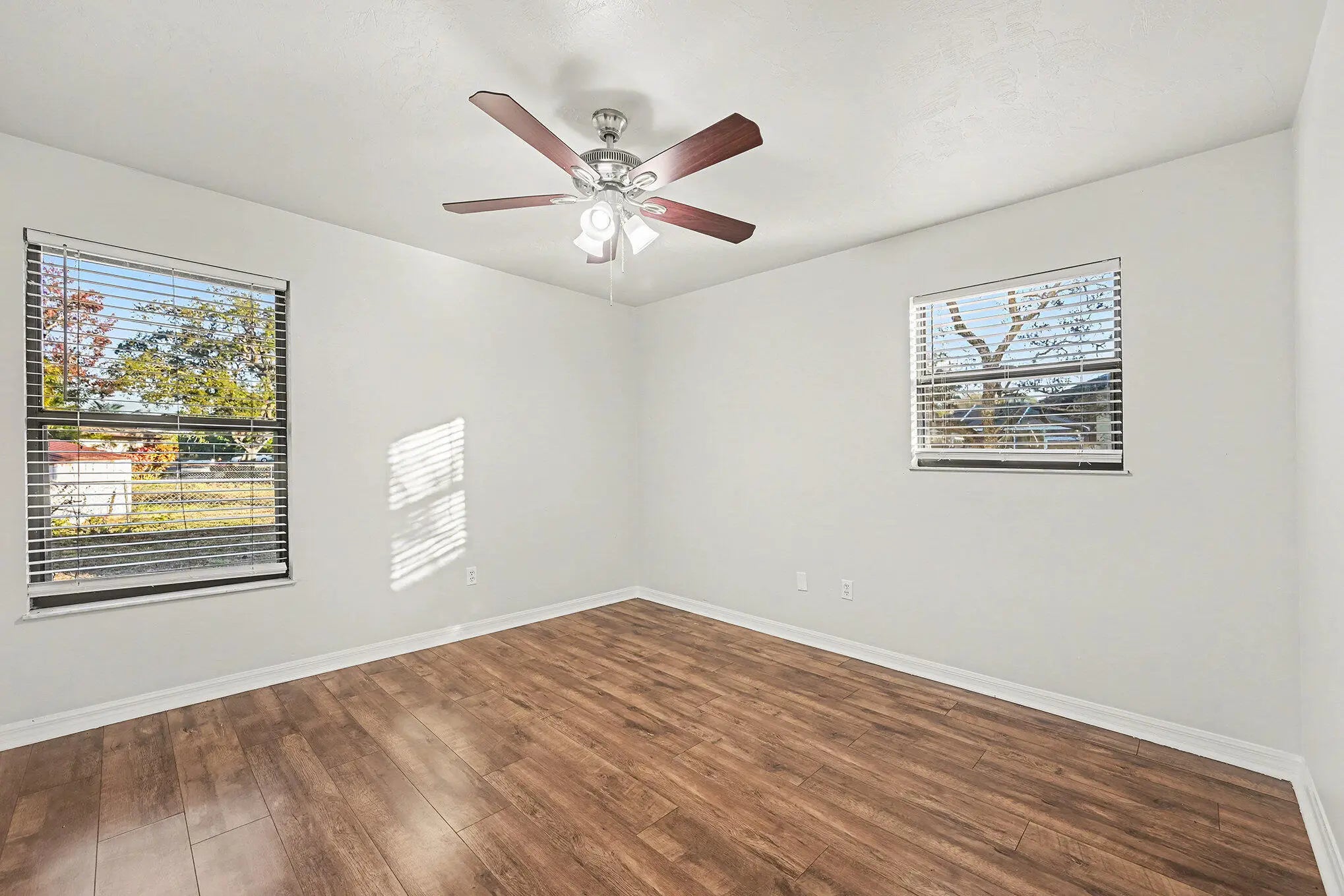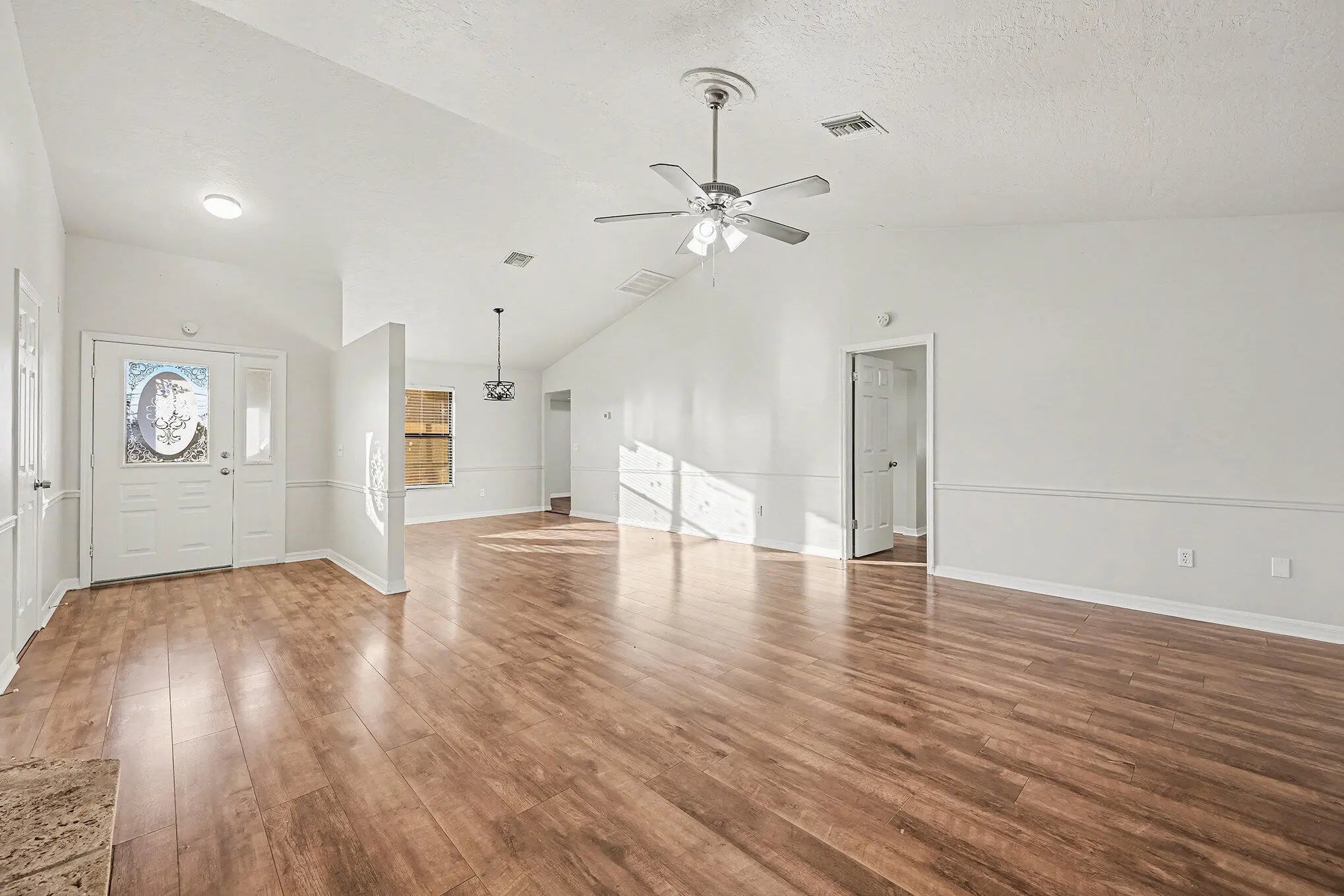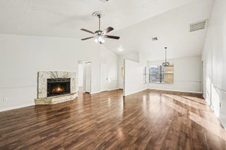 This move-in-ready home offers stylish updates and a functional layout, perfectly positioned between Kildare Park and Schumann Dr Park. Laminate flooring flows throughout the living areas and bedrooms, with durable vinyl plank in all wet areas. The living room is anchored by a cozy fireplace, creating a warm focal point for everyday living and entertaining. The kitchen features white shaker cabinetry, quartz countertops, and an appliance package including dishwasher, electric range, and microwave. The primary suite offers a walk-in closet, double-sink vanity with quartz tops, a walk-in shower, and a separate garden tub. The guest bath includes an updated vanity and a tub/shower combo. Additional highlights include a 2-car garage with electric washer/dryer hookups and a garage door opener.