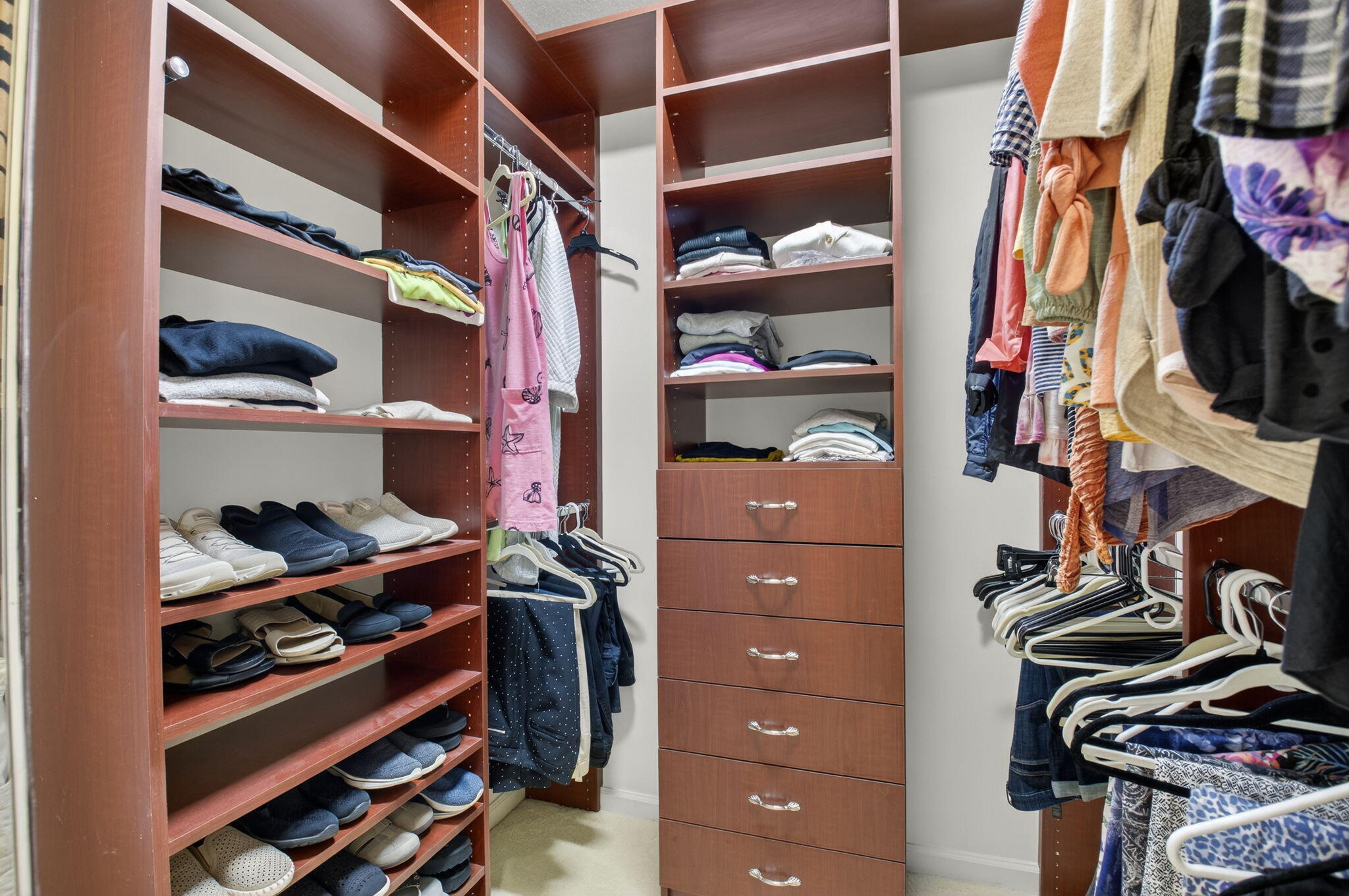 Built-in Shelves, Closet Cabinets, Foyer, Pantry, Split Bedroom, Volume Ceiling, Walk-in Closet