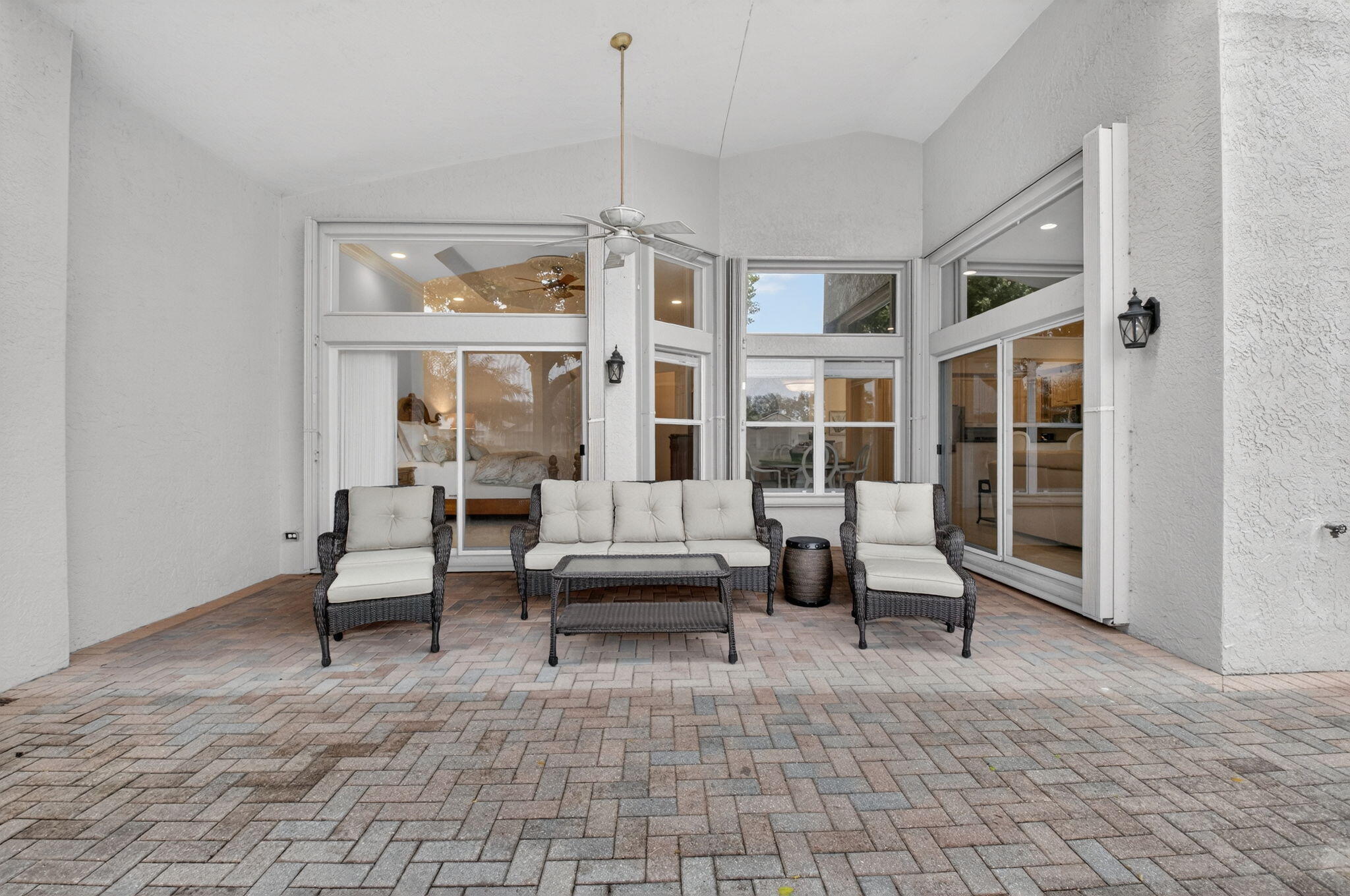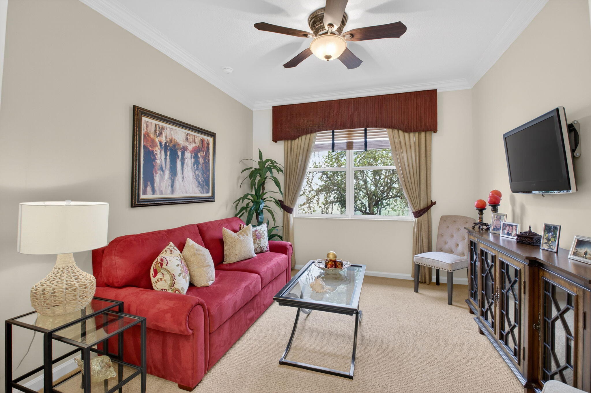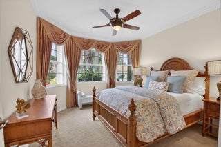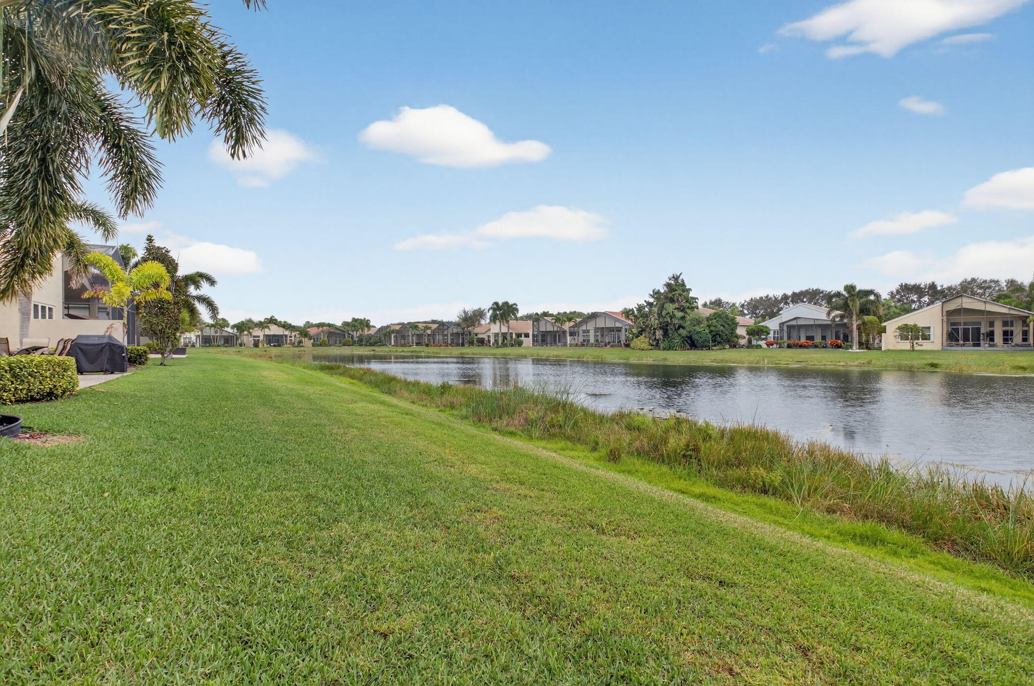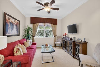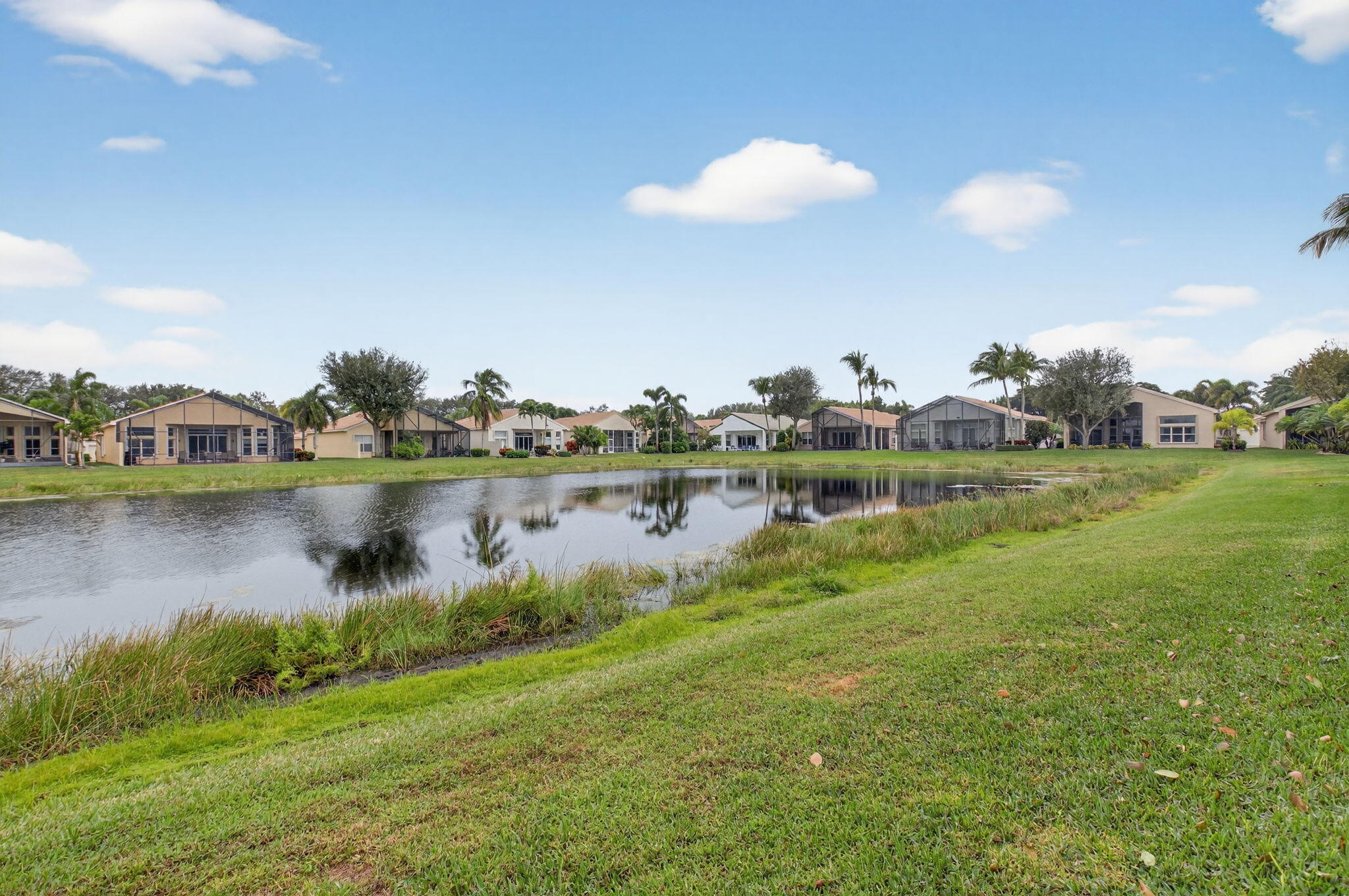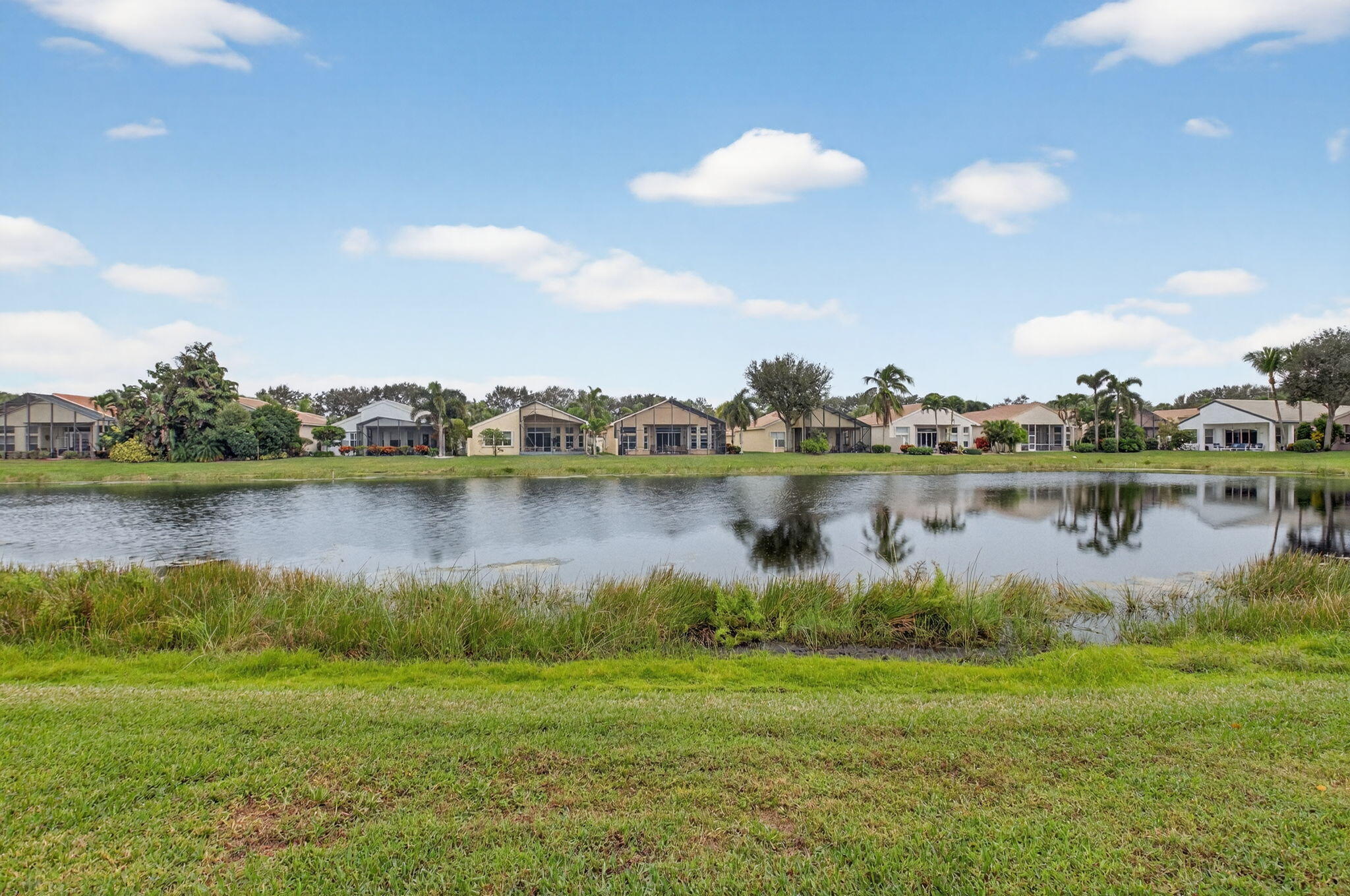 ONLY BRING YOUR TOOTHBRUSH!This stunning, turnkey 3-bedroom, 2.1-bath INDIAN model is perfectly situated on a serene tropical lakeview lot in the vibrant 55+ Valencia Palms community.A light-filled interior welcomes you with a dramatic foyer that opens to elegant formal living & dining rooms, ideal for both entertaining & everyday comfort. The sunny kitchen features 42'' cabinetry, granite countertops, & a fabulous breakfast nook, while transom windows throughout flood the family room with natural light.This meticulously maintained home offers peace of mind with a 2017 A/C 2021 water heater. Additional upgrades include custom moldings, wainscoting, glass shower doors, accordion shutters, adding both style & functionality.Move right in & enjoy true resort-style living, world-class amenitieValencia Palms has the best location close to beaches, restaurants and shopping.There is a gorgeous Clubhouse, Fitness Center,Resort Pools, Lap Pool, Resistance Pool, Billiard Room, Cafe', Social Events, Clubs,Shows, Grand Ball Rm. Pickleball, Tennis. Bocce Ball. Maintenance fee includes cafe card, Cable with all channels, internet, landline,ext. house painting,alarm,lawn/ tree care and so much more. Come enjoy the Valencia Palms Lifestyle. Buyer pays 1X capital contribution $5090. Maintenance fee $2520/quarter includes exterior house painting, lawncare, cable, internet, house phone, exterior pest control, power washing roofs and more.