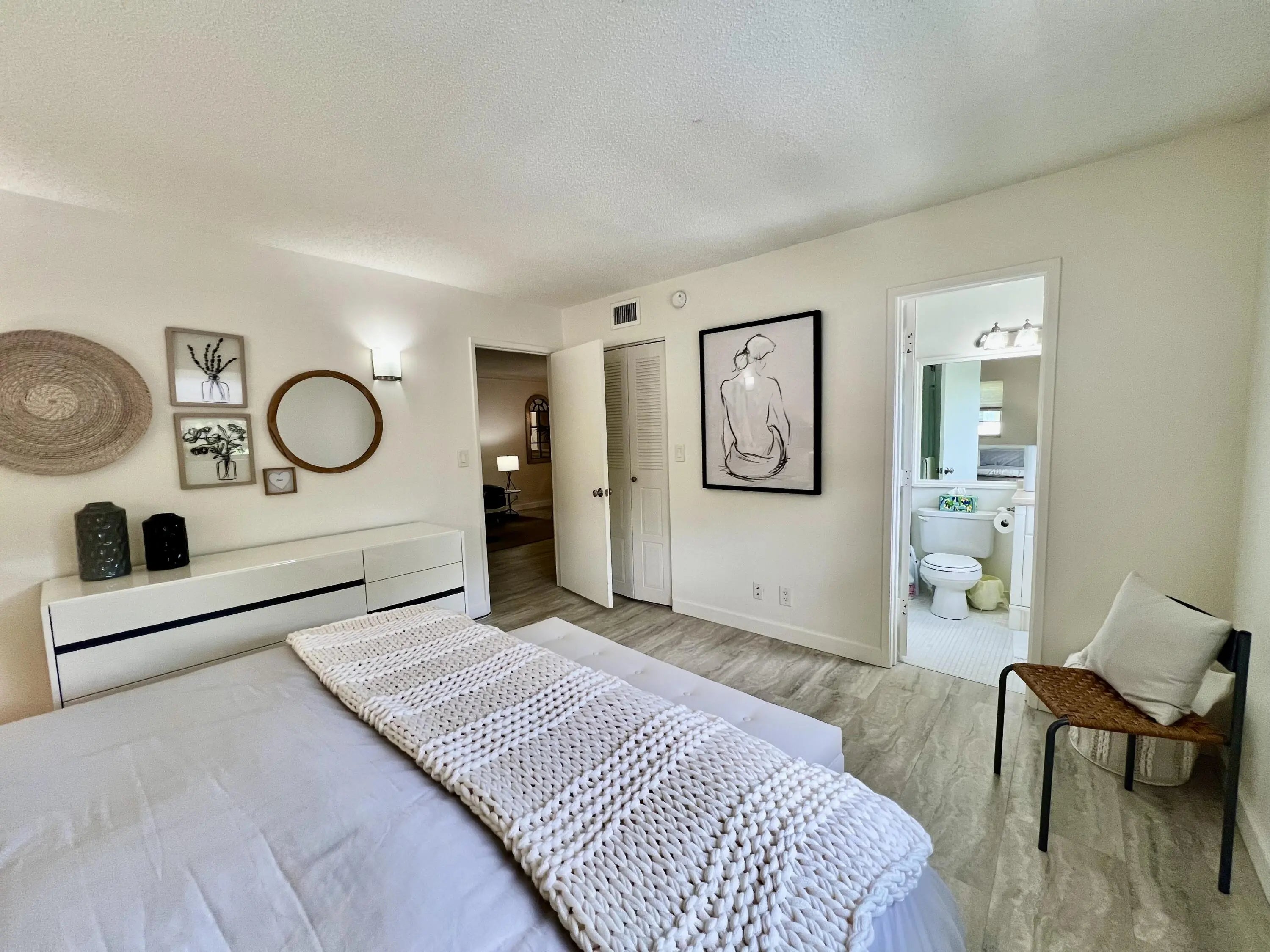 Modern and beautifully furnished 2BR/2BA corner unit in the desirable 55+ Meadows community. Located on the 2nd floor of Building 700--the newest phase with upgraded kitchen venting--this 870 sq.ft. condo offers garden views, turnkey comfort, and quality upgrades throughout. Renovated kitchen and master bath, newer A/C, dishwasher, electrical panel, fresh paint, and updated lighting. Walk-in closets, stylish blinds, and quality furnishings replaced in the last 3 years. Steps from laundry and parking. Enjoy a well-run community with great amenities and strong Canadian-American management. $40K in upgrades.