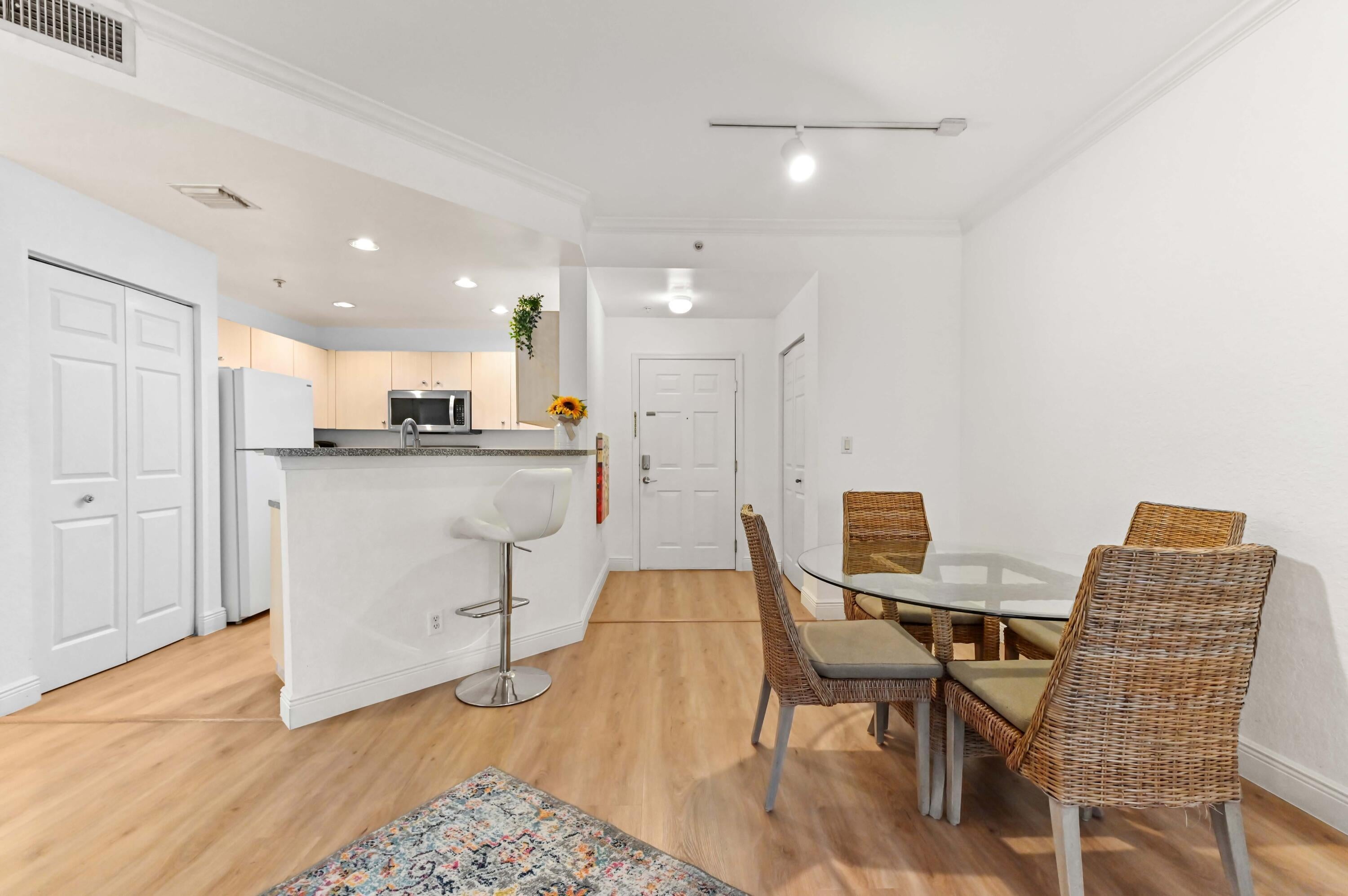 The short-term lease is available at a different price! Welcome to Flagler Pointe Condominiums! This well-maintained 2nd-floor unit offers 2 bedrooms and 1 bathroom with 999 sq ft of living space. The kitchen features appliances and a countertop with bar seating, perfect for casual dining and entertaining. Enjoy relaxing on the covered balcony, ideal for morning coffee or unwinding after a long day. Conveniently located near shopping, dining, and major roadways. A great opportunity for comfortable condo living or investment.