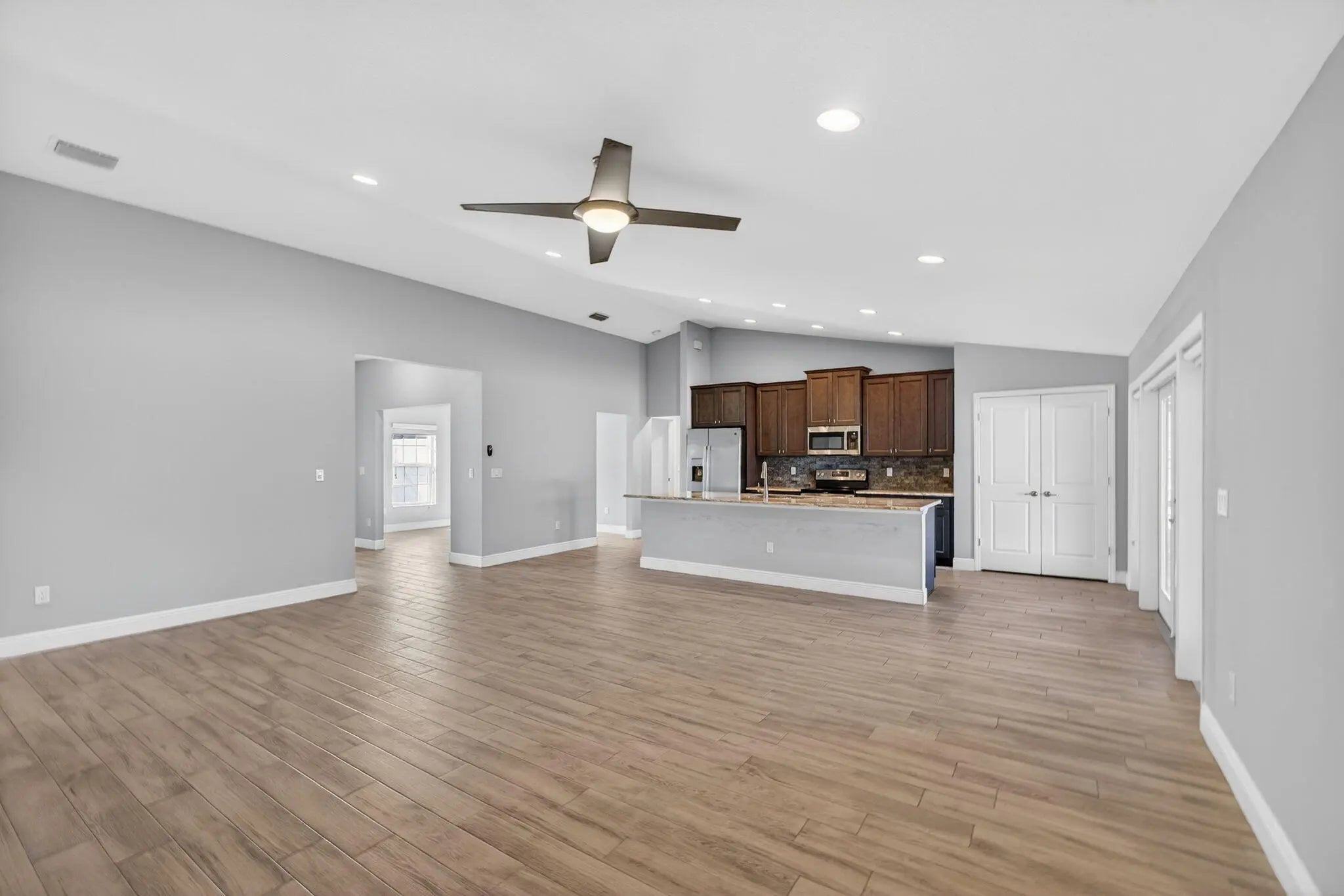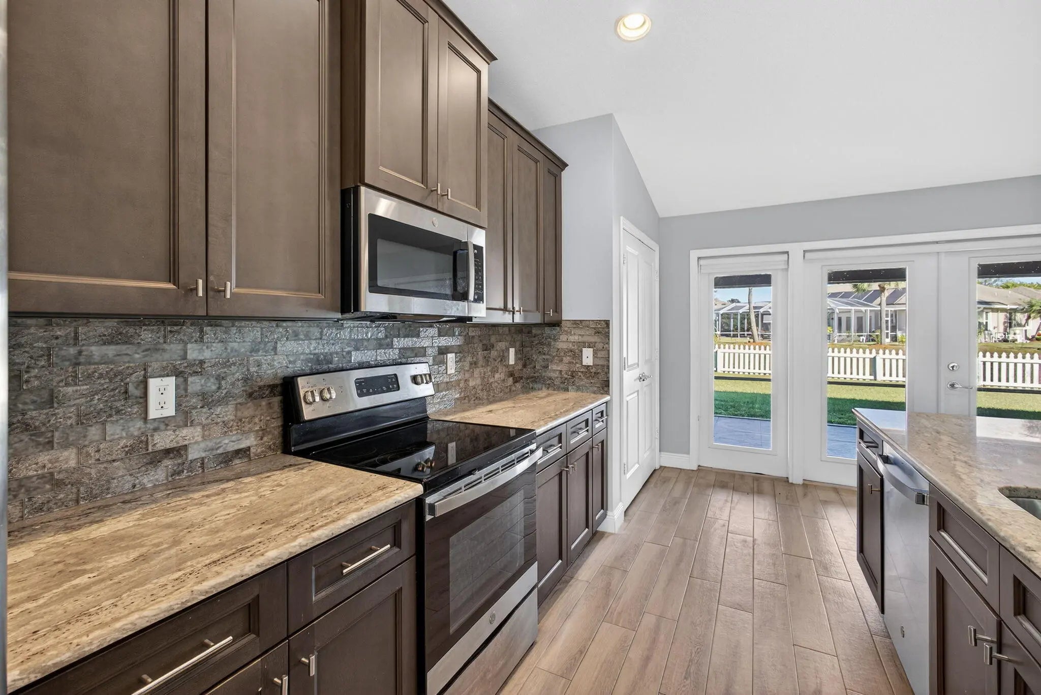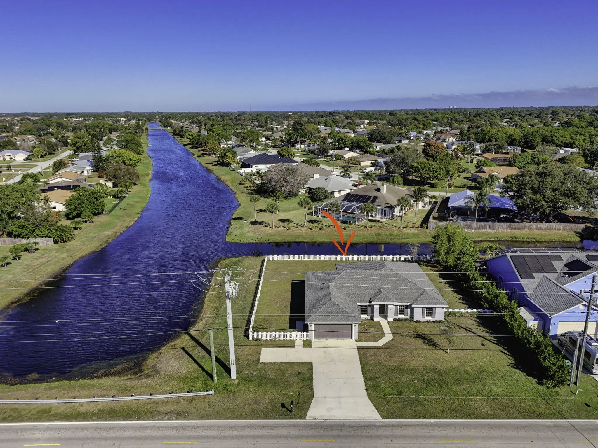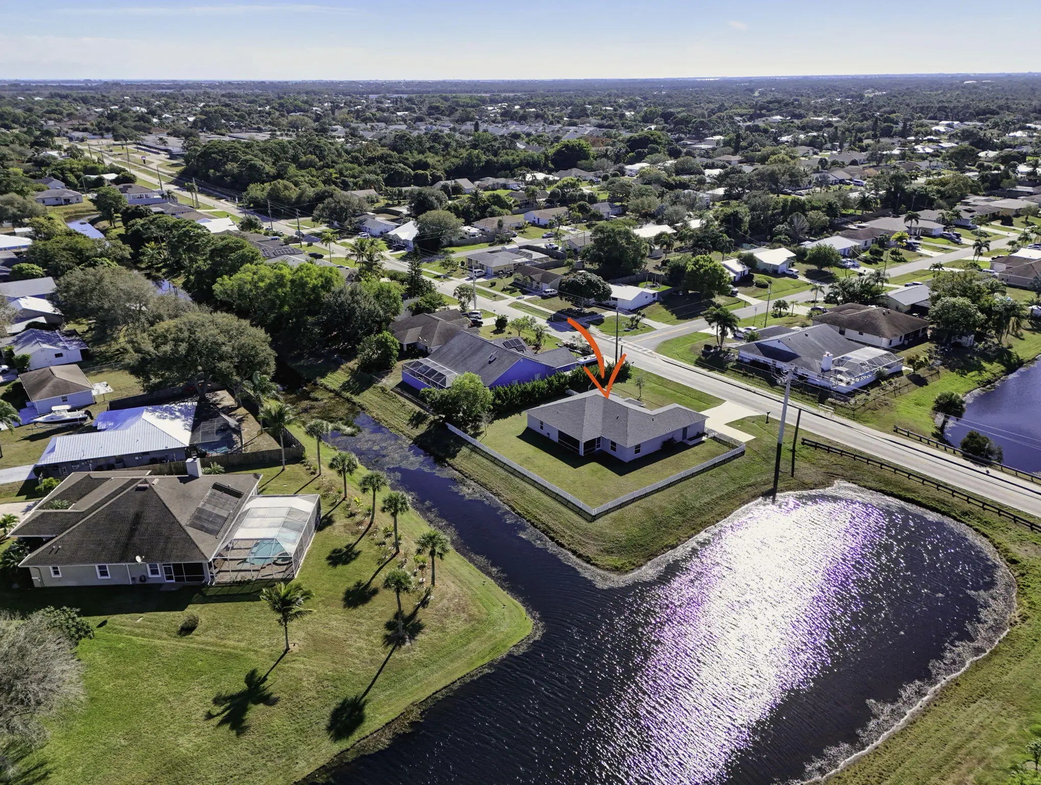 This elegant 4-bedroom, 3-bath residence, built in 2021, offers refined living with breathtaking lake views and a thoughtfully designed split floor plan. The home features a spacious den, formal dining area, and an open layout that blends comfort with sophistication. Step outside to a beautifully screened patio accented with striking mosaic tile, creating the perfect setting to relax and enjoy serene water views. The expansive yard, extended driveway turnaround for added convenience and safety, and the absence of an HOA provide a truly effortless lifestyle. Ideally positioned near the best of Jensen Beach, Port St. Lucie, and Fort Pierce, this exceptional property seamlessly combines modern design, privacy, and natural beauty.