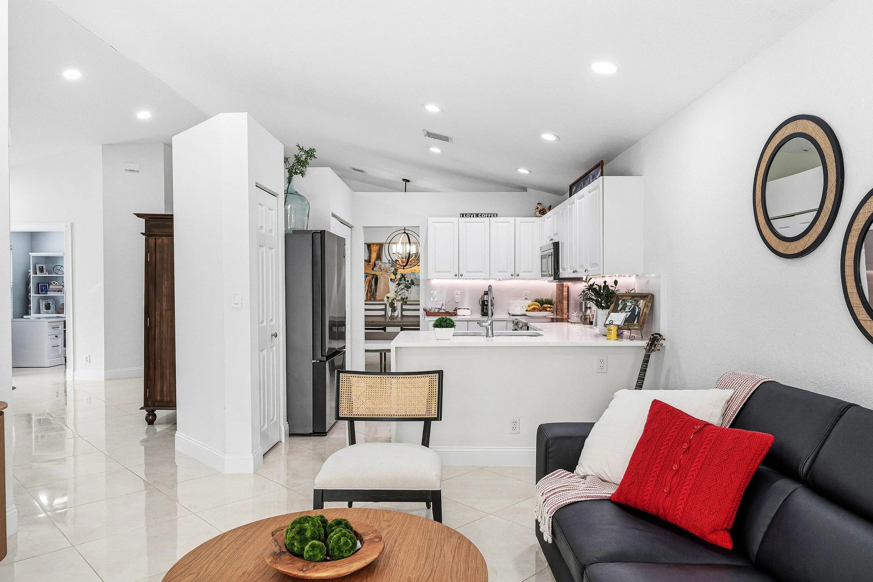 Welcome to Crescent Creek in the heart of Coconut Creek, an established neighborhood known for its quiet streets, convenient location, and strong sense of community. This 3-bedroom, 2-bath residence is beautifully maintained and offers peace of mind and modern comfort with an all-new kitchen and fully renovated bathrooms, a new roof (2021), full impact windows and doors installed in 2023, and a 2019 A/C system.Vaulted ceilings and an open, airy layout fill the home with abundant natural light, enhancing the bright, inviting interior. Ideally situated near parks, shopping, dining, and everyday conveniences, the home is just minutes from The Promenade at Coconut Creek, offering a vibrant mix of retail, restaurants, and entertainment.
