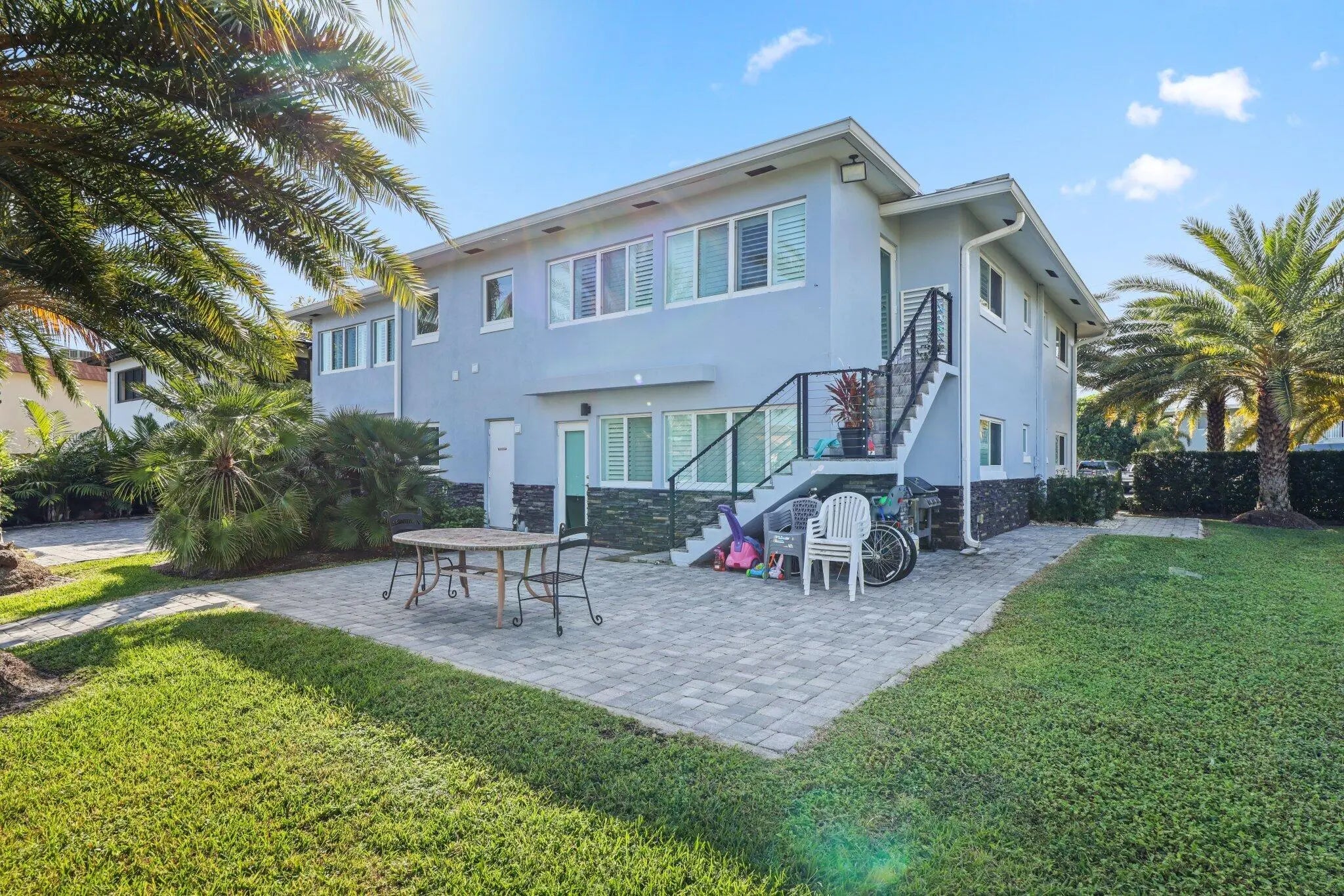 Exceptional opportunity to own a beautifully updated waterfront 4plex offering boat dockage and direct Intracoastal access with no fixed bridges. Situated on a prime corner lot with a huge side yard and 127 feet of waterfront, this property is ideal for both investors and end users. The building has been extensively improved with impact glass, a metal roof, brick paver patios, and modern railings. Each of the four 2-bedroom, 2-bath units includes a versatile den overlooking the water, updated kitchens with stainless steel appliances and quartz countertops, Porcelain flooring throughout, renovated bathrooms, and a large laundry room with full size washer and dryer in every unit. Live in one unit and dock your boat and rent out the other 3 or buy it as a fabulous investment