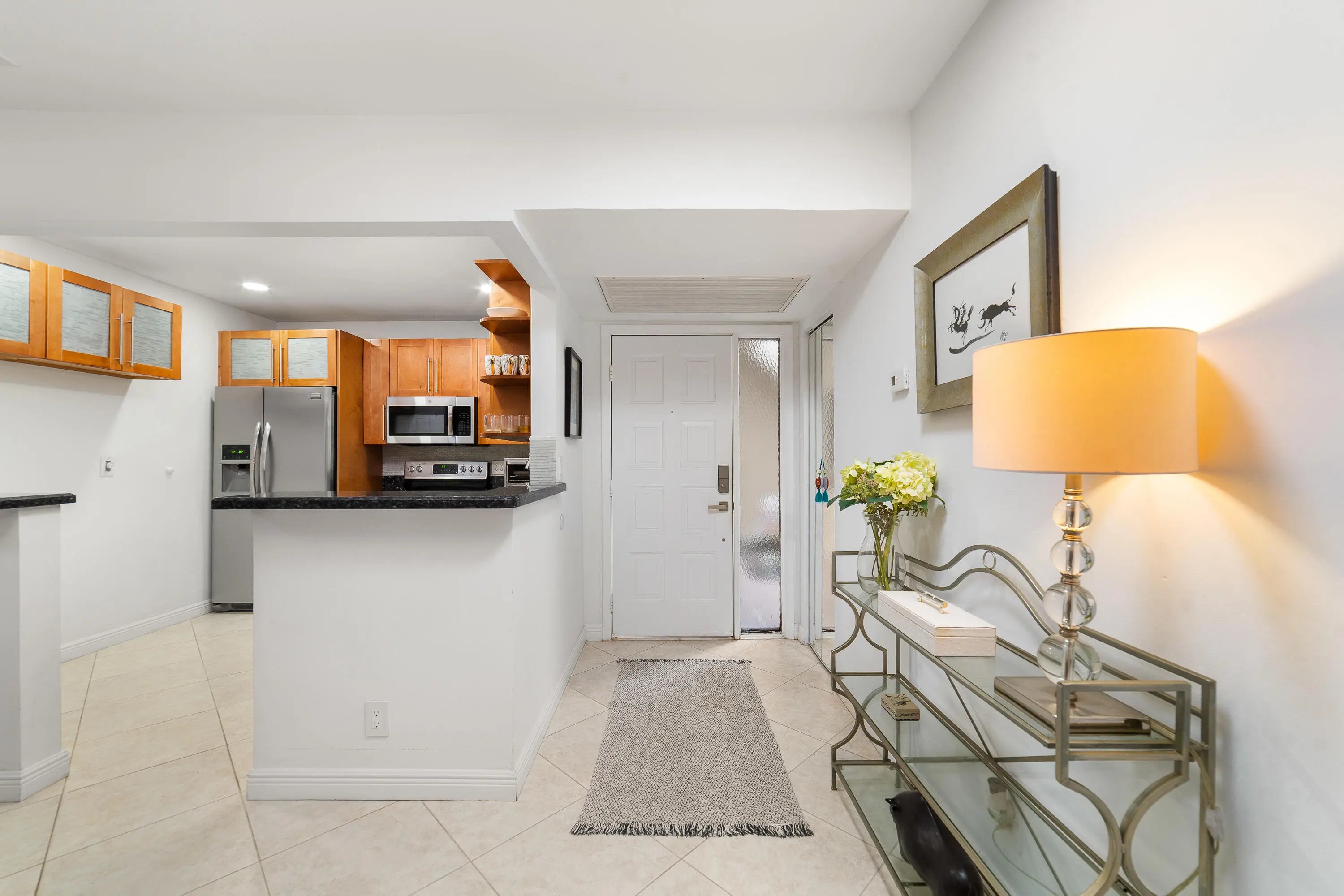 This stunning, updated, well-maintained, GROUNF FLOOR 3 bedroom, 2 bathroom unit is move-in ready! It features tile floors laid diagonally throughout. The kitchen is equipped with granite counter tops, stainless steel appliances, elegant shaker cabinets and backsplash. The primary bedroom has access to the patio and offers a generous walk-in closet with convenient built-ins. The primary bathroom features a shower and with a glass enclosure. The building roof was replaced in 2025. AC is 2019. Applewood Village is a fantastic community offering world-class amenities such as pool, fitness center, tennis, volleyball and pickleball courts, clubhouse and a movie theatre. It is just a few minutes away from the FL Turnpike and 441. The community is conveniently located to grocery stores and