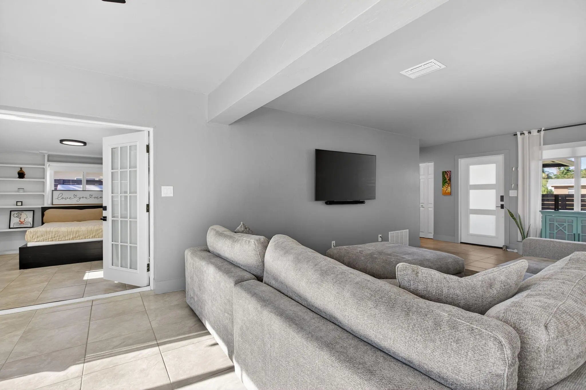 Built-in Shelves, Custom Mirror, Entry Lvl Lvng Area, Foyer, French Door, Stack Bedrooms