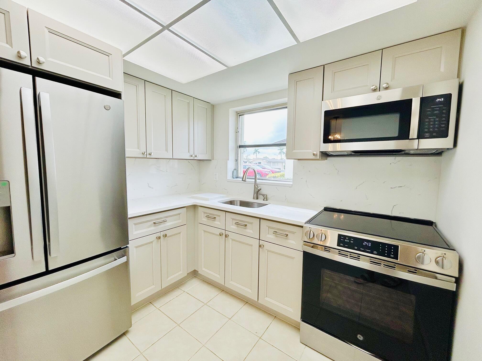 Beautifully renovated Villa in the Ashley section of the 55+ community of Cresthaven Villas. Hard to find pet friendly community. Dogs and cats welcome up to 35lbs. This Modern renovation includes brand new high end GE stainless steel appliances featuring a french door bottom freezer refrigerator with ice and filtered water, glass flat top self cleaning range with front controls, white shaker cabinets with deep single stainless steel sink, GCFI outlets, Quartz countertops and backsplash. Freshly cleaned light colored tile flooring. New light fixtures. Brand new bathroom offers an oversized vanity, GCFI outlet, new toilet, new bath tub and newly large tiled format shower walls, new plumbing and controls. The property offers many closets for storage. Linen closet, coat closet and walk in storage on the porch. Bedroom features full wall 12' long closet. Back screened in porch perfect to enjoy the Florida weather. Patios and BBQ's allowed. Hurricane accordion shutter on all glass windows and doors. Common laundry available just steps away and includes 2 washers and 2 dryers along with a clothes line. Community offers 1st rate amenities with a resort style heated pool, sauna, showers, clubhouse, theater, fitness center, library, bocce, shuffleboard, parties and activities. Close to beaches, medical, shopping and bus service.