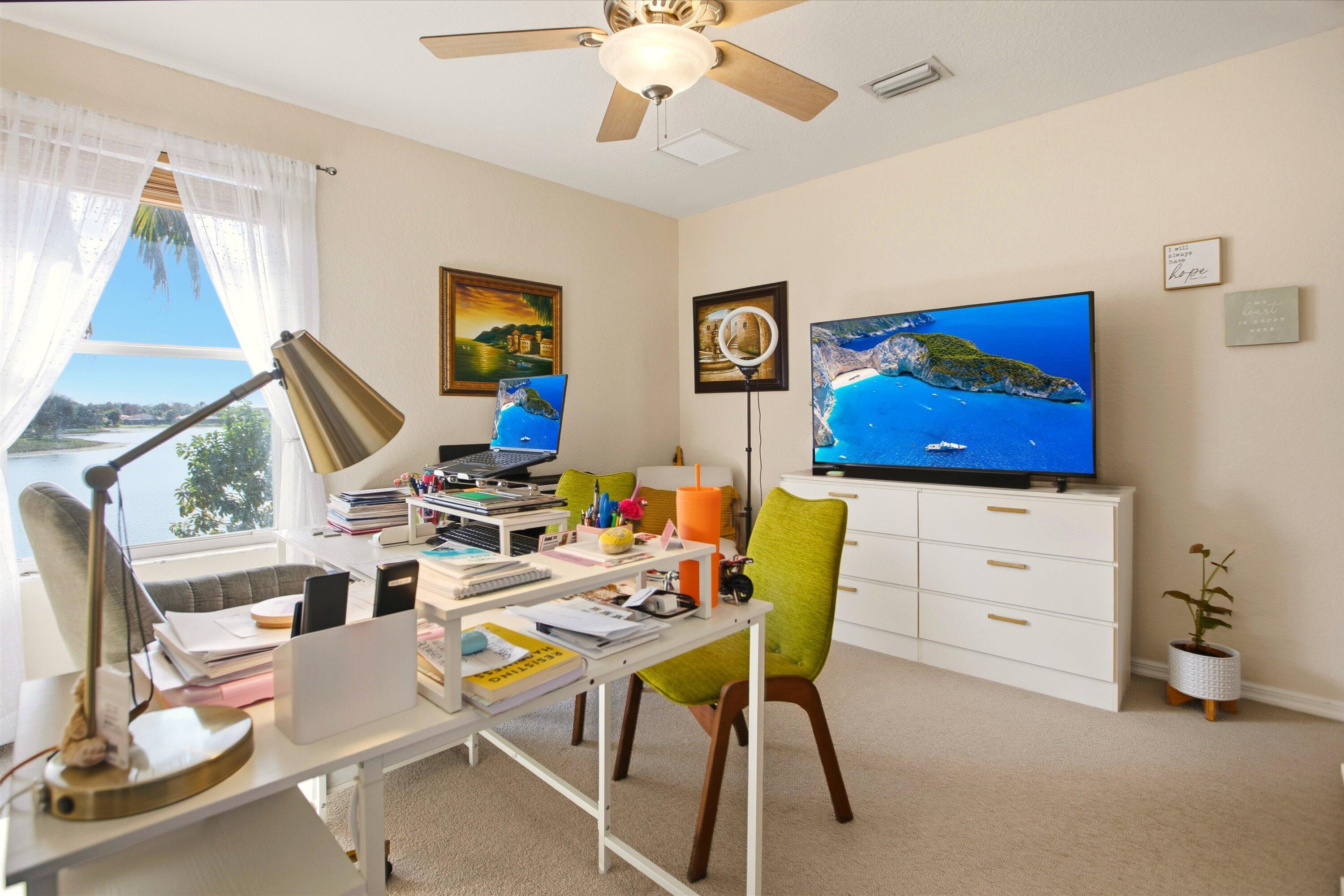 Welcome to this beautifully designed two-story home, offering 5 spacious bedrooms and 3 full bathrooms in a serene, gated community of only 200 homes. The 5th bedroom was opened up to create a large master suite, but can be converted to 5th bedroom again. Nestled on a premium waterfront lot, this property boasts breathtaking lake views that can be enjoyed from the comfort of your living spaces and backyard with fruits trees. The thoughtfully designed floor plan includes a downstairs bedroom with its own bathroom--perfect for guests or multi-generational living. Upstairs, you'll find four additional bedrooms, including a luxurious primary suite with panoramic lake views. 3rd car garage workshop was converted to an extra room in the home, (SEE MORE for ADDT'L DESC.)6 inch crown moldings throughout the house, except bedrooms and upstairs bathrooms. New A/C installed 1/24/20. The kitchen opens seamlessly into the living and dining areas, creating an inviting space for entertaining. Outside, the backyard offers a tranquil setting to relax and soak in the serene waterfront ambiance. Sunrises and sunsets are breathtaking. The way the property sits, from the backyard, you get the sunrise to your left and the sunset to your right. The back terrace has a convenient roll-down screen to keep the mosquitos out, and maintain a comfortable temperature. A spacious three-car garage provides ample storage, and the community amenities ensure a secure and upscale lifestyle. This home combines elegance, comfort, and a prime location, making it a rare gem in the much sought after Stonehaven community. Life here is unique. Neighbors are welcoming. Golf carts allowed. Property also has a built-in pest control that provides extermination through an exterior wall port on both sides of the property. Extra large walk-in pantry which can be converted into a great Chef's Pantry. HOA includes alarm monitoring, cable tv with 500 + channels, high speed internet, manned guard gate, pool, clubhouse, fitness room, and pickleball and tennis courts. Garages use a wireless garage opener app, and also 2 remotes. A/C is from January of 2020, and it gets maintenance every 6 months. Owner has hard copies of all original plans (interior and exterior), plus pictures from original build, and also flash drive with photos. Don't miss the opportunity to make this stunning Florida lakefront property your new home!