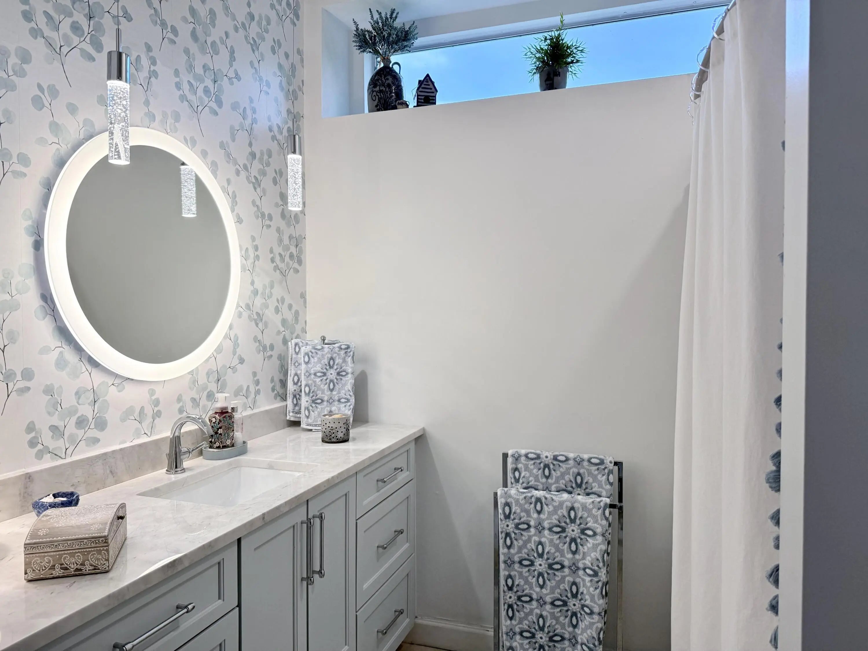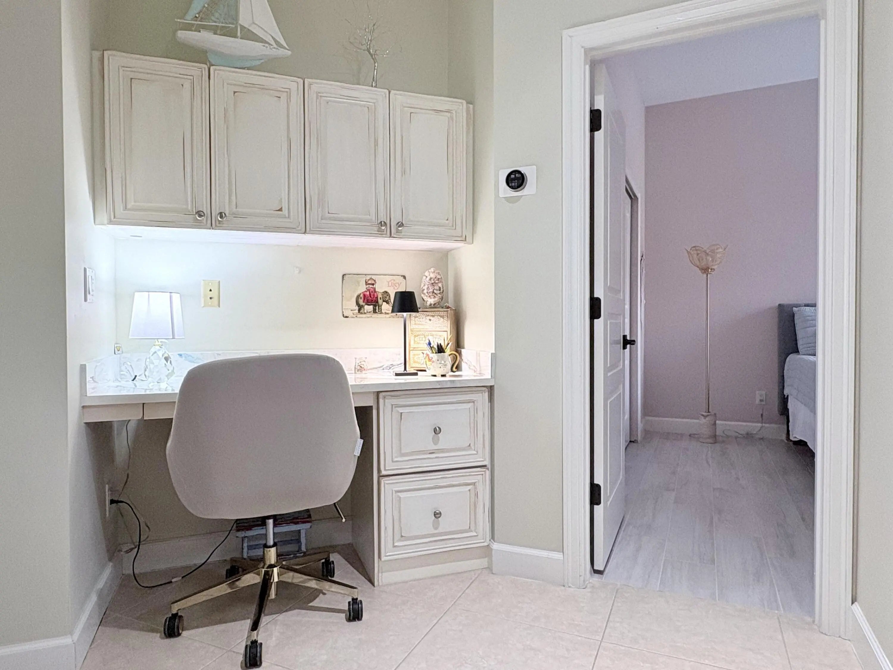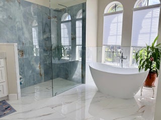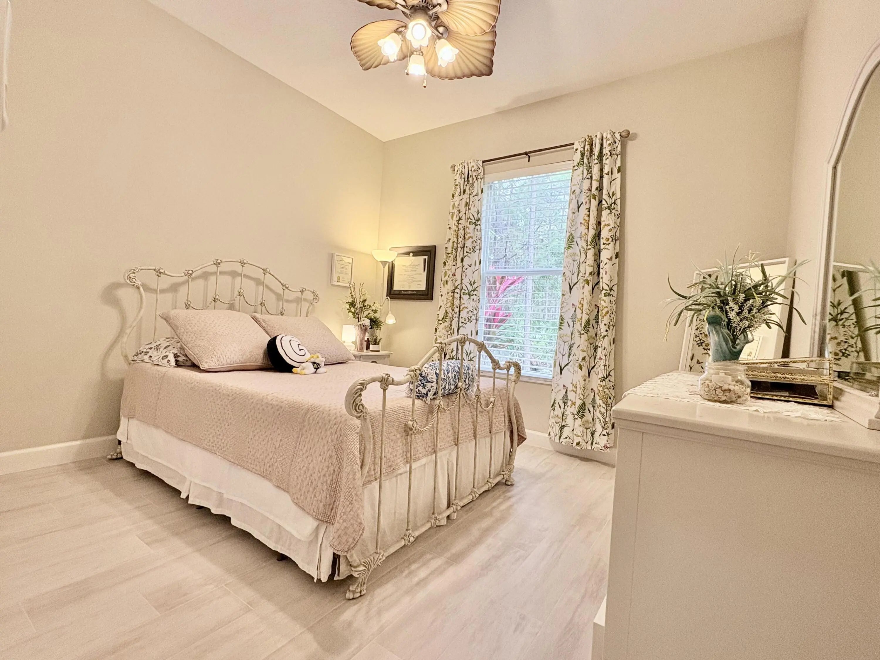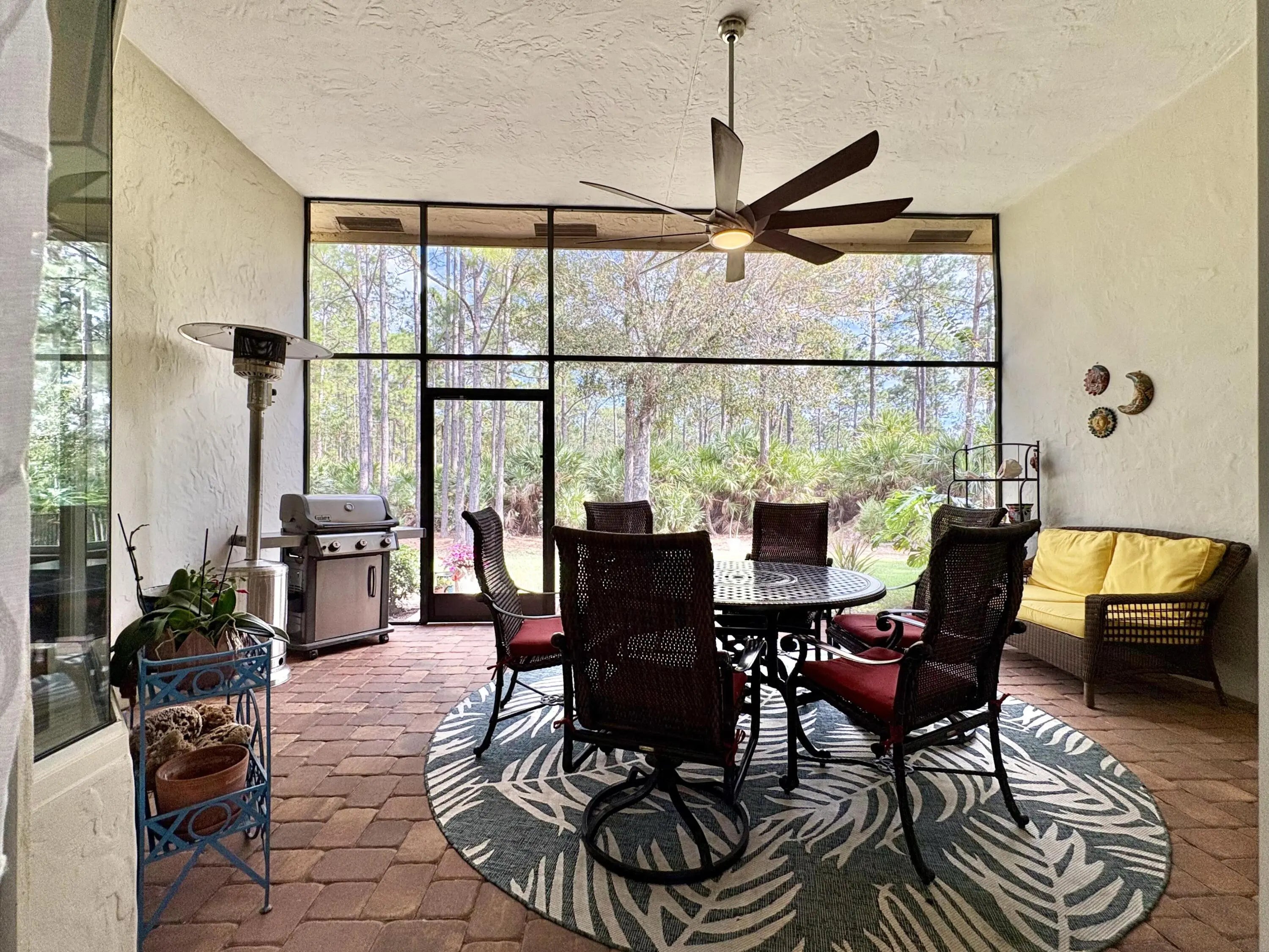 Beautifully renovated 4BR/3BA home in the gated community of The Vineyards in Port Saint Lucie, set on a quiet cul-de-sac with serene preserve views. A travertine-tiled entry and double impact-rated glass doors create a striking first impression. Inside, formal living and dining areas give an elegant welcome and flow to sliding glass doors opening to the outdoor living space. The remodeled kitchen features custom cabinetry, quartzite countertops, new appliances, and a Signature 36-inch counter-depth refrigerator. A separate bar area includes matching cabinetry and quartzite counters. Tile flooring throughout, including a spacious primary suite with 2'x4' porcelain tile, dual closets, and a fully redesigned bathroom. One guest bedroom has an en-suite bath, with two additional bedrooms