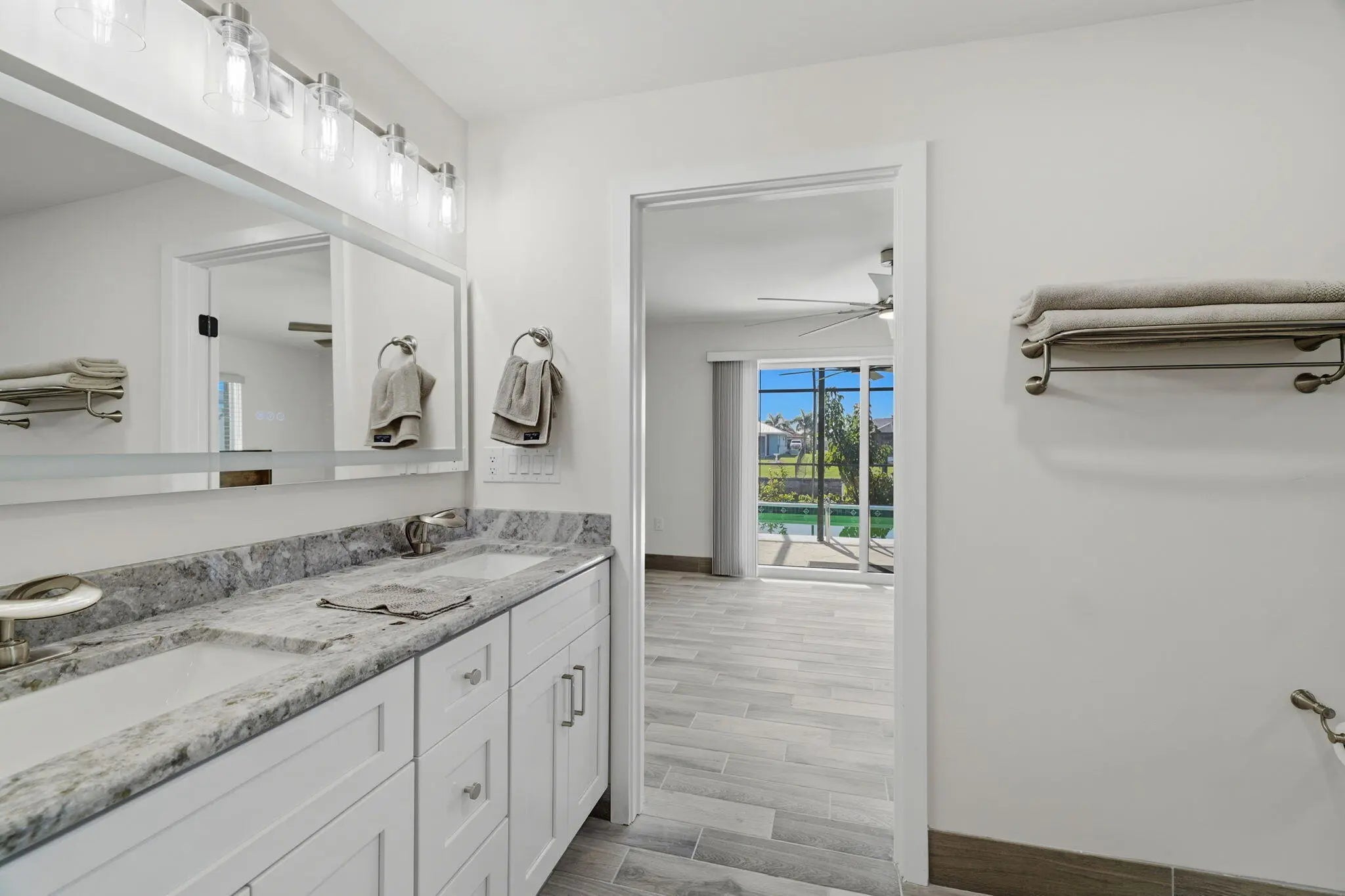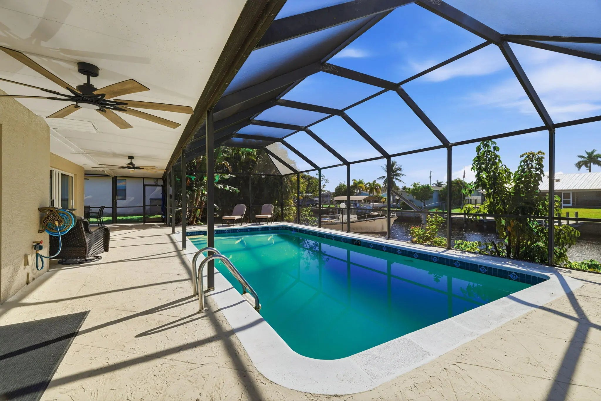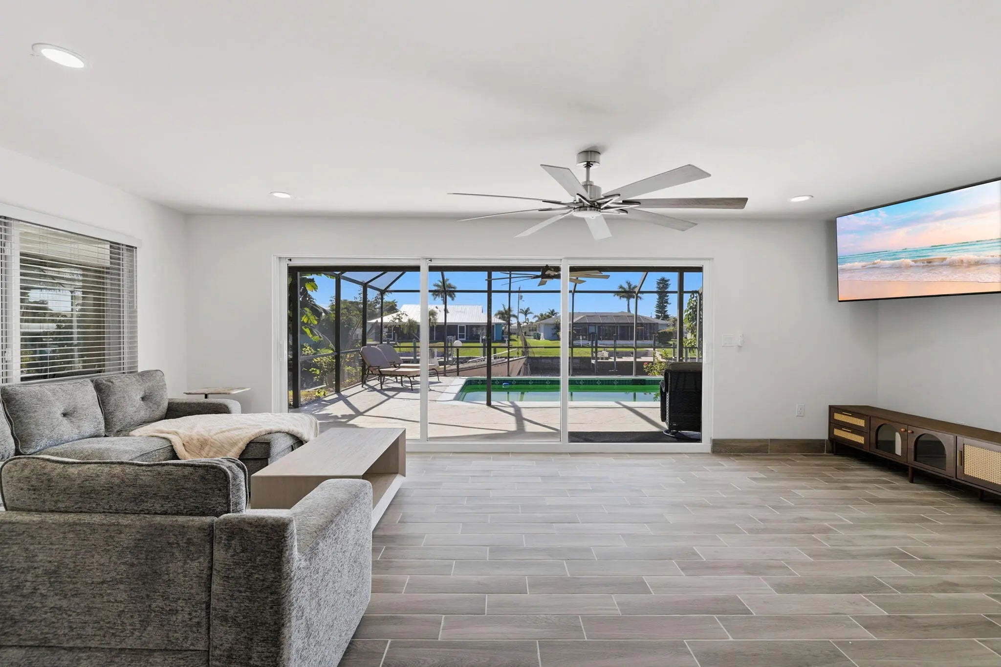 Bring your boat to this fully renovated riverfront pool home, perfect for full-time living or investment. The open-concept layout features brand-new flooring, updated electrical, plumbing, and HVAC, and a completely redesigned interior. The new kitchen shines with modern cabinetry, updated countertops, designer backsplash, and all-new appliances. All bathrooms have been fully updated, including a reimagined primary suite with a custom walk-in closet. Exterior upgrades include new stucco, driveway, pavers, soffits, impact doors and windows, garage door, and fresh paint. The pool has been resurfaced with a new deck finish and equipment--truly turnkey waterfront living.