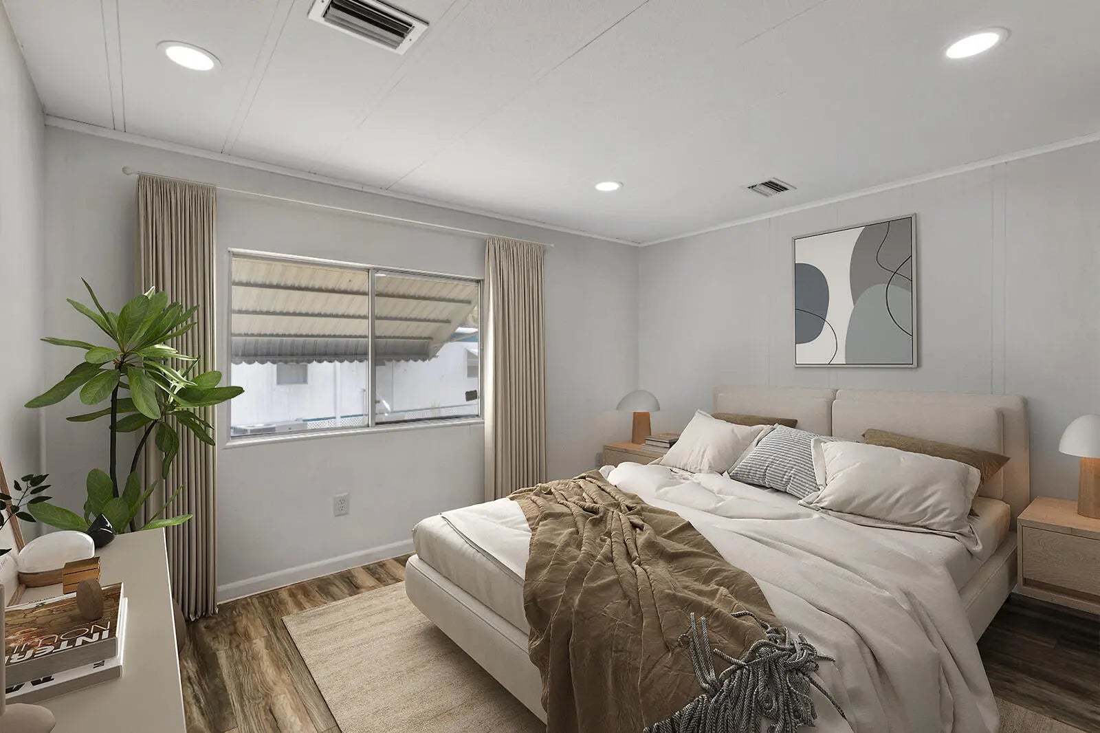 This beautifully renovated home offers 3/2bath, featuring a brand new full size kitchen with updated cabinets, a fully upgraded bathroom, and modern laminate flooring throughout. The home includes central AC, washer and dryer, and 2 storage sheds for extra space. Located in a quiet gated 55+ community, it is ideal for comfortable, low maintenance living.