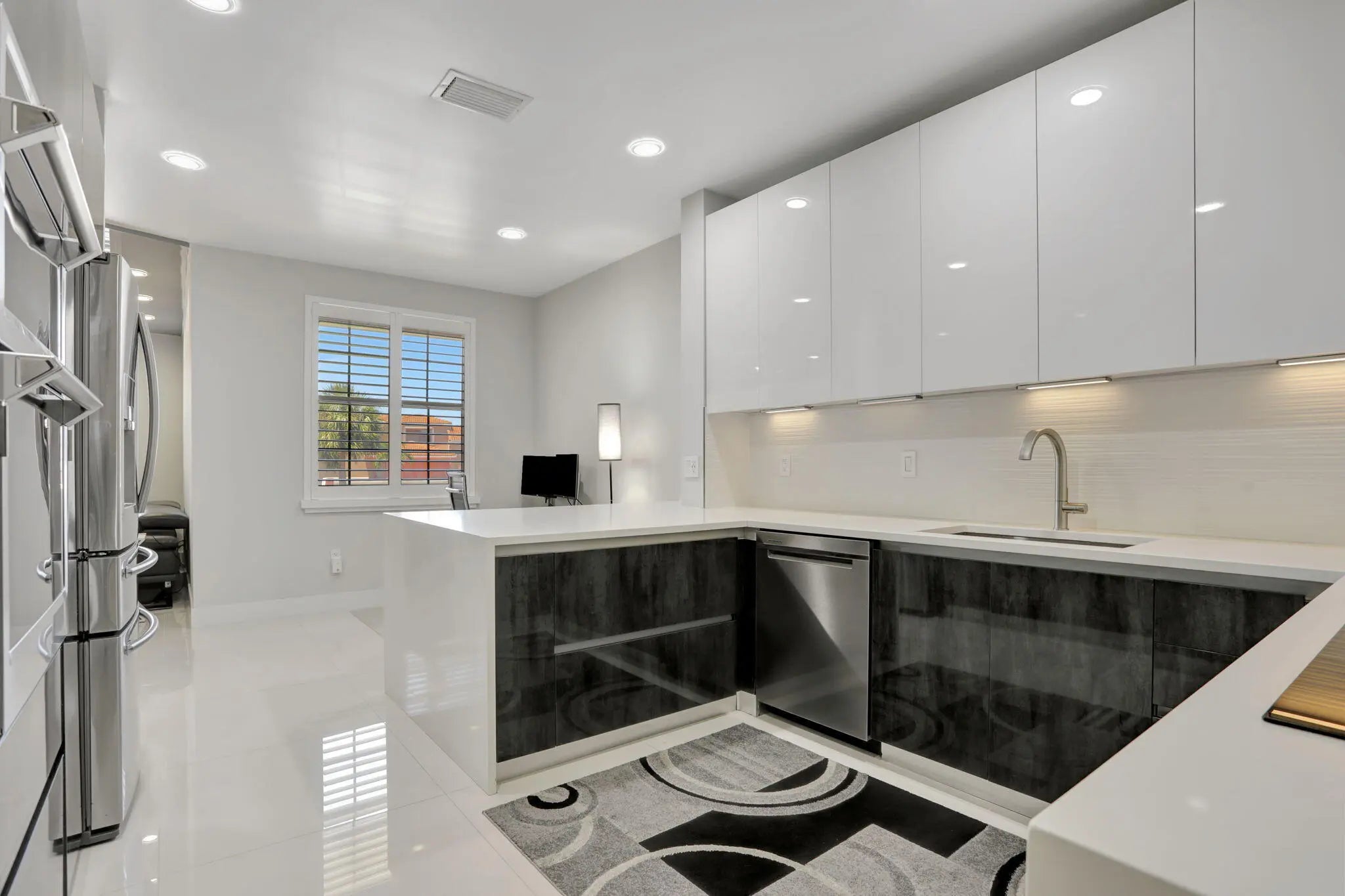 *Tenant occupied under seasonal lease until 4/15/26.* Contemporary 3 bedroom/2 bathroom townhouse in guard-gated, pet-friendly Boca Pointe features modernly renovated kitchen and bathrooms, porcelain tile floors throughout (no carpet), 1-car garage plus driveway and guest parking nearby, and newer tile roof (2020) with no outstanding assessments. Offered fully furnished and move-in ready. Spacious enclosed balcony is perfect for added living space. HOA includes landscaping, roof, building insurance, cable, security, and access to community satellite pool. Rentals permitted with a 4-month minimum lease. Centrally located in Boca Raton, zoned for A-rated schools, and close to shopping, dining, and beaches. Optional Boca Pointe Country Club membership available with golf.