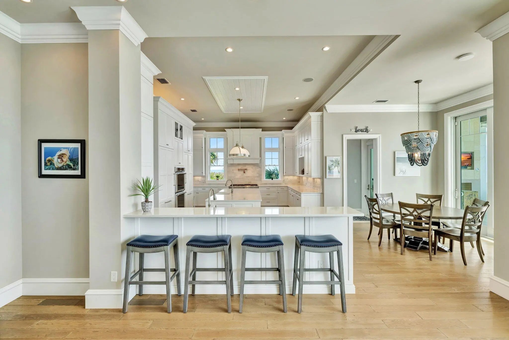 Exceptional custom-built oceanfront estate in a private gated enclave with 100 feet of pristine beach & stunning sunrise/sunset views. Designed for both entertaining and relaxed coastal living, this turnkey, fully furnished home features expansive covered outdoor space with built-in grill, fireplace, resort-style pool and outdoor shower. Boaters can enjoy a 50-foot private dock with easy Intracoastal and ocean access, while sea turtles and dolphins are just steps away. Interior highlights offer a great room opening to outdoor living, pub room with bar, theater seating for 12, professional kitchen with commercial grade appliances, large island with walk-in pantry. Sleeps 16 with five en-suite bedrooms with terraces, bunk room, oversized ocean view primary suite, elevator & 8 car garage.