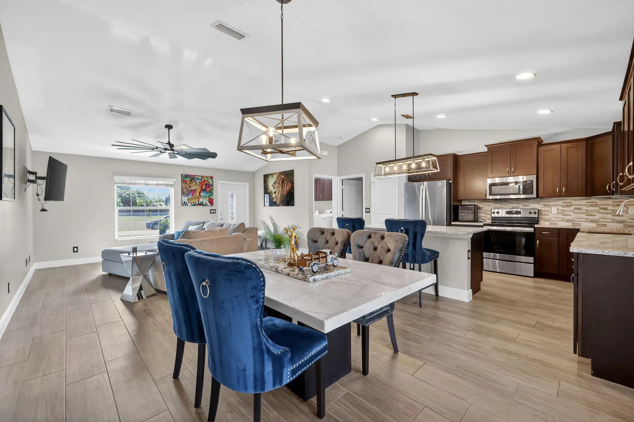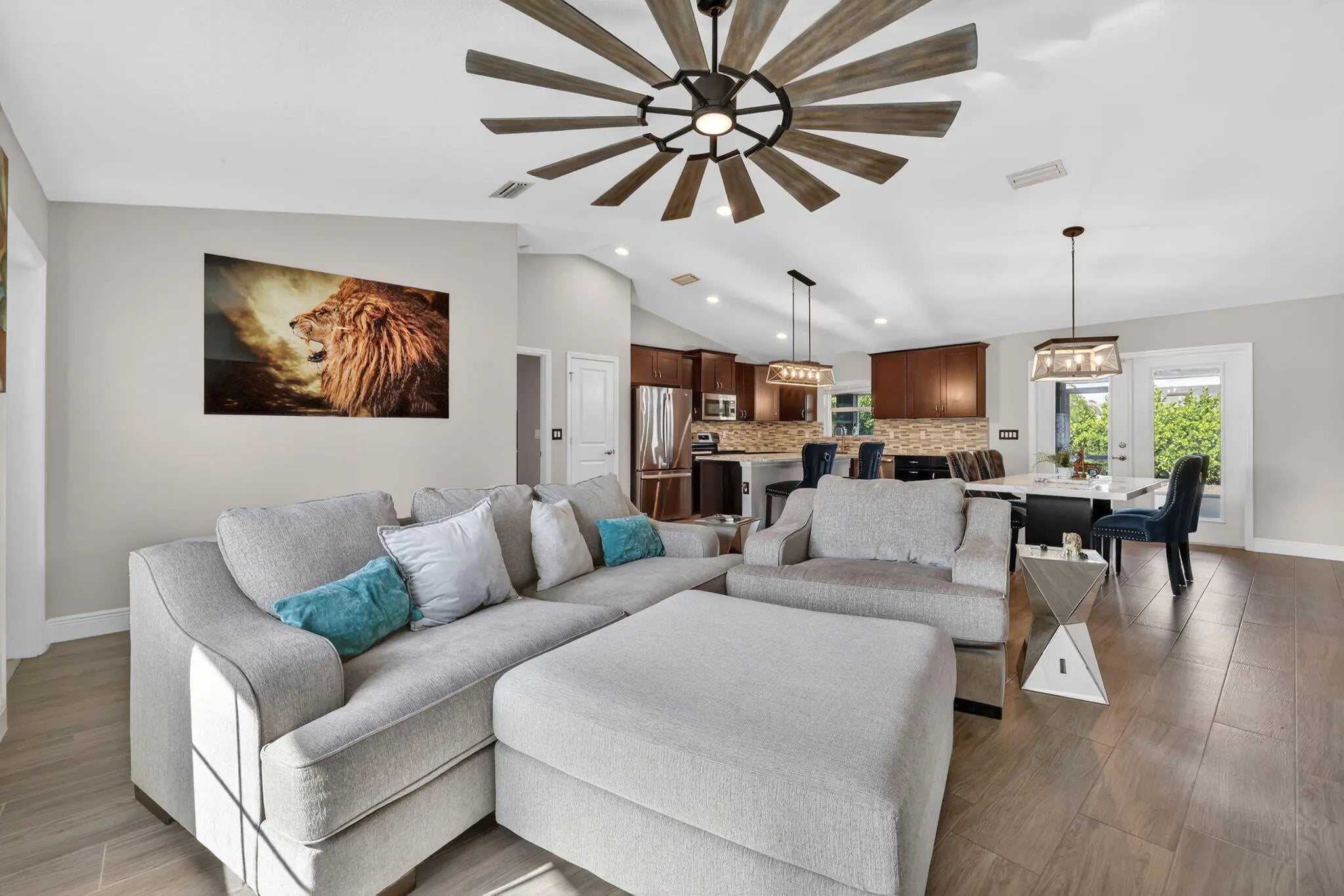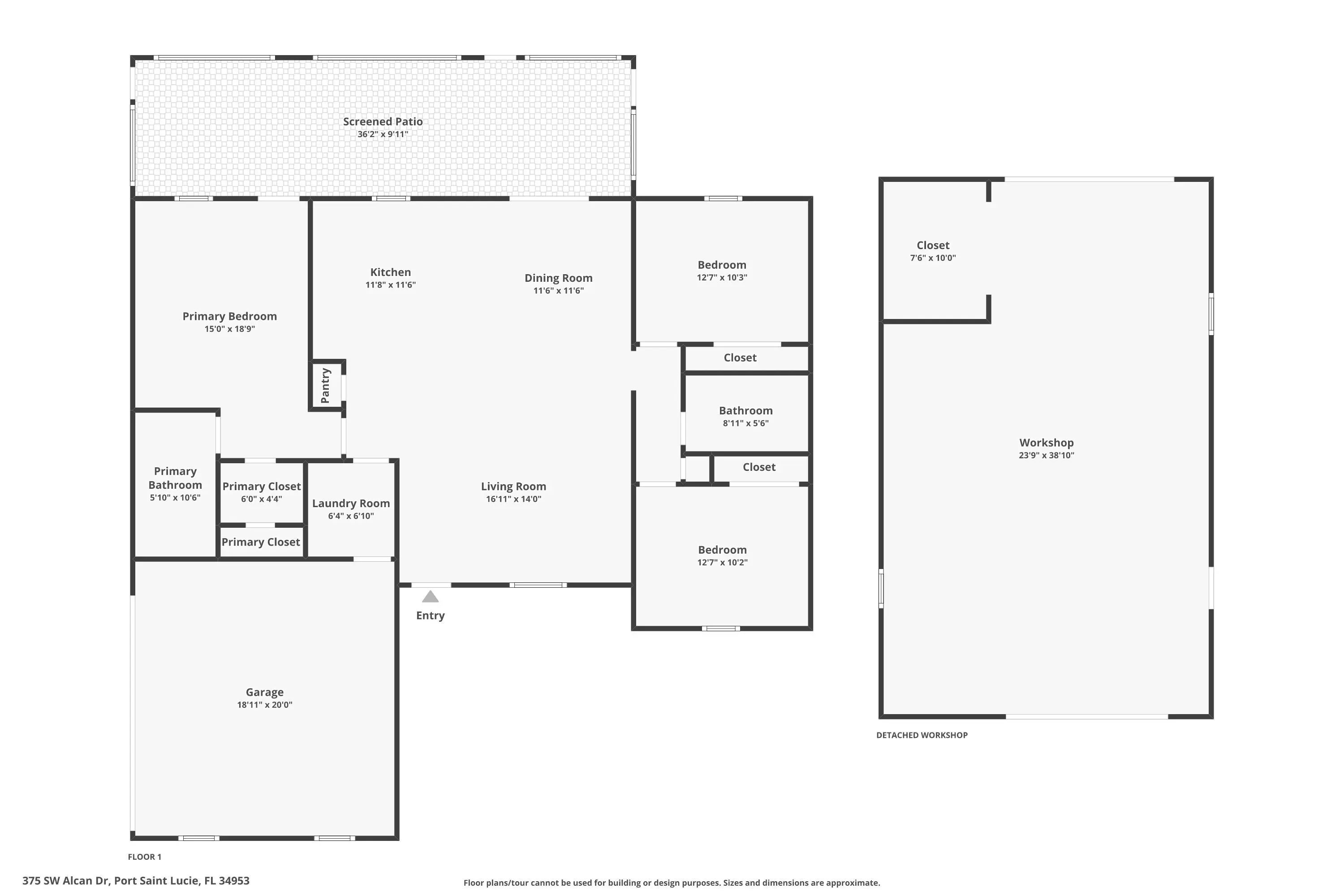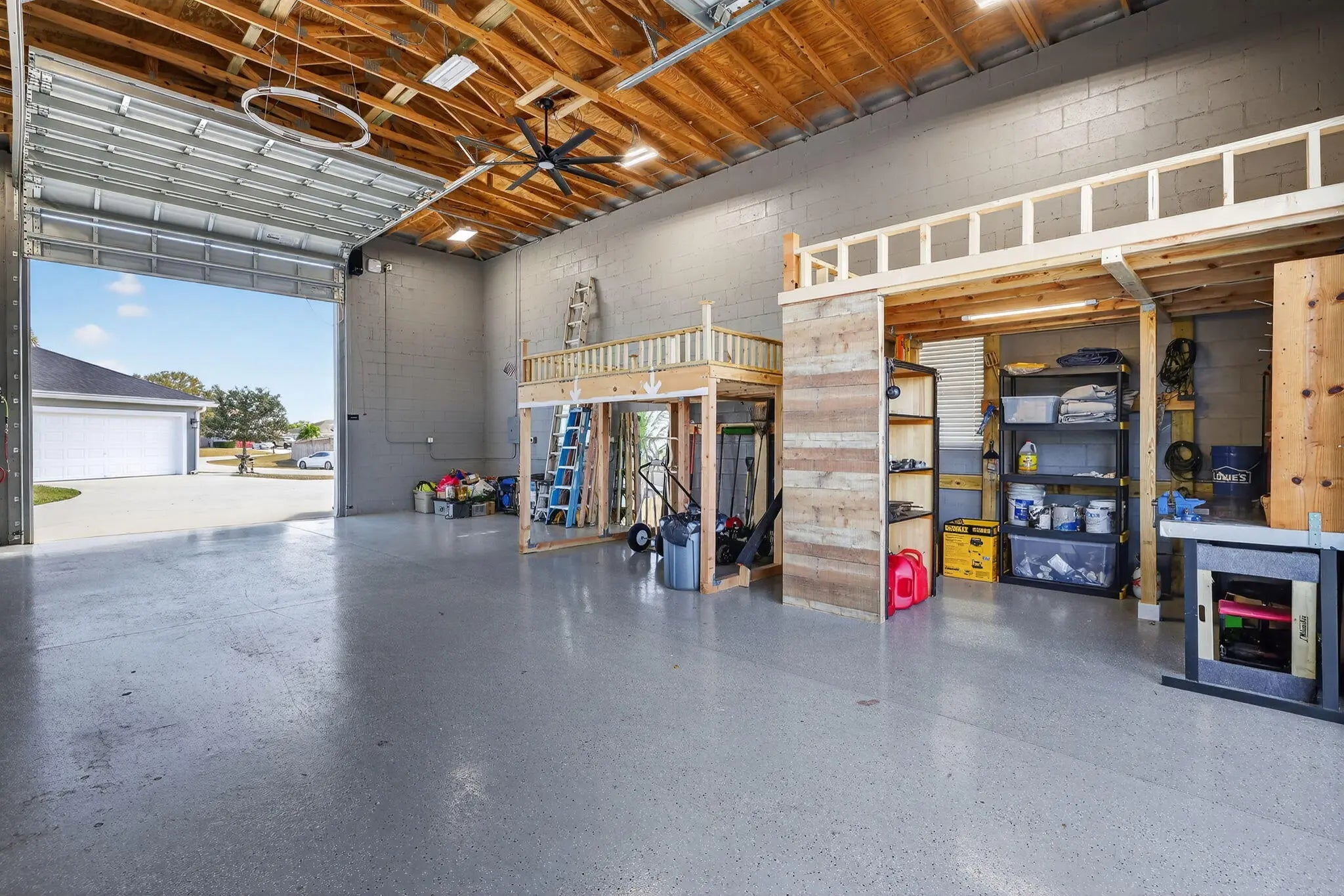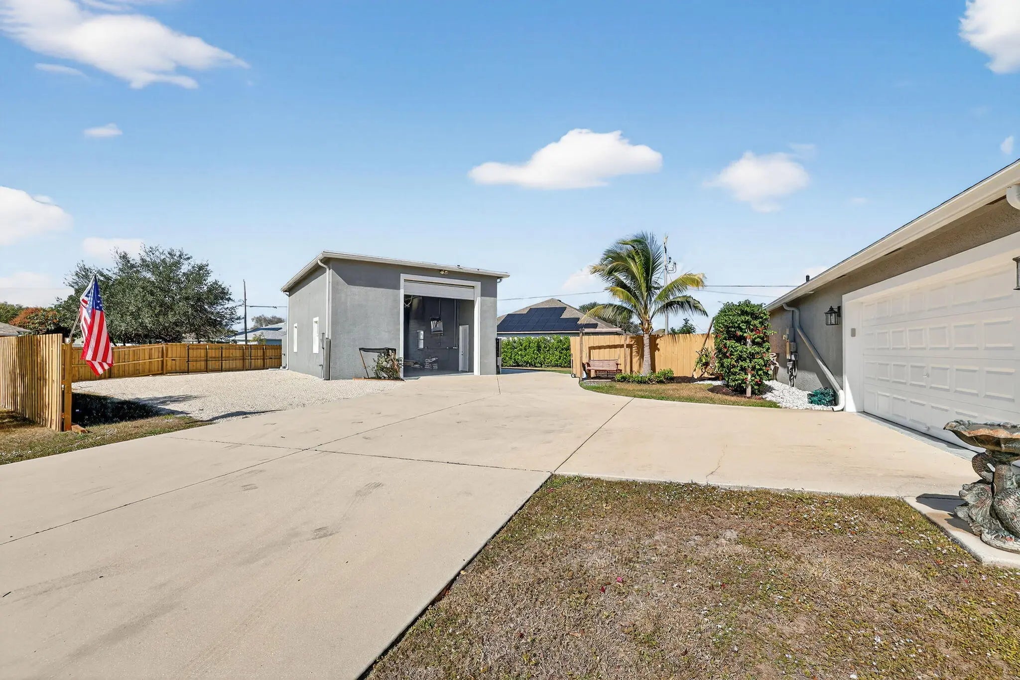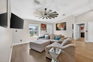 ATTENTION hobbyists, car enthusiasts, RV owners, and anyone who needs serious space! This home sits on a rare double half acre corner lot and features an impressive 1,000 sq ft detached garage/workshop built to perform. This quality built 2019 Synergy Kingston model is loaded with upgrades and thoughtfully designed inside and out. The property features an expansive circular driveway, underground power, full gutters, impact windows and doors, side-entry garage, whole-house surge protection, and a generator hookup with a 10,000-watt portable generator for added peace of mind. Inside, the 3 bedroom, 2 bath home offers an open concept layout with wood-look tile flooring throughout the main living areas.