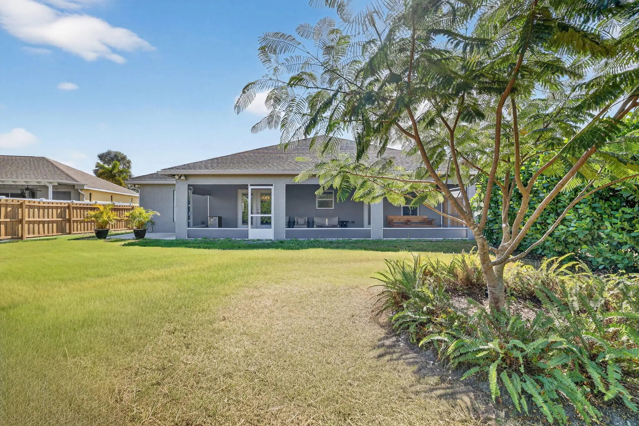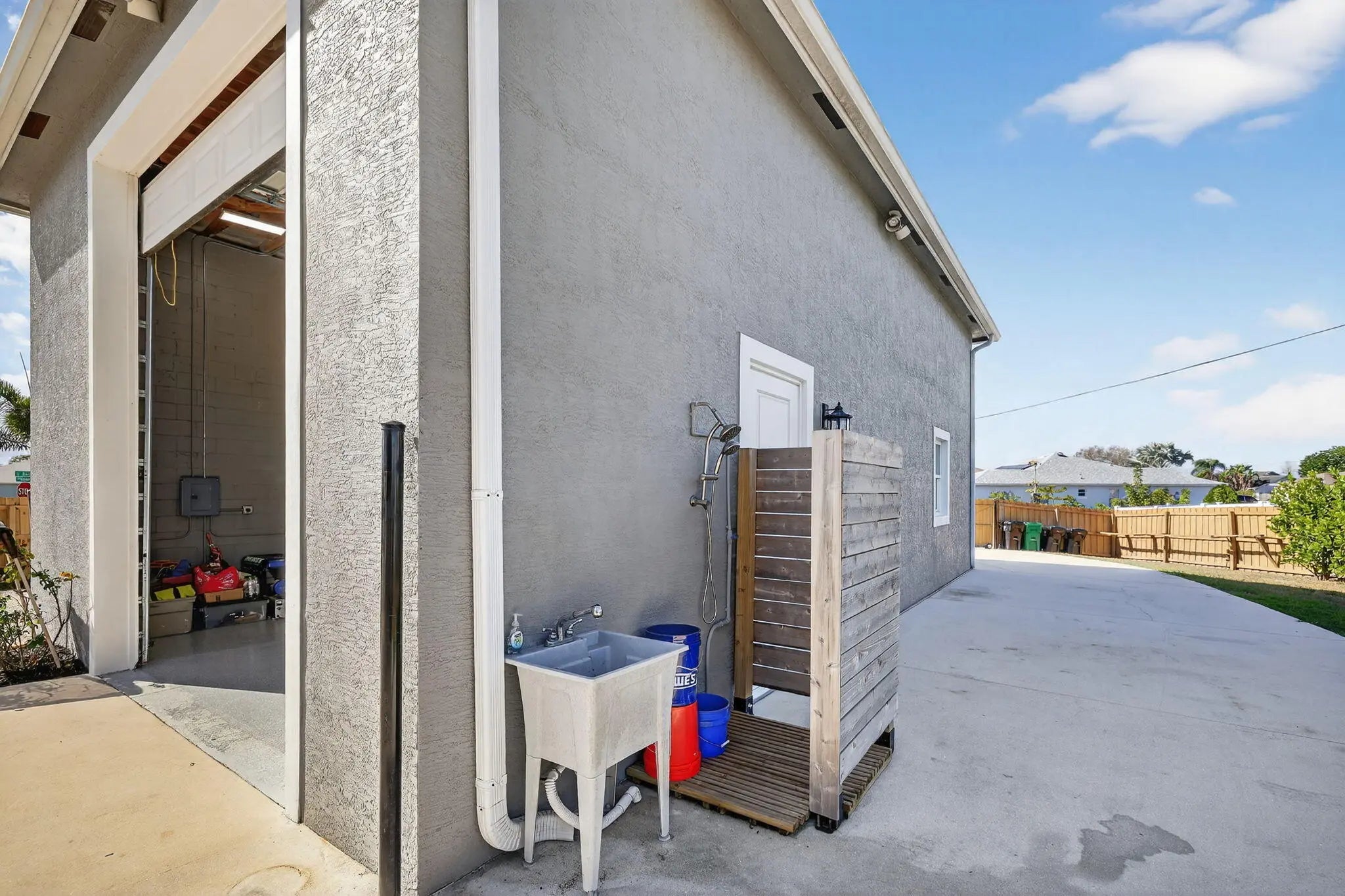 Covered Patio, Custom Lighting, Extra Building, Fence, Outdoor Shower, Screened Patio, Shutters