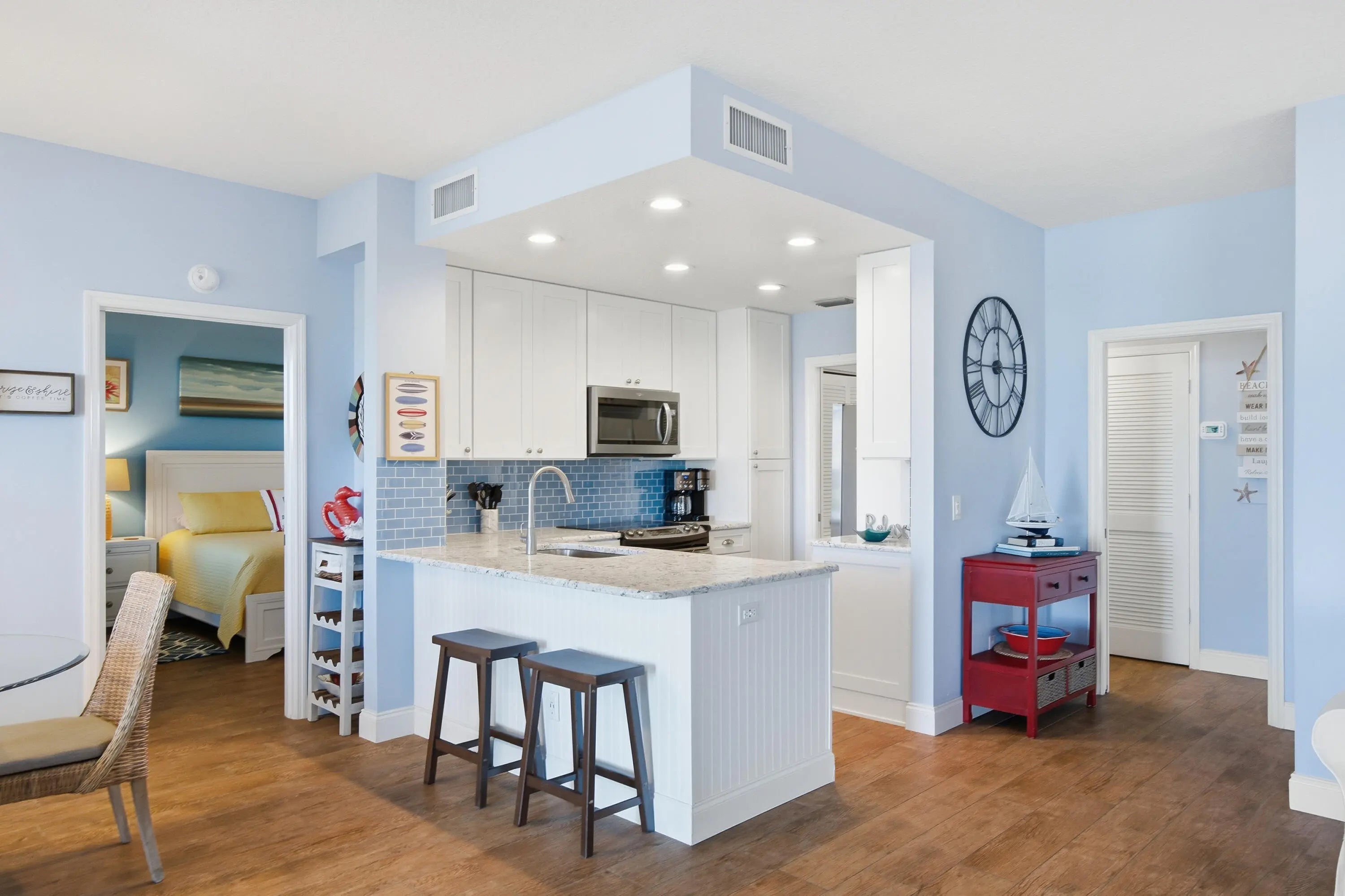 Set in a prime first-floor corner location at Beachwalk in Indian River Plantation, this beautifully updated and turnkey, furnished 2 bedroom, 2 bath condo offers picturesque views of the golf course and lake overlooking the 10th hole--and is just steps from the beach. The split floor plan provides privacy, while the glass-enclosed Florida room extends the living space and creates the perfect spot to relax or entertain. Woodgrain tile flooring flows throughout, complemented by an updated kitchen with granite countertops and stainless steel appliances. The remodeled primary bathroom features a spacious walk-in shower, double-sink vanity, and extra storage. Impeccably maintained and move-in ready, this condo is ideal as a vacation retreat, full-time residence, or investment opportunity.