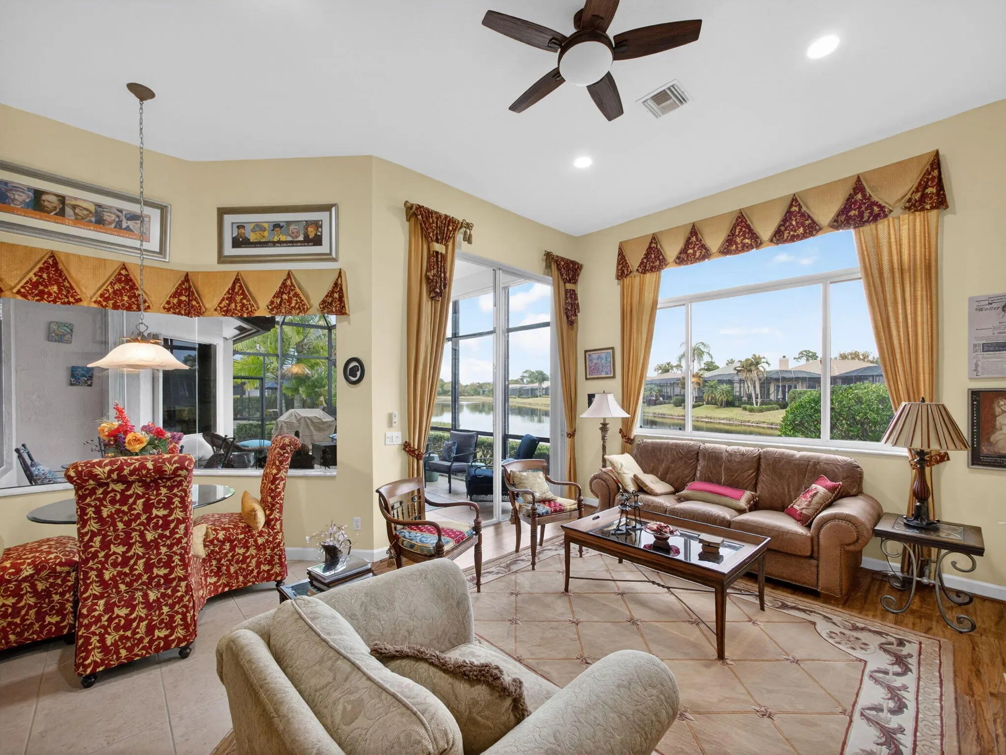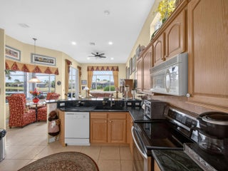 Beautifully designed and ideally situated on the lake, this 2-bedroom plus den, 2.5-bath residence is located in the sought-after Kingsmill at PGA community of St. Lucie. The flexible den offers endless possibilities--perfect as a third bedroom, home office, or private retreat to suit your lifestyle. Expansive windows capture tranquil lake views and bathe the home in natural light, creating an inviting atmosphere that blends indoor comfort with outdoor serenity. The open-concept living and dining areas are ideal for both everyday living and entertaining. The gourmet kitchen features modern appliances, ample counter space, and a breakfast bar for casual meals.