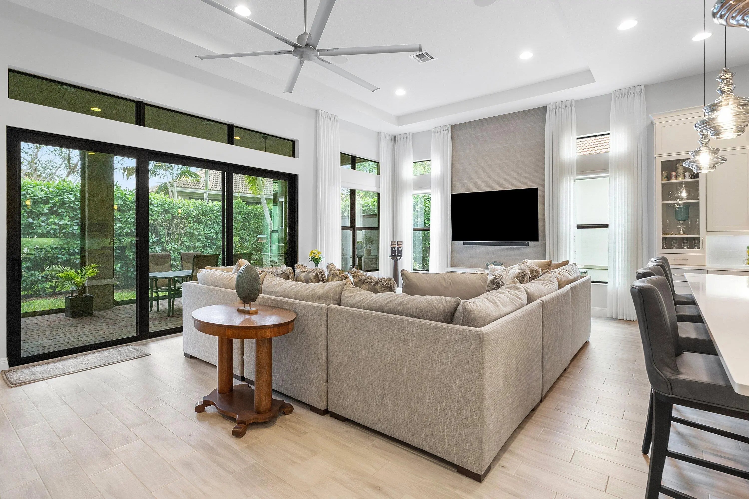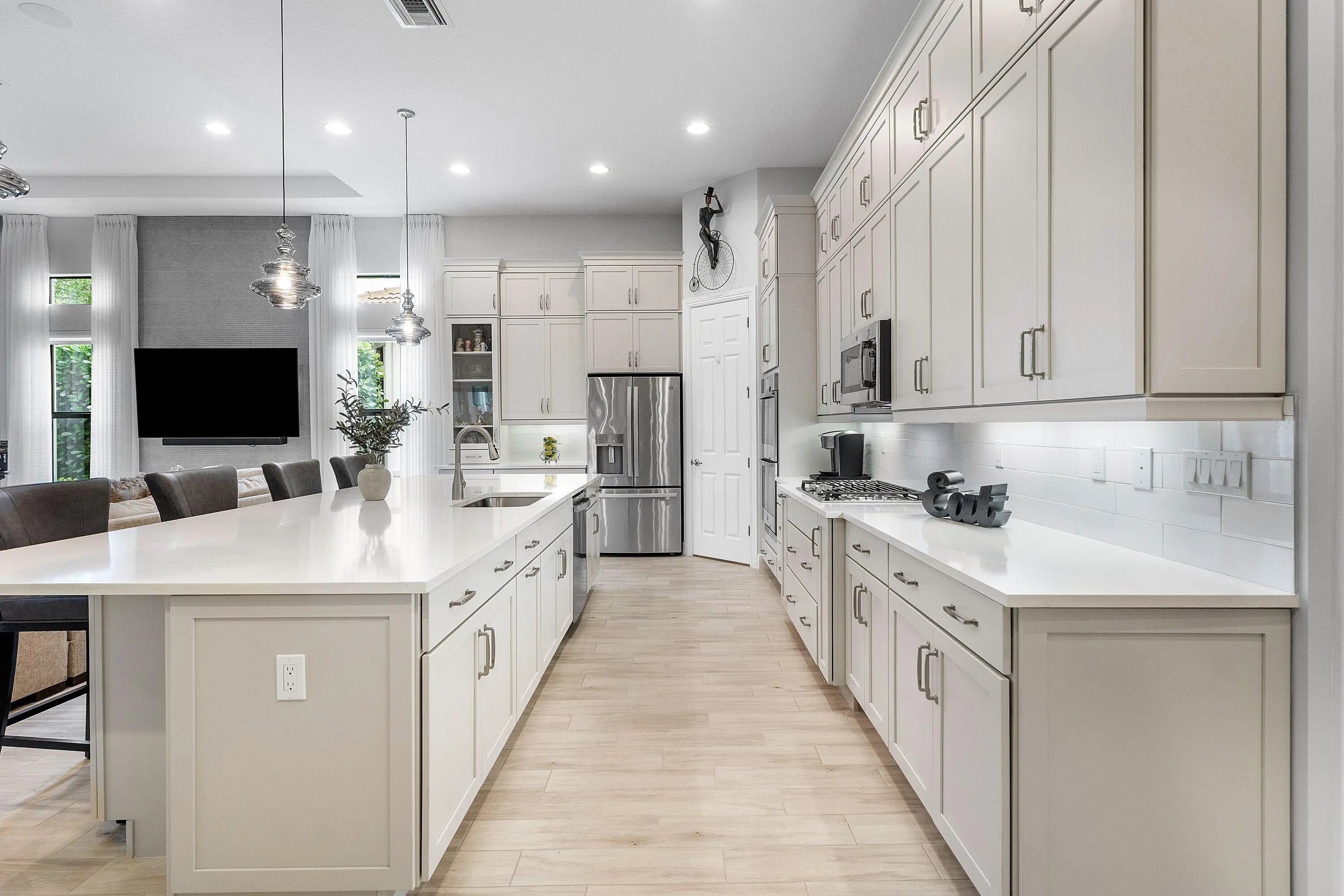 Stunning Barnard model in the sought-after Four Seasons at Parkland 55+ community! This exceptional residence offers 2 bedrooms, 2.5 bathrooms, a private office/den, and a rare 2.5-car garage. Designed with neutral, high-end finishes throughout, the home exudes timeless elegance and quality. The gourmet kitchen--truly the center of the home--features premium finishes and is perfect for both everyday living and entertaining. Enjoy peace of mind with a full-house generator. Step outside to the beautiful screened patio showcasing an amazing summer kitchen complete with a barbecue and pizza oven, ideal for indoor-outdoor Florida living. A remarkable home that blends luxury, comfort, and resort-style amenities.