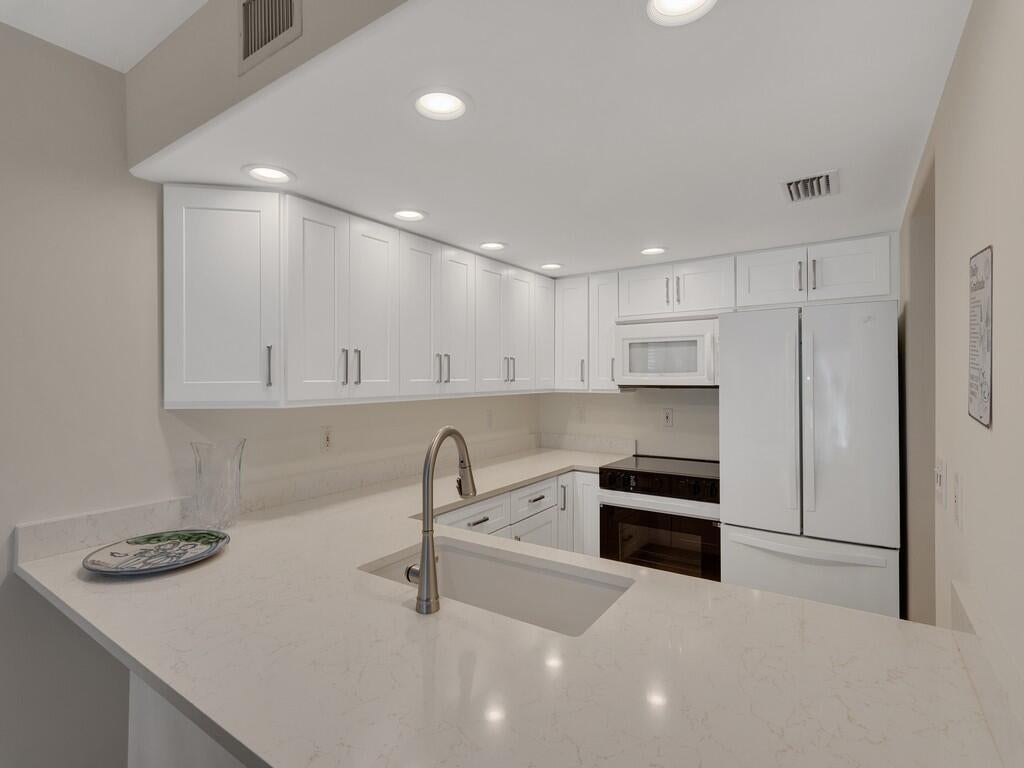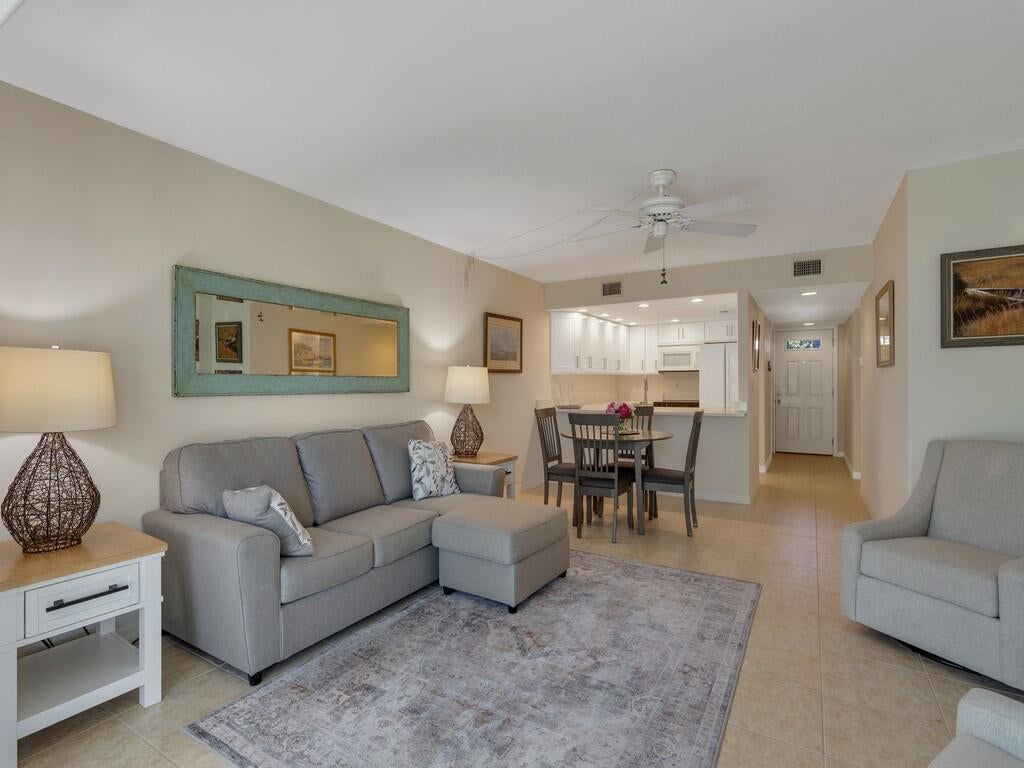 East of A1A, this stylishly updated move-in ready first floor end unit is a hidden gem. This 2BR/2BA condo stands out with tile flooring throughout, brand-new soft-close kitchen cabinetry, sleek quartz countertops, 2022 AC, and plantation shutters that elevate the coastal aesthetic. As a desirable first floor end unit, it offers extra natural light, added privacy, and the convenience of no stairs. The community offers a pool, with a short walk to Jaycee Park boardwalk, the beach, restaurants and Ocean Drive Shopping. Furniture is available to make an easy vacation hide-a-way!