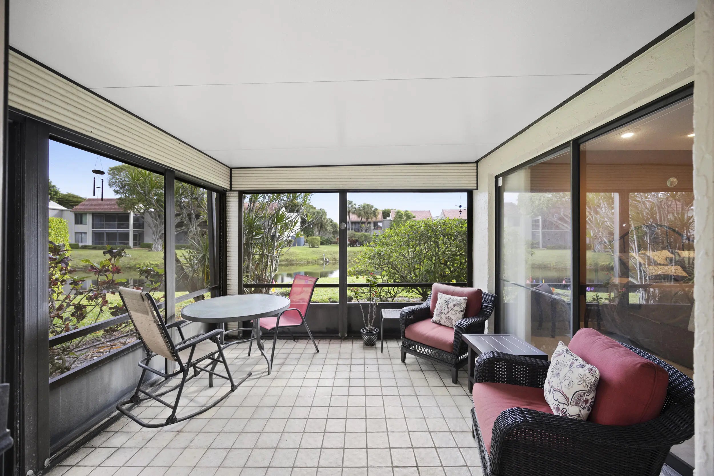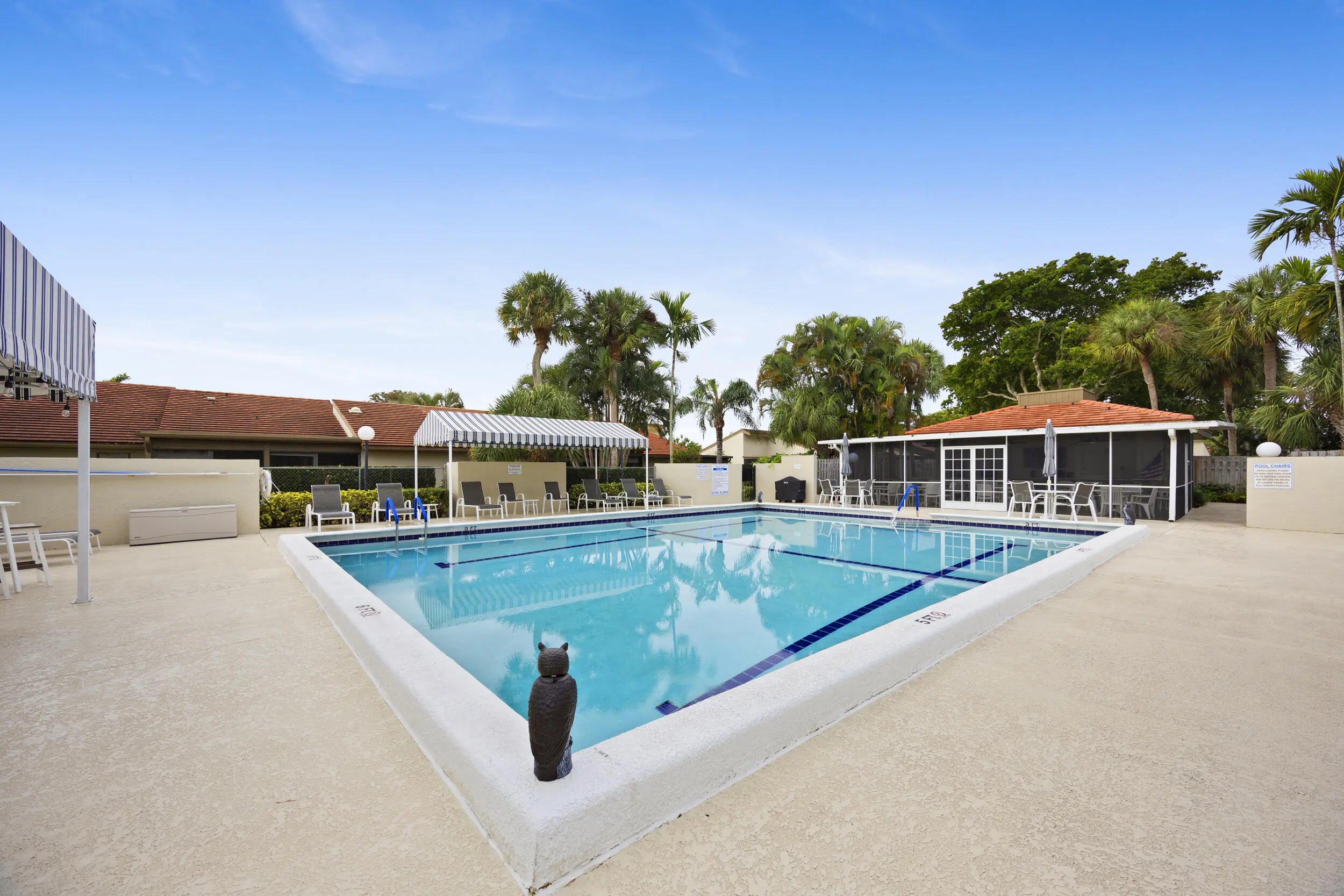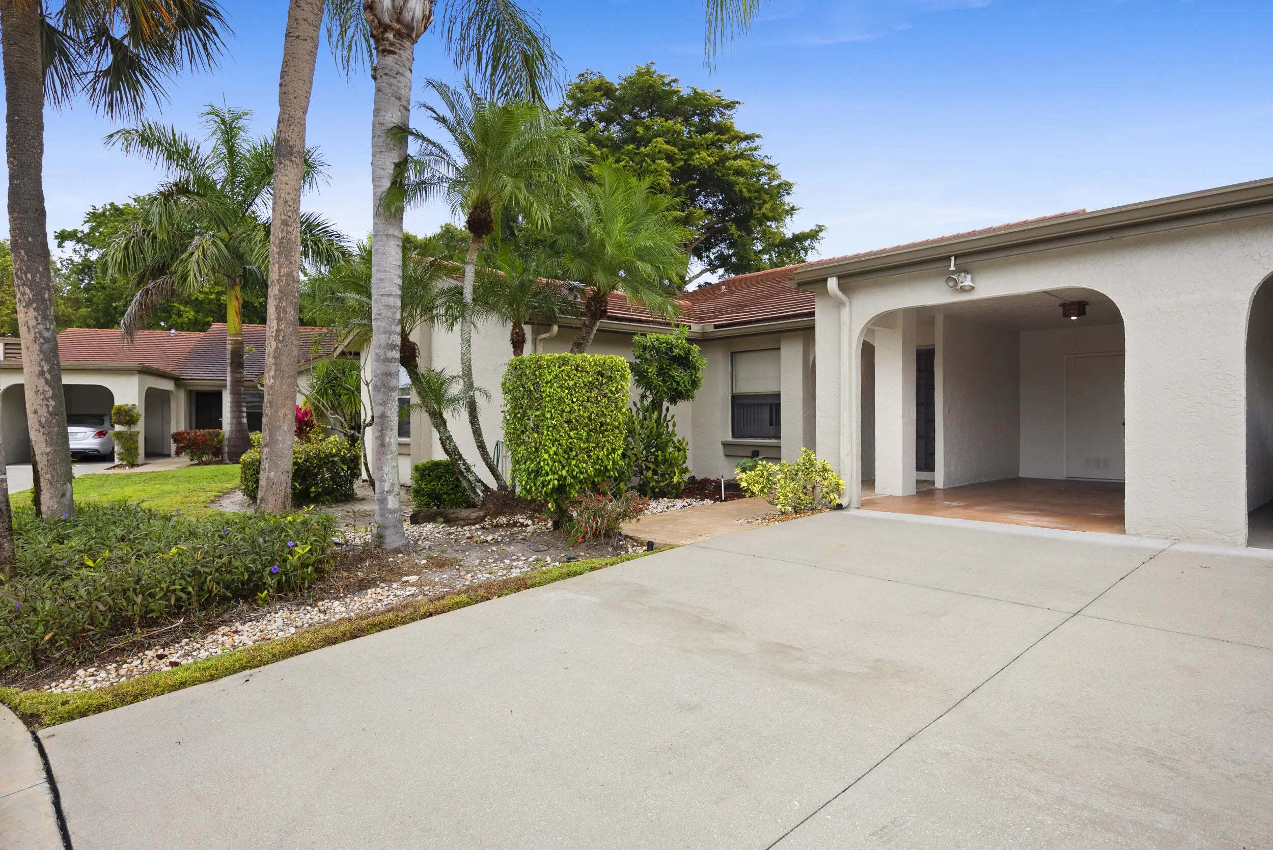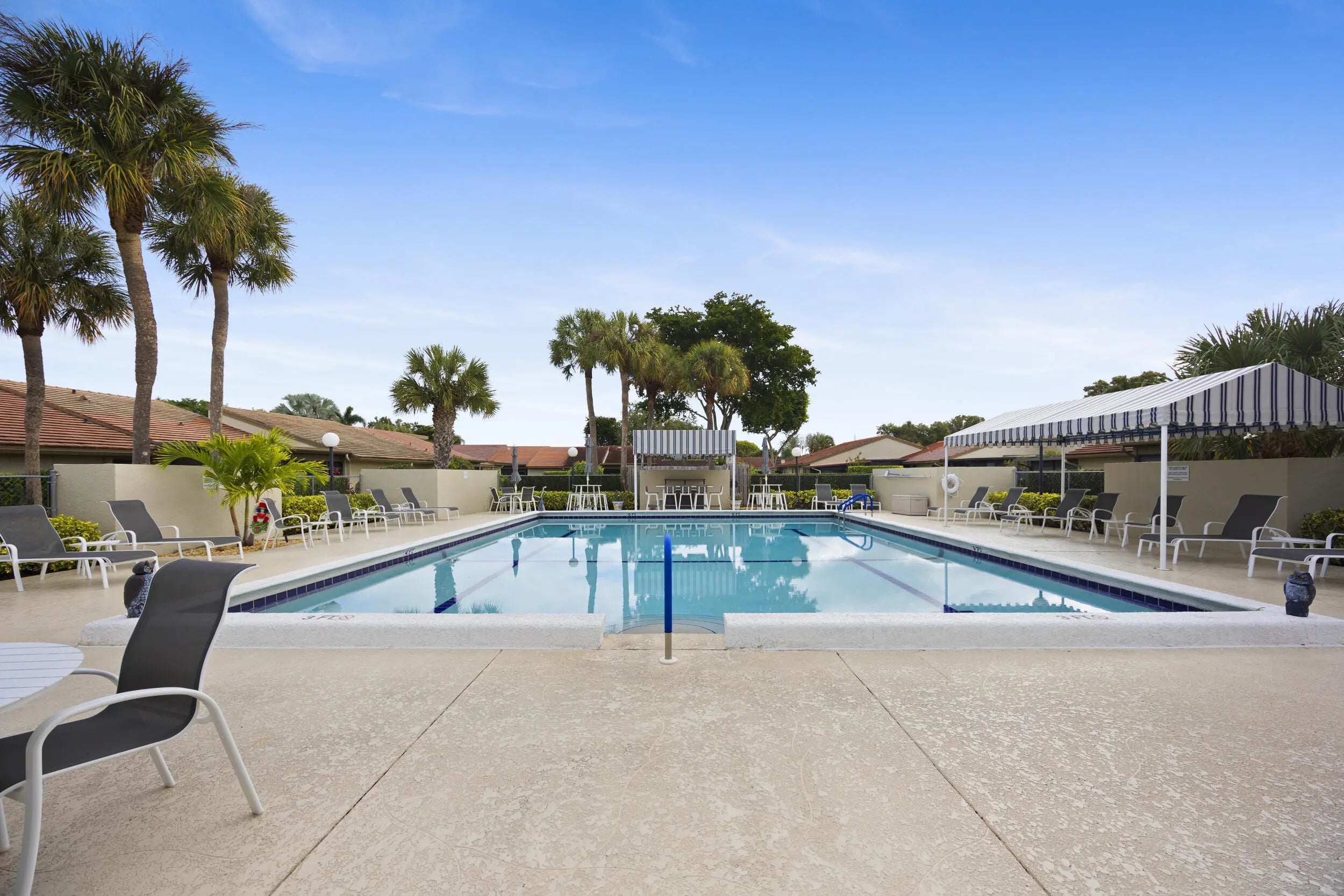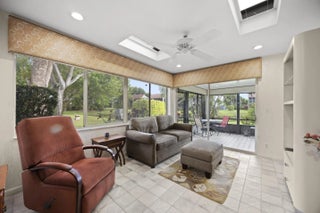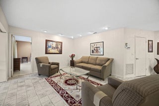 Welcome to this beautifully maintained end-unit villa offering 3 bedrooms and 2 baths in a desirable active 55+ community. The spacious layout includes a bright living room, formal dining area, Florida room, and a convenient interior laundry room. Enjoy peaceful water views from the screened-in patio, perfect for morning coffee or relaxing evenings.This villa features ample storage, a private carport, and the added privacy of an end unit. Aggressively priced and move-in ready, it's an exceptional value. The friendly, well-kept community offers a pool just steps away, a manned 24-hour guard gate, and no mandatory memberships. Ideally located less than 30 minutes from Palm Beach International Airport, with easy access to shopping, dining, & everyday conveniences.A fantastic opportunity