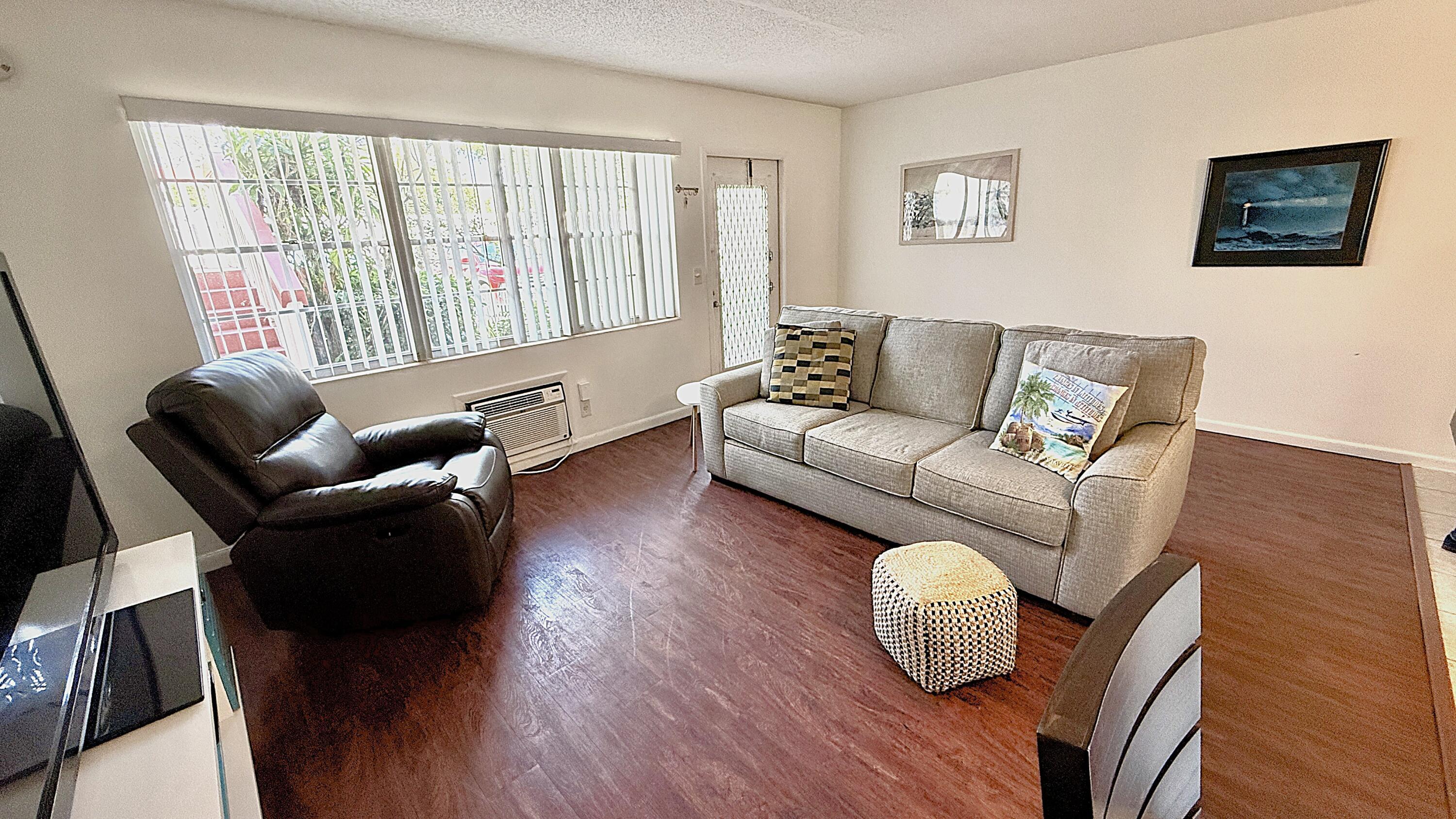 Rentable 1st Bright Condo Furnished 1 BR 1,5 Bath, 700 SF. LR AC replaced 2024. Open renovated Kitchen w/ stainless steal appliances. Updated Bathrooms. Replace all closet doors. Well maintained Building. Garden View from screened in Patio. Come see what this condo has to offer. Walking distance to Ventor Community outdoor pool & tennis. Clubhouse extrodinaire has Indoor & Outdoor Pool, Cafe, 1600 Seat Theater, Clubs, Classes, Billiards, Tennis, Pickleball, Volleyball, Ping Pong, Bocce Ball, Shuffle Board, Fitness Center, Hiking Trails, Putting Green, Bike Trails & more. Close to Beaches, Entertainment, Dining, Shopping. Association claims 55+ community. Approval required.