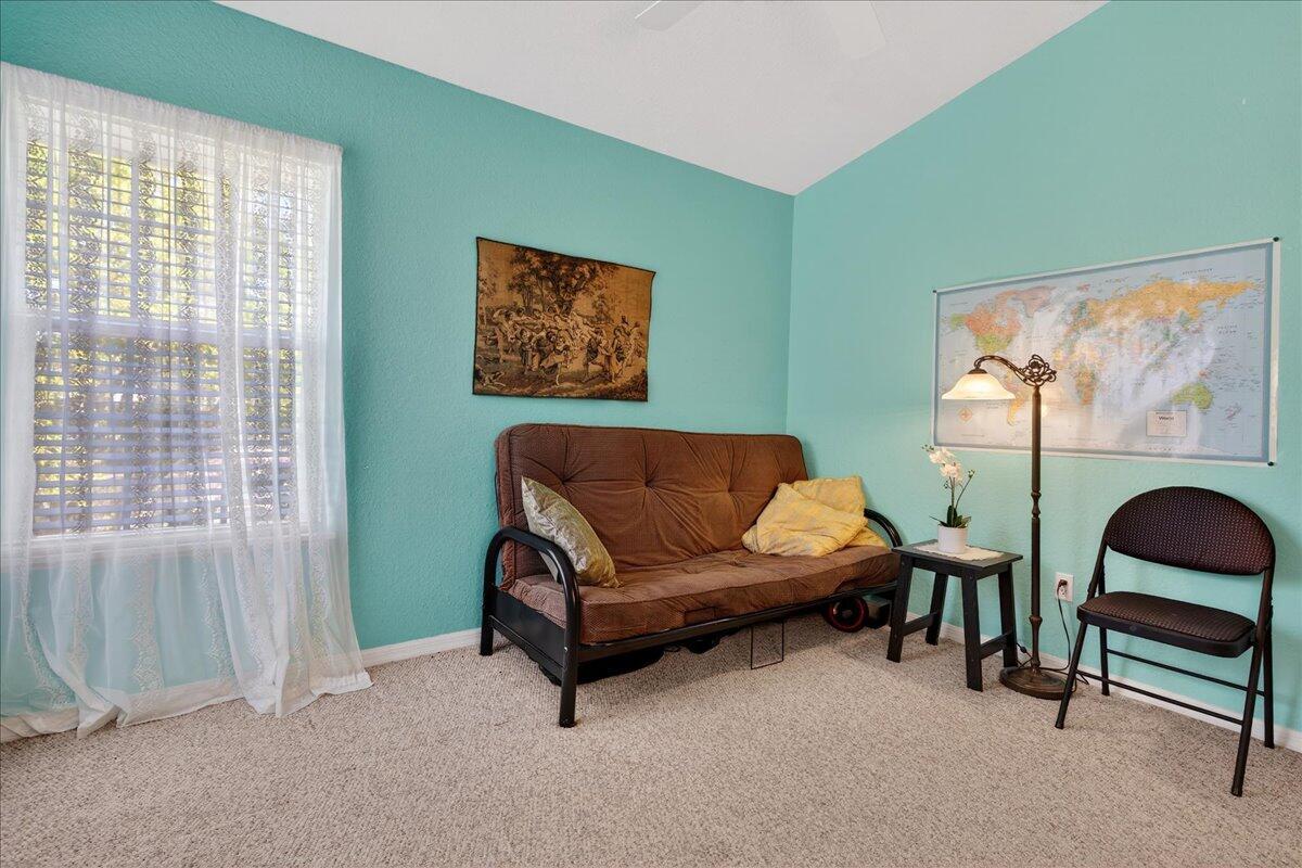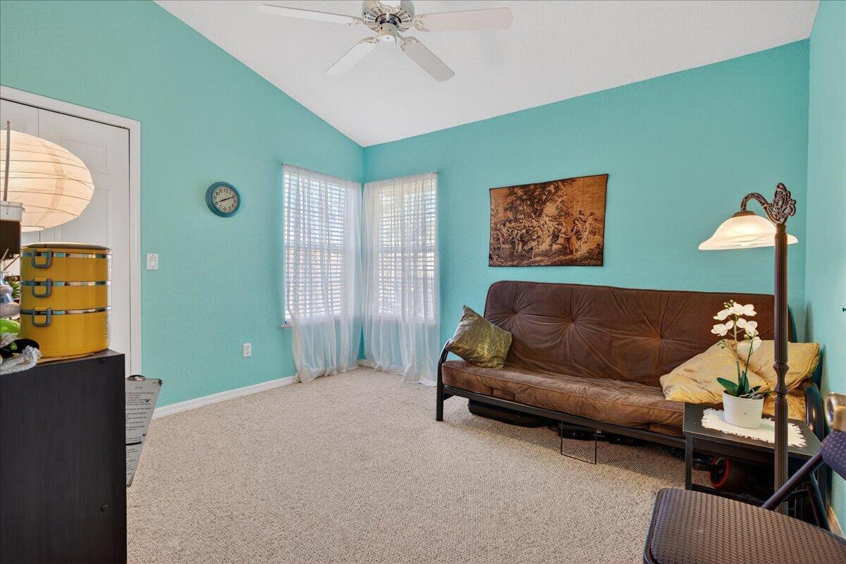 Bright & cheerful 3BR/2BA condo with lake views! Cathedral, textured ceilings! Private, tiled, screened porch. Courtyard views from master suite. Eat-in kitchen plus dining room. Walk-in closets. Impact windows! AC 2019. Re-pipe 2024. Neutral Berber carpeting or tiled throughout. Furniture included, many IKEA! Community amenities include: heated pool, fitness center, tennis/pickleball courts, racquetball, more! Convenient to golf, restaurants & shopping; less than 8 miles to the beach!