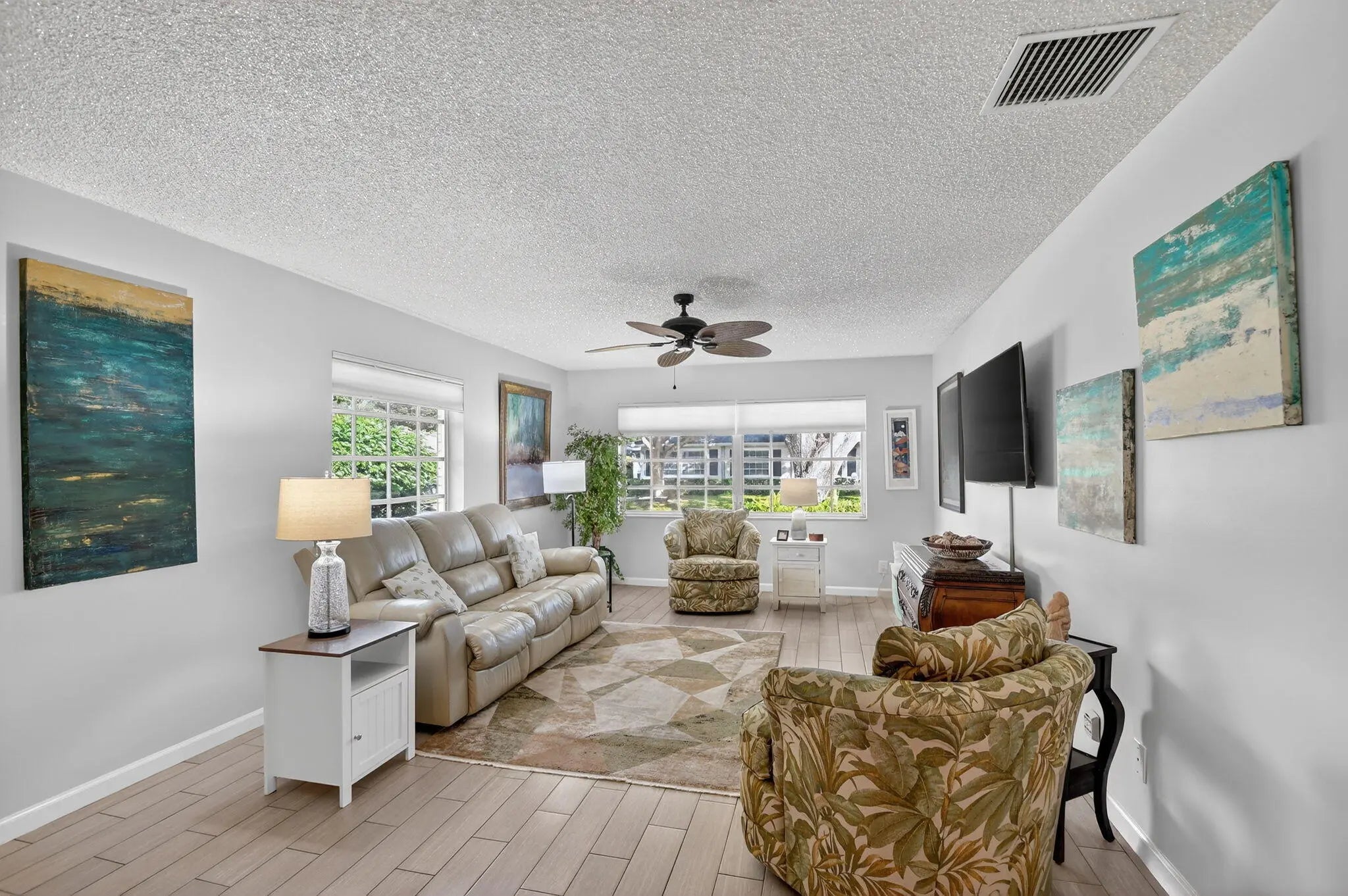 Beautifully updated villa in the desirable 55+ Limetree community, offering comfortable, low-maintenance South Florida living. Thoughtfully renovated with wood-look tile flooring throughout and an open, easy-living floor plan ideal for everyday enjoyment. The kitchen features wood cabinetry, granite countertops, upgraded appliances, and a glass tile backsplash. Spa-inspired bathrooms include designer tile finishes. Enjoy a peaceful, landscaped patio perfect for relaxing and enjoying your morning coffee or evening night-cap. This home has been impeccably maintained. Come experience care-free living and lifestyle.