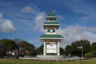 Breathtaking Sunsets and Beautiful Sunrises. This home is Private Golf Living at Its Finest - Located in the Prestigious PGA VillageWelcome to your model-perfect oasis inside the exclusive, guard-gated PGA Village, one of the few private golf communities offering three championship courses plus a world-class practice facility. Perfectly positioned on the Ryder Course #1 Fairway, this meticulously updated estate on Belfry Place captures breathtaking sunsets and the ultimate Florida golf lifestyle.From the charming front porch to the grand French door entry, this 2 bedroom with den/office and 2.5 baths reflects true ''model home'' elegance and thoughtful innovation throughout every detail.
