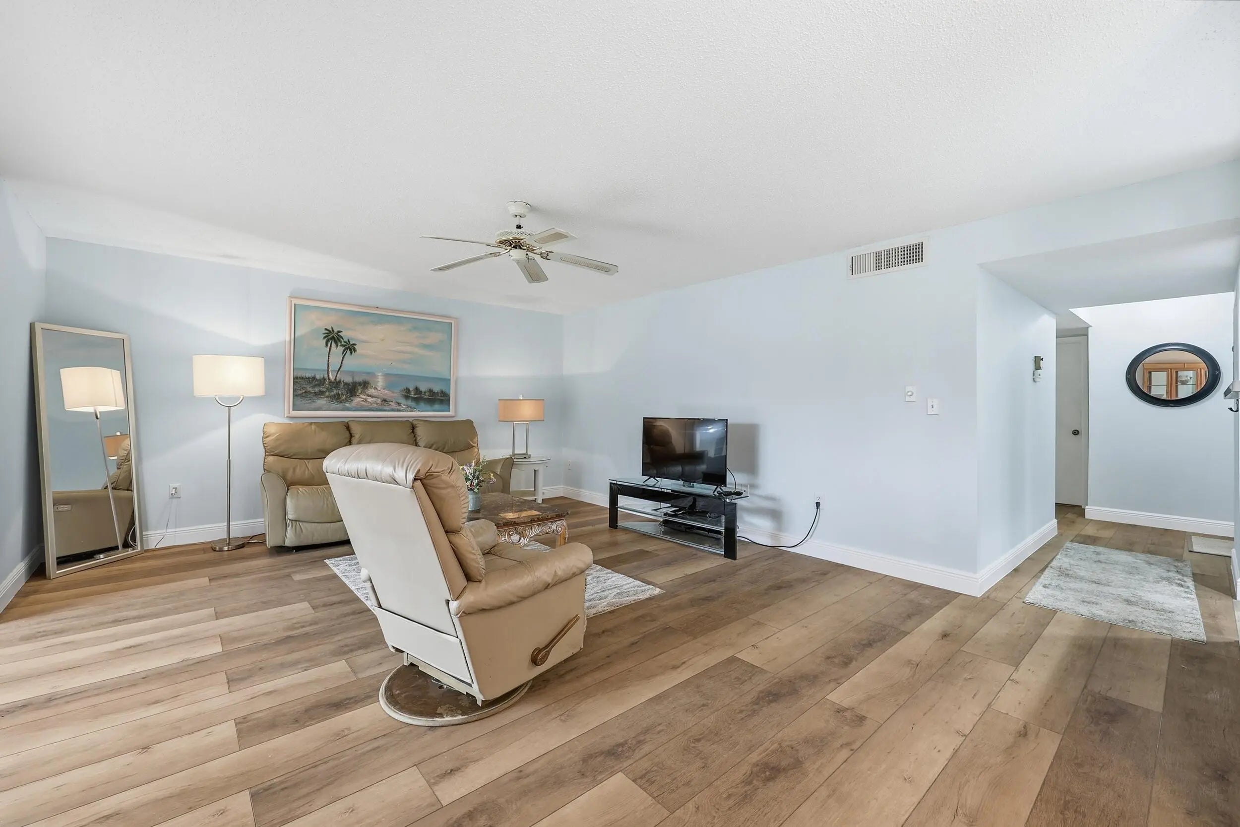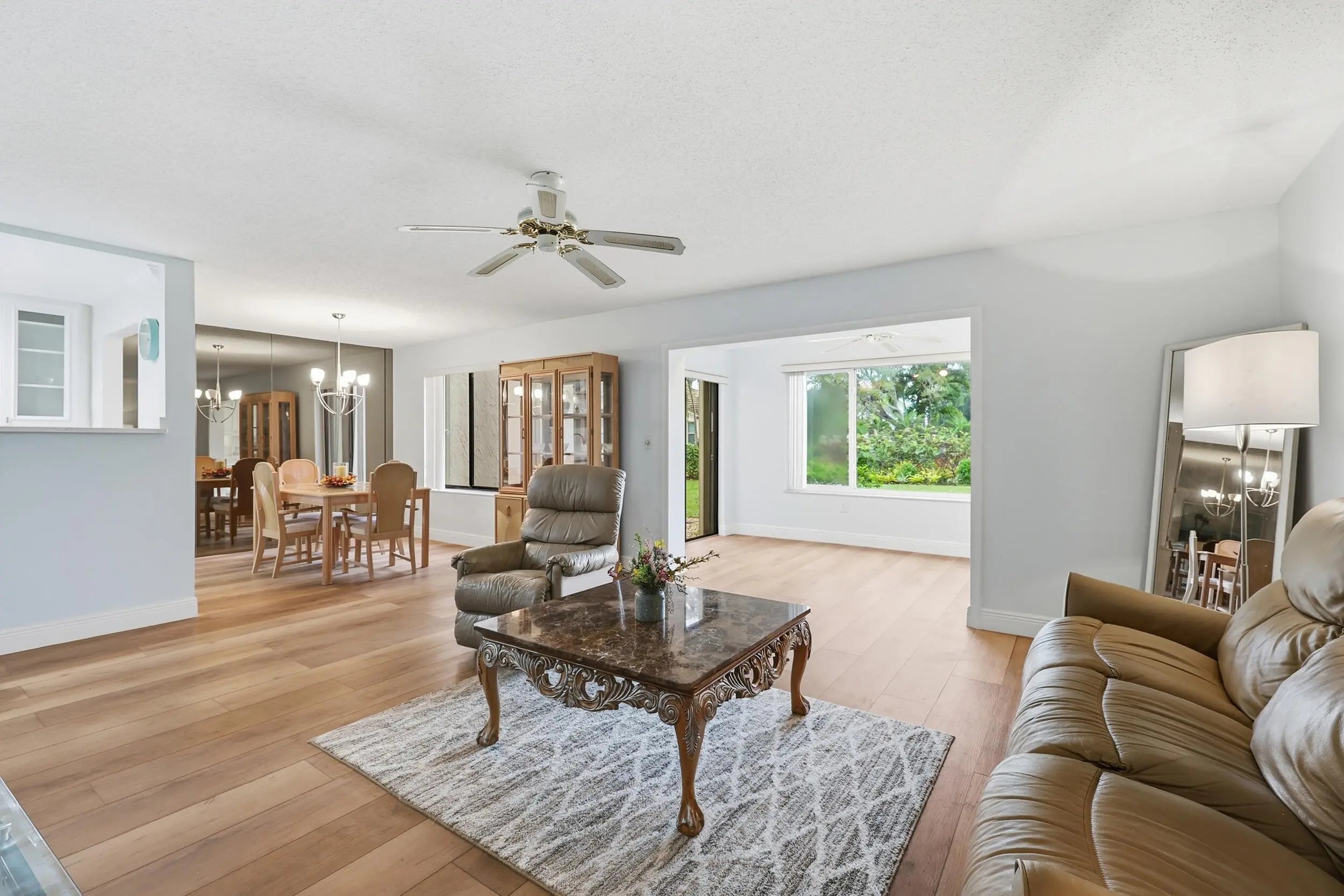 Rare opportunity in Miles Grant Country Club! NO MANDATORY social membership at the country club AND is NOT a over 55 building. This is a 1st Floor unit, 2 bedroom 2 bath. Features includes complete kitchen renovation w granite countertops, new laminate flooring throughout, accordion shutters & a sunny Florida room with peaceful golf course views and private storage closet. Spacious primary bedroom offers a large walk-in closet, creating a comfortable private retreat. Bathrooms have updated vanities & hardware. Premier east Stuart location, steps from the Intracoastal Waterway, with easy access to beach and a day dock for kayaking, fishing & paddleboarding. This rare Miles Grant gem doesn't come along often. The Miles Grant Country Club offers golf, pickleball