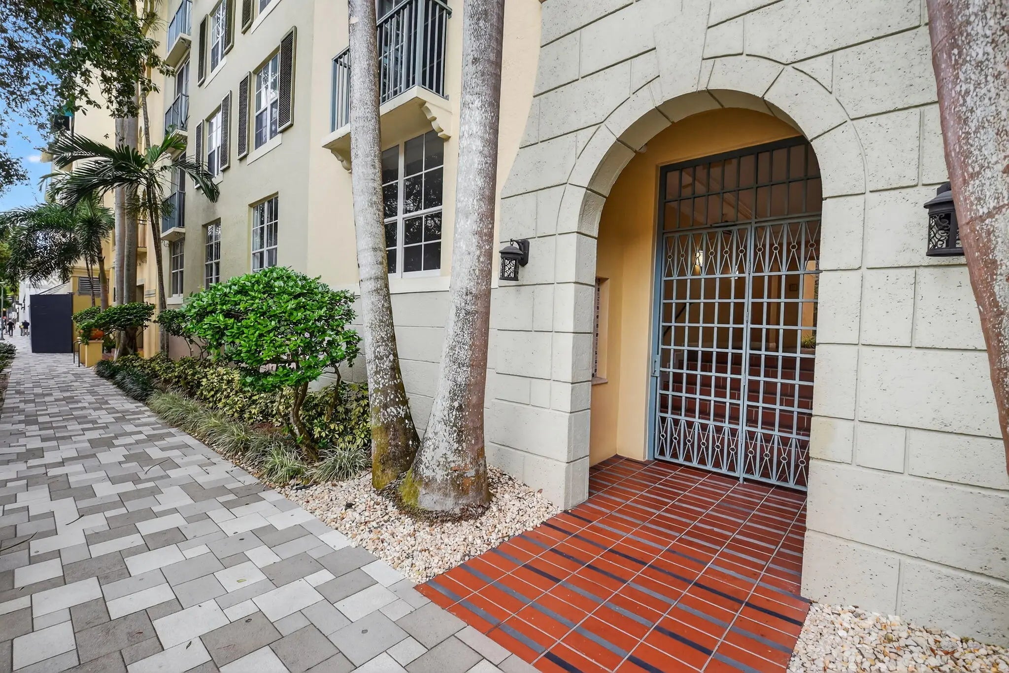 Live in the center of it all - Cityplace Downtown West Palm Beach! World class offices, shopping, dining, fitness, and entertainment all right outside your door. NYC vibes in this first floor 1 bedroom 1 bath condo featuring a built-in designer wall unit with plenty of shelving and storage. New carpeting and paint throughout - ready for your personal touch. Impact windows and generous ceiling height make the unit feel spacious and quiet. One assigned garage space included. The Courtyards features a pool and hot tub area, front desk, business center, club room, and gym. Perfectly located three miles from PBIA airport and walking distance to the Brightline high-speed rail station. It's a perfect location in the heart of thriving downtown West Palm Beach.