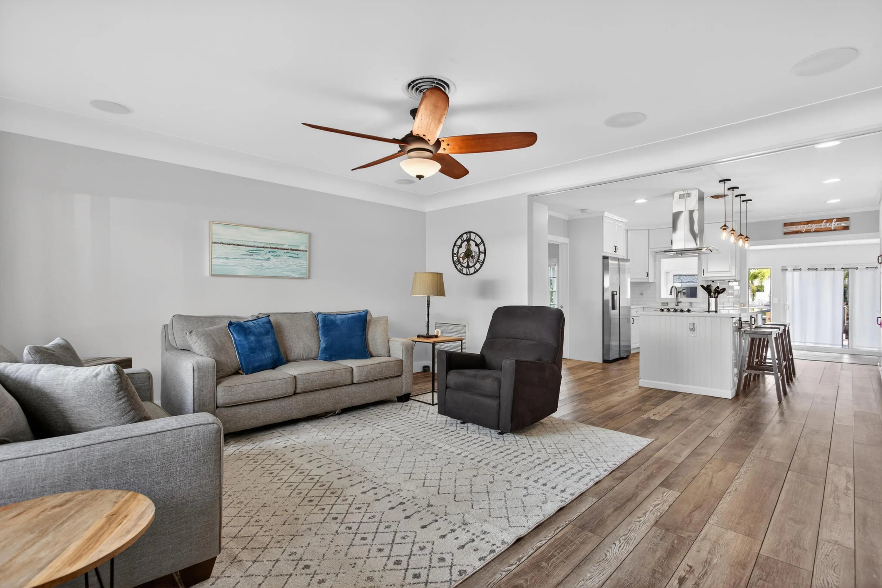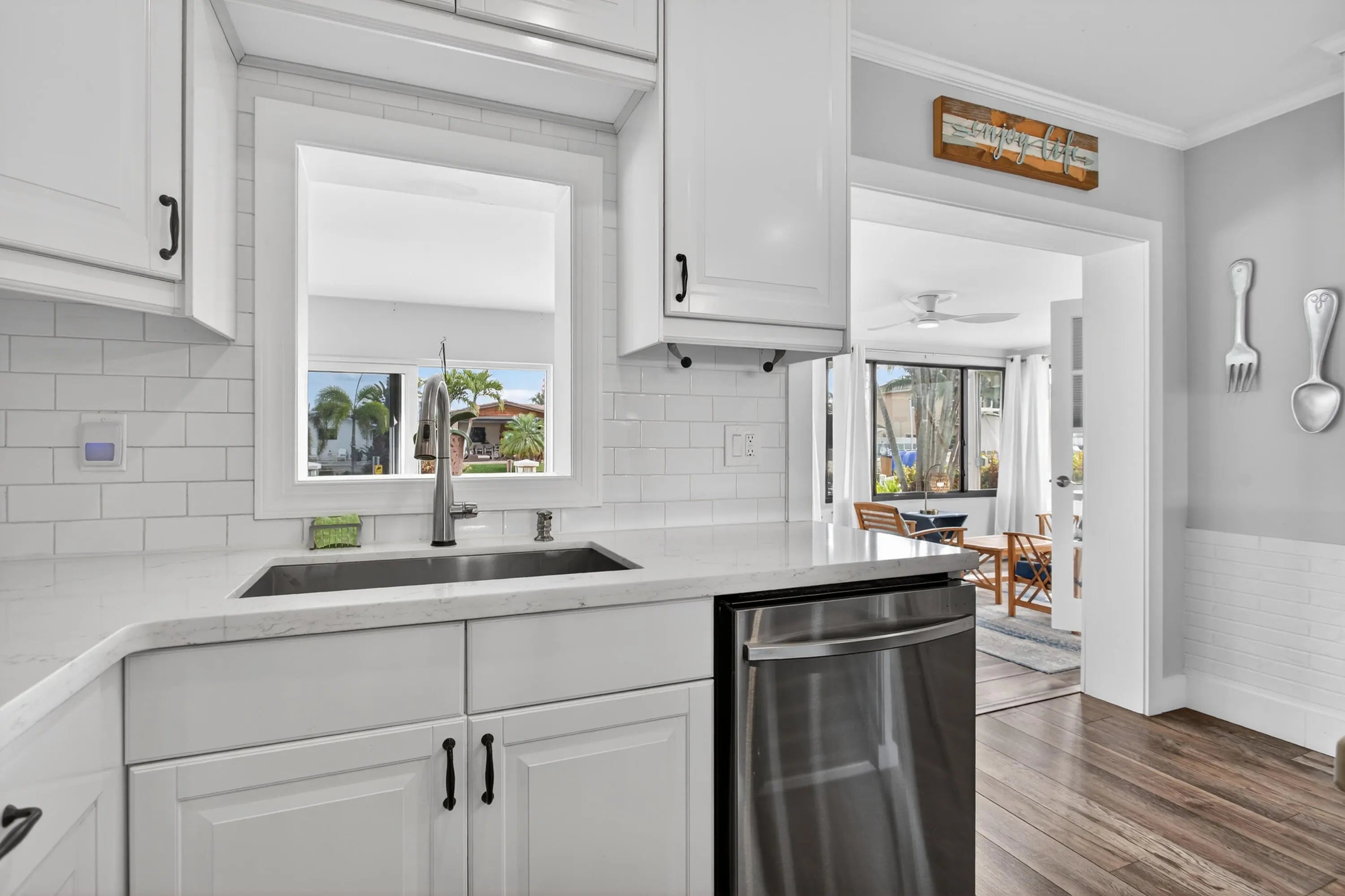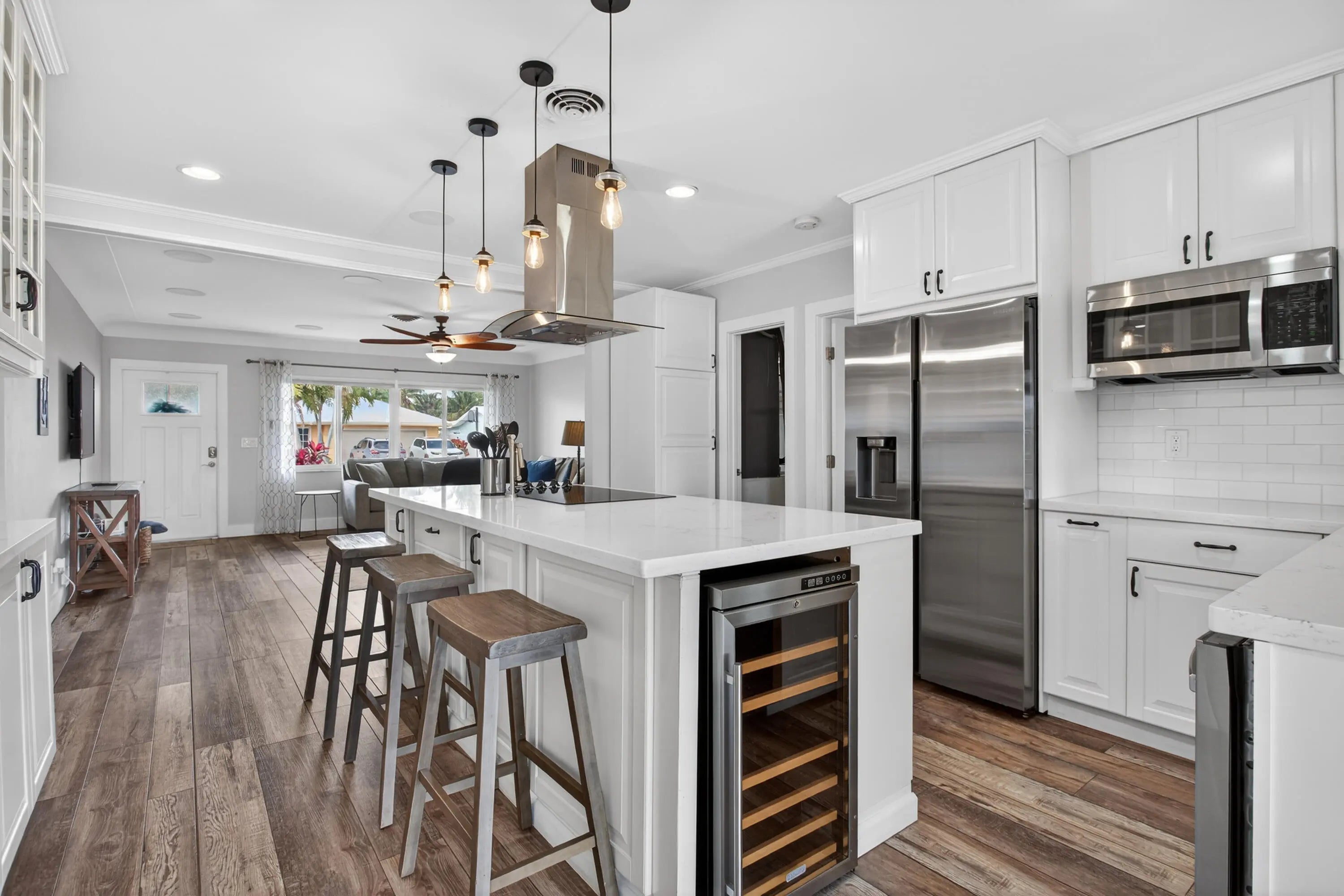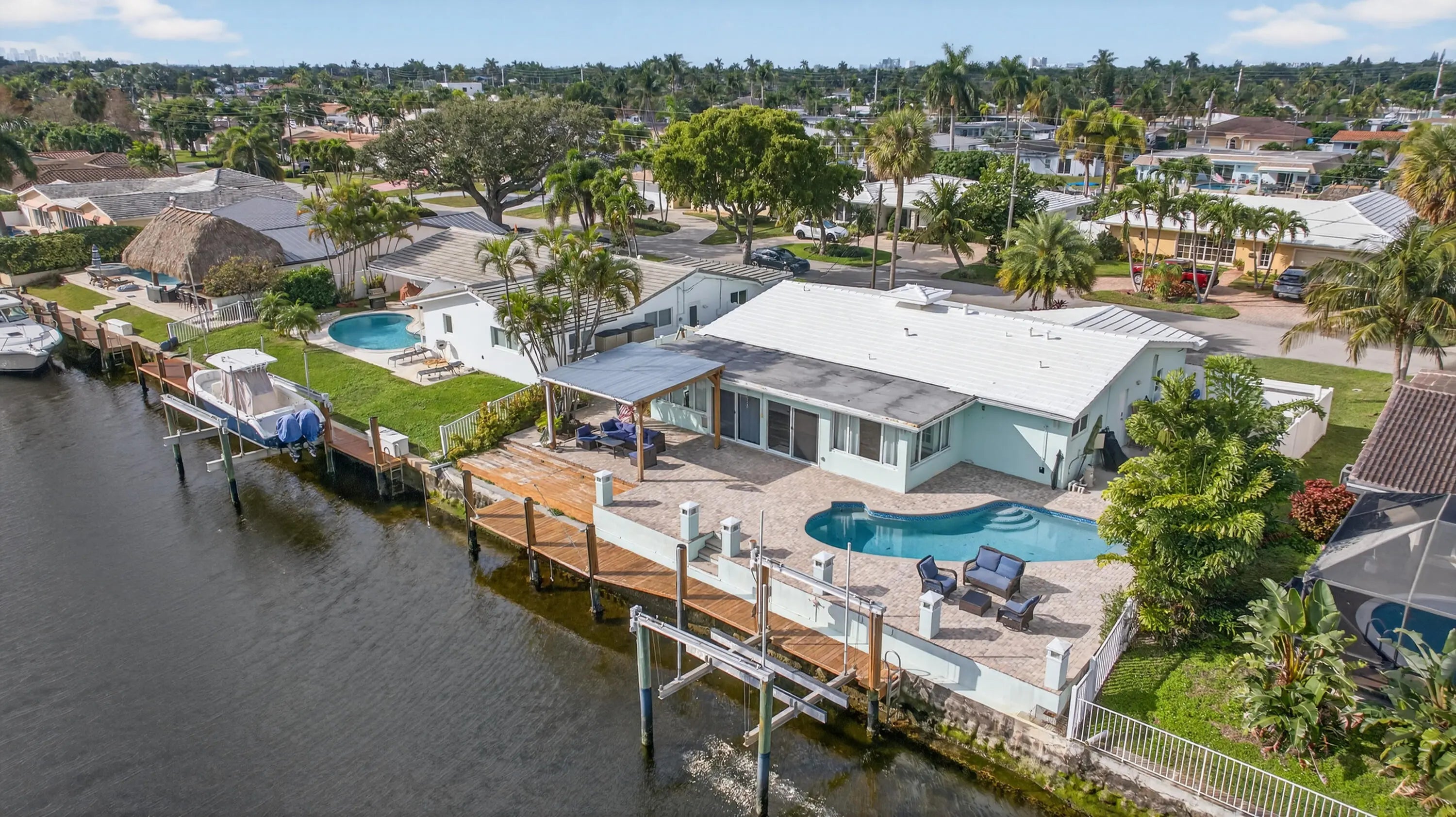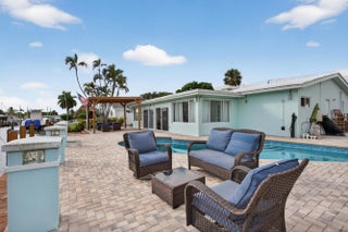 This beautifully updated 3-bedroom, 2-bath canal-front home truly has it all. Offering 1,836 sq. ft. of open-concept living, the home features a bright and airy floorplan designed for both everyday comfort and effortless entertaining.Step outside to your private pool and inviting outdoor patio with highly sought-after eastern exposure, perfect for enjoying morning sun and cool afternoons. Boating enthusiasts will love the navigable canal with direct access to the Intracoastal and ocean, complete with a private dock and boat lift.Inside, the spacious living, dining, and kitchen areas flow seamlessly together. The updated kitchen boasts contemporary lighting, stainless steel appliances, and stylish vinyl flooring that continues throughout the home.
