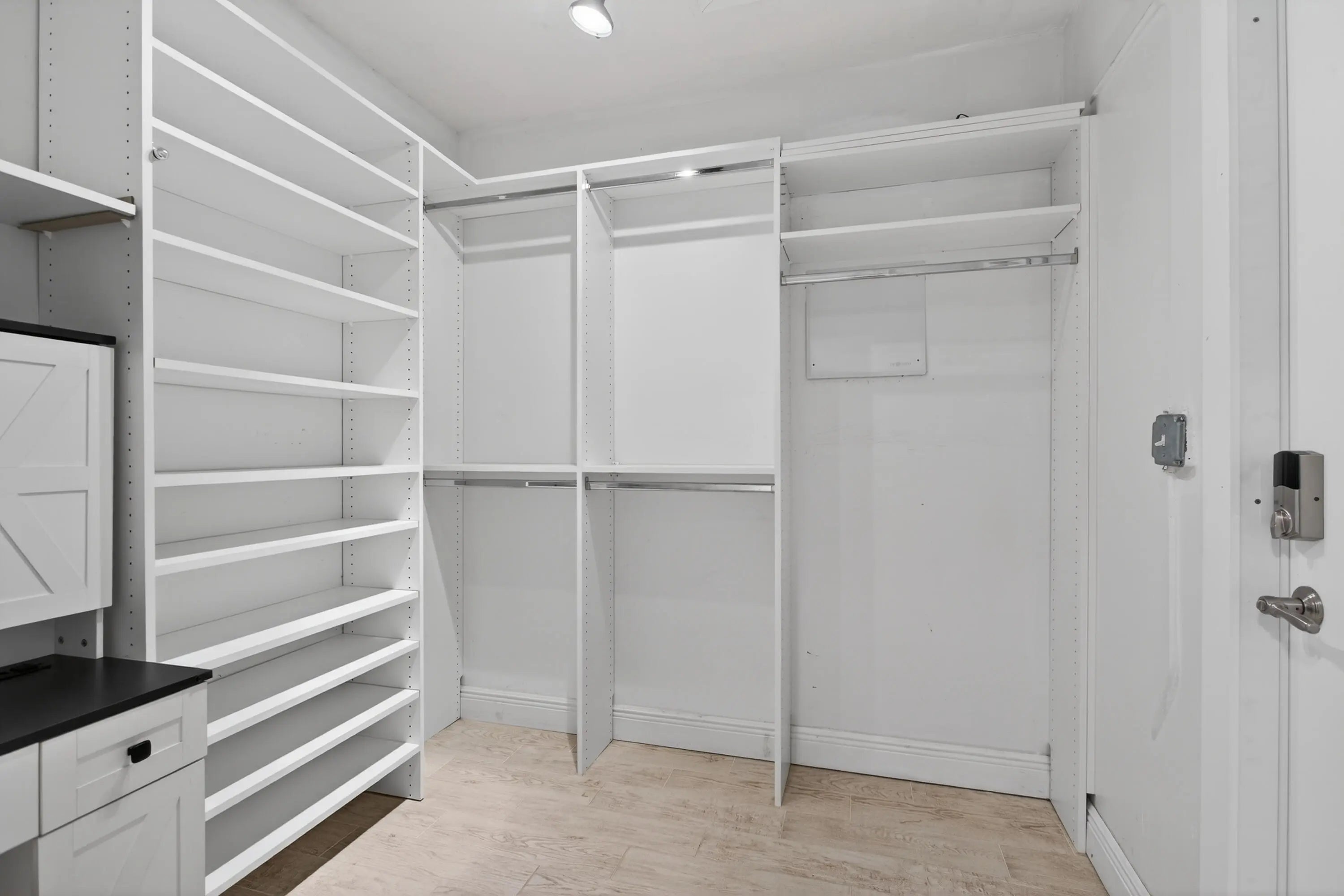 Built-in Shelves, Kitchen Island, Pantry, Split Bedroom, Walk-in Closet
