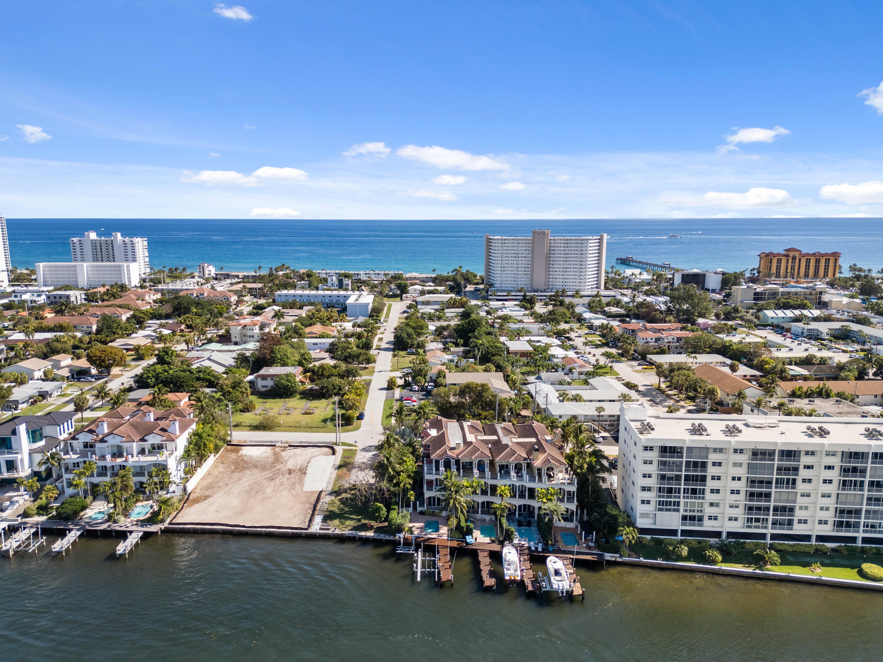 Deerfield Beach Townhomes, 4125 sq. ft on the intercoastal with views of Al Capone Island tranquil nature preserve and a short walk to the beach, restaurants and shops. This incredibly detailed home features incredible water views, private dock with 2 lifts. 34ft vessel plus a separate lift ideal for two personal watercraft or 13 ft tender. Saturnia marble floors, elevator, fireplace, custom wood cabinetry, crown moldings, impact glass and doors, Miele, Wolf and sub-zero appliances, Game room/theater, lush landscaping heated pool and barbeque area, large patio/entertainment area running along the north side of property that no other units have. 2 car garage with 5 dedicated additional parking spaces. extra storage in garage, property is adjacent to a. small park.COMMANDING DIRECT INTERCOASTAL VIEWS WITH UNPARRELLED PRIVACY.THIS EXCEPTIONAL WATERFRONT PROPERTY DELIVERS A RARE BLEND OF PRIVACY, LUXURY AND PREMIER BOATING LIFESTYLE. DESIGNED FOR EFFORTLESS COASTAL LIVING, THE PROPERTY FEATURES A PRIVATE ELEVATOR AND AN UNPARRELLELED MARINA STYLE SETUP.ACCESS IS MINUTES AWAY FROM BOTH BOCA AND HILLSBORO INLETS.EXPANSIVE WATER VIEWS CREATE A STUNNING BACKDROP FOR DAILY LIVING, ELEGANT ENTERTAINING, BEAUTIFUL SUNSETS WHILE THE HOME'S QUIET, EXCLUSIVE SETTING PLACES YOU JUST MINUTES FROM THE BEACH, DINING, AND UPSCALE AMENITIES . COMPLETING THIS RARE OFFERING IS PARKING FOR 5 VEHICLES PLUS A TWO CAR GARAGE, MAKING IT AS PRACTICAL AS IT IS PRESTIGIOUS. A TRULY DISTINGUISHED INTERCOASTAL ESTATE FOR THE MOST DISCERNING BUYER. THIS HOME IS READY FOR YOU TO ADD YOUR OWN PERSONAL TOUCH .