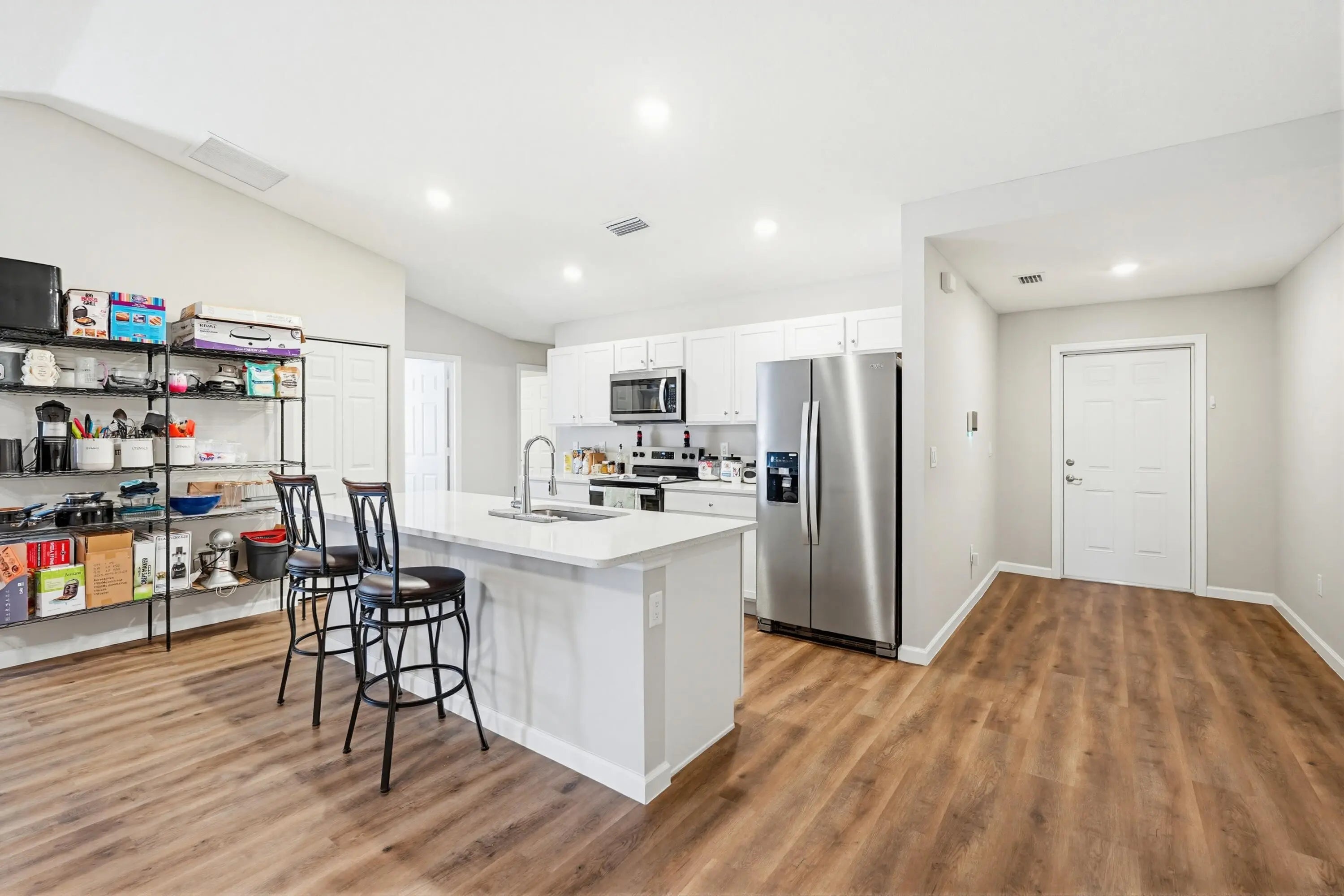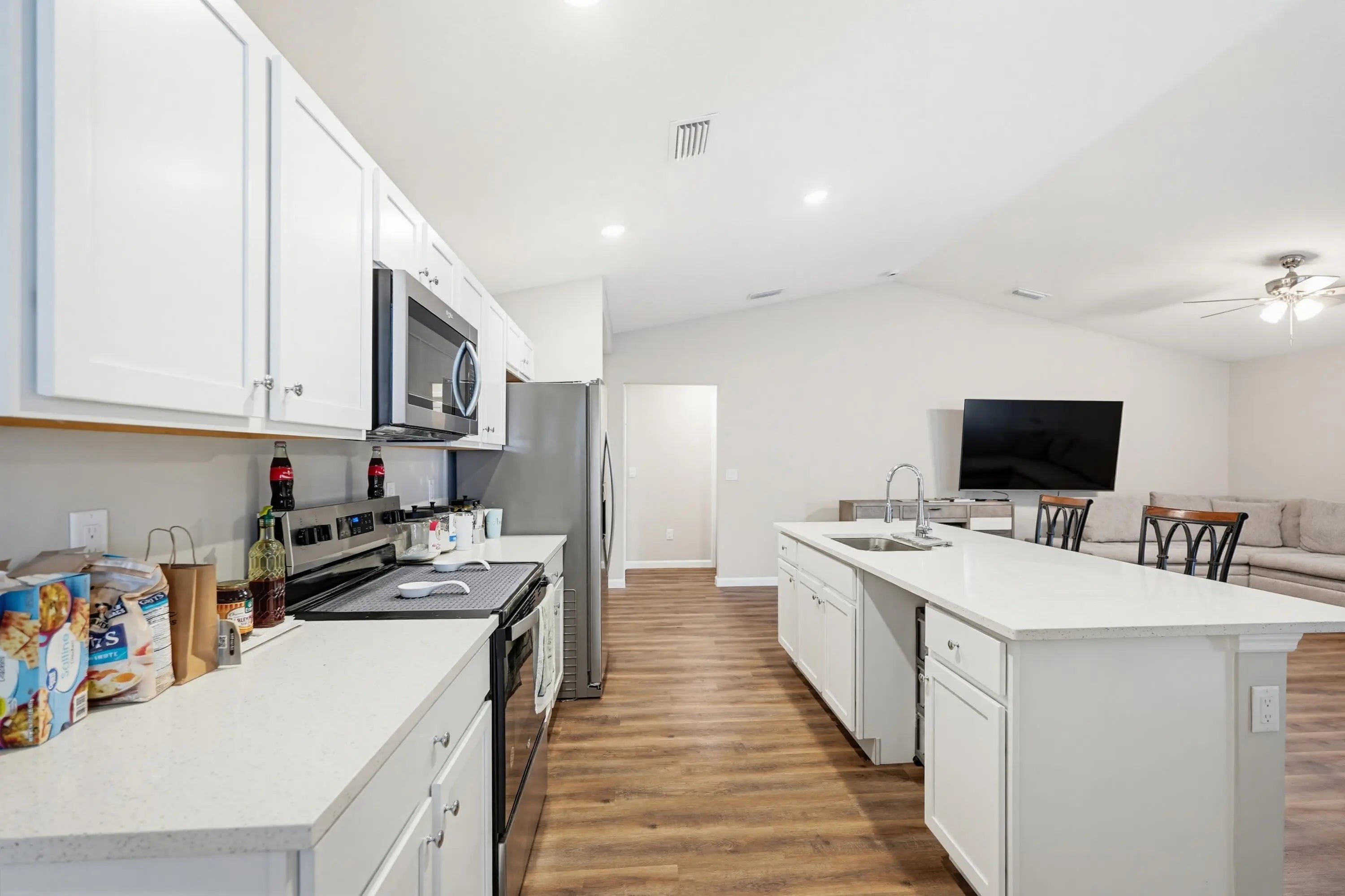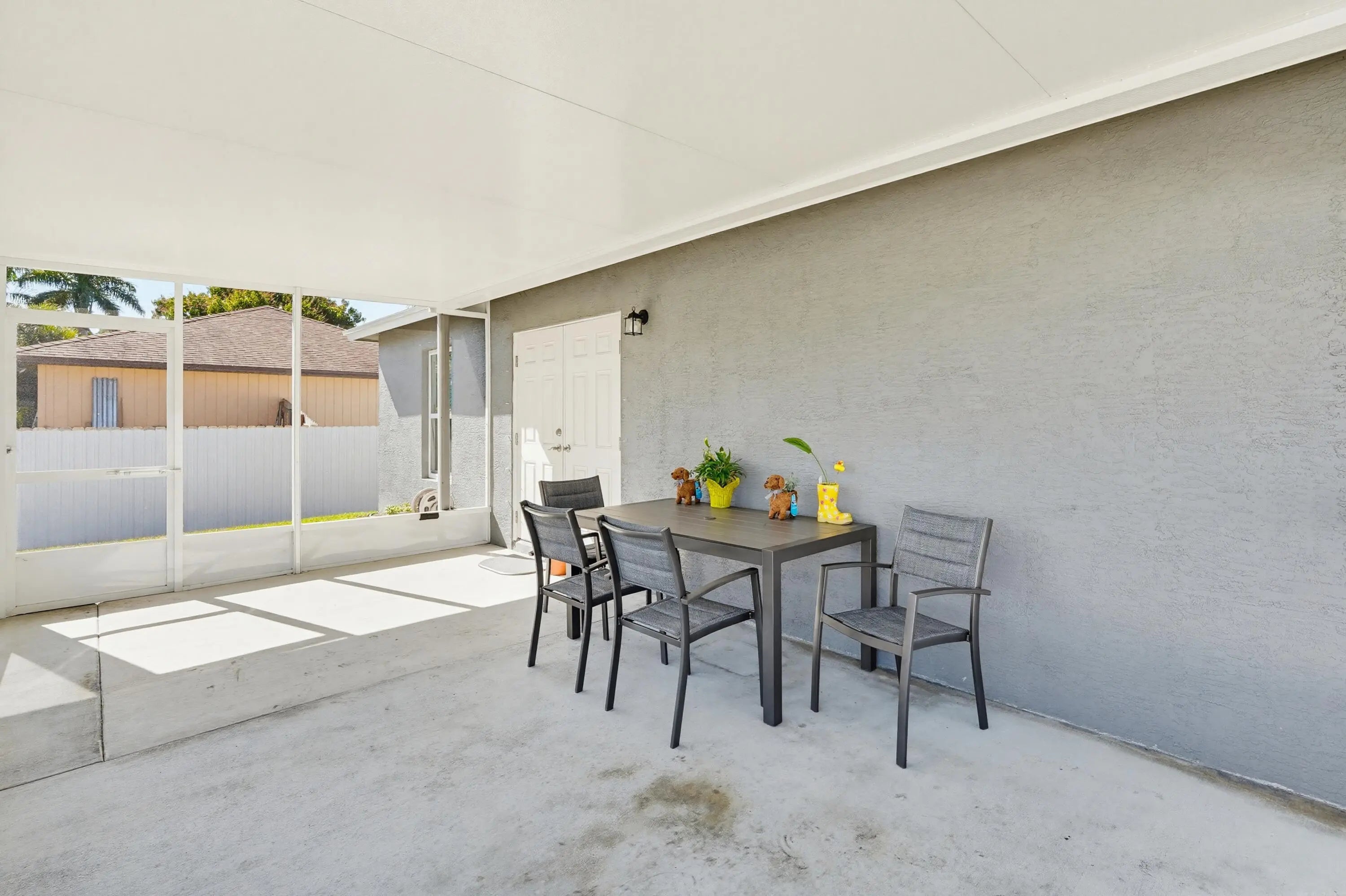 You'll fall in love with this charming newly built 2025, 4 bedroom and 2 bathroom fenced in home! It features an oversized driveway. Inside, you'll find 4 bedrooms and 2 bathrooms, along with a spacious living room and a massive eat-in kitchen complete with a center island. The dining room is perfect for gatherings, and the expansive screened-in lanai offers an ideal space for entertaining. The 2-car garage provides extra storage. Additionally, this home comes with all the furniture you see you'll enjoy the convenience of supermarkets, commercial plazas, and highways just a 5-minute drive away. This home has it all!