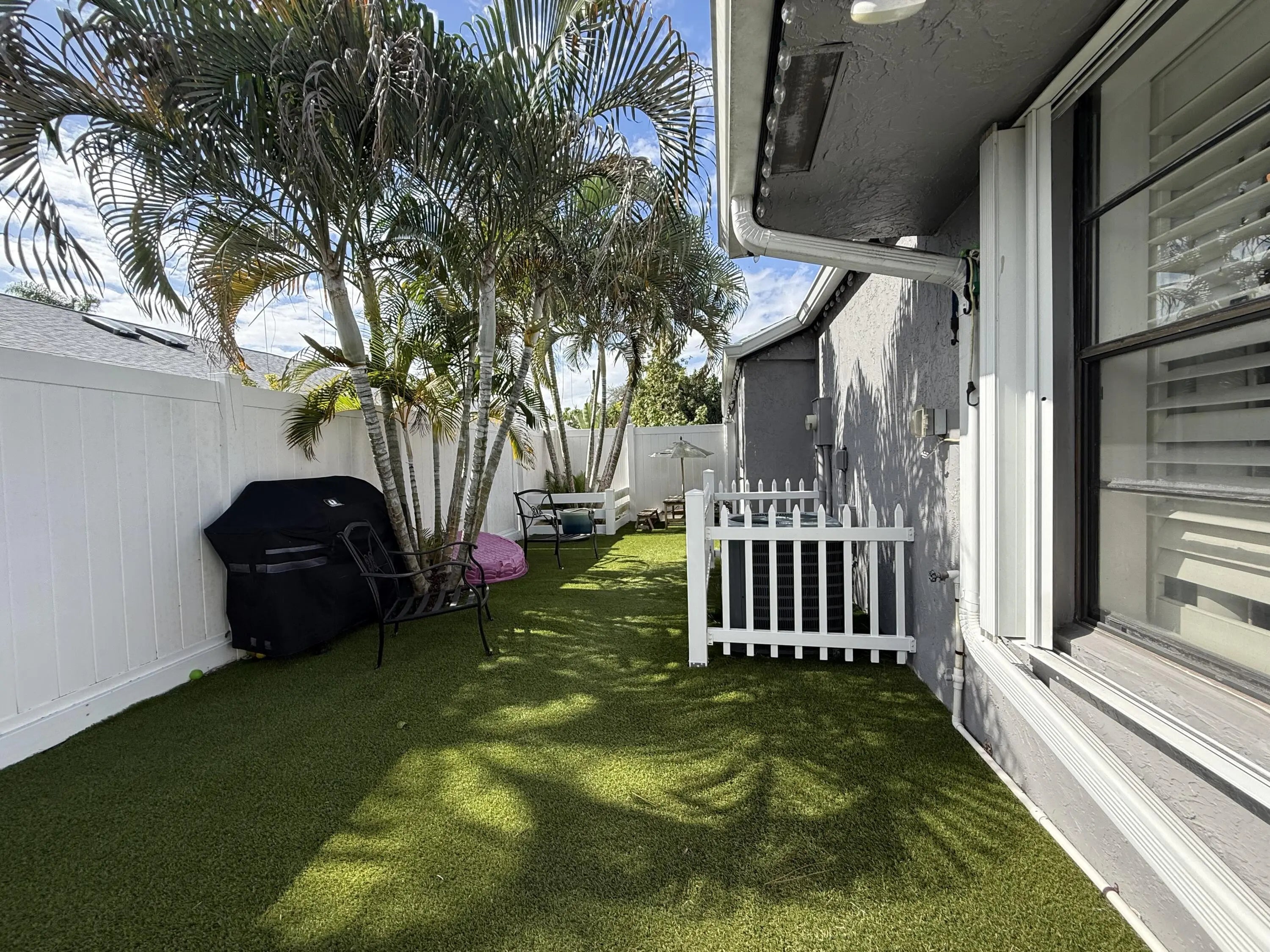Make this lovely house your next home, located in the heart of West Palm Beach. A CBS corner Villa with 3 bedroom 2 bathroom, with a car garage and 2 additional parking spaces on your driveway. A patio with artificial grass so you don't have to take care of the lawn. Roof was installed few years ago. HOA includes security system, building insurance, ,lawn care, basic cable and common areas. Clubhouse has a gym, an olympic swimming pool, tennis and racquetball courts and pool tables. Don't miss the opportunity to live in a quiet hidden neighborhood near the airport, restaurants, parks and shopping centers.