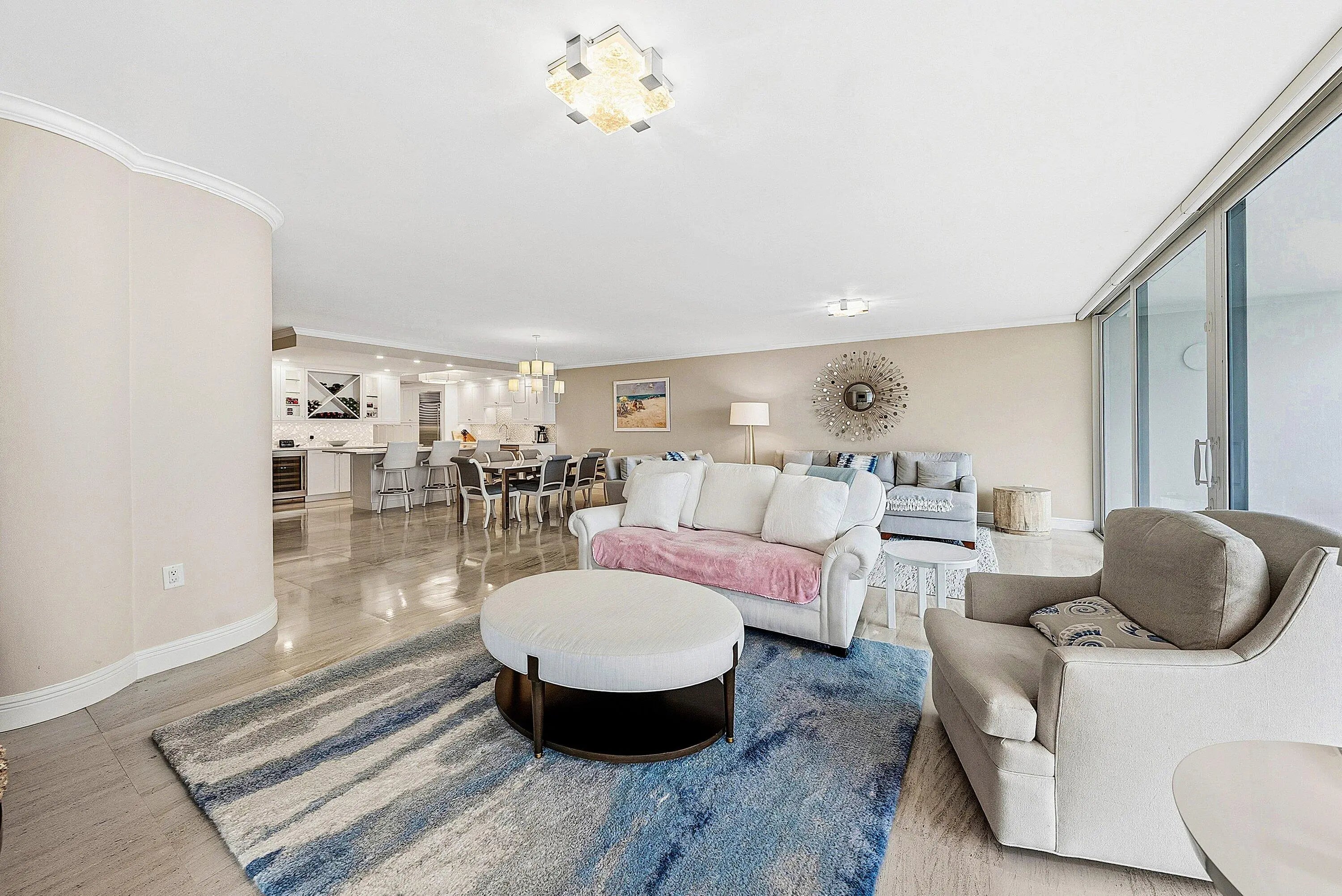 Beautifully renovated, direct oceanfront condominium offering two bedrooms and two-and-a-half baths. Features include full impact glass, marble floors, and a gourmet kitchen with Wolf, Asko, True, and Sub-Zero appliances. The spacious primary suite boasts a walk-in closet and a luxurious, spa-inspired bath, complemented by an en-suite guest bedroom. An expansive balcony showcases unobstructed ocean views overlooking the beach.Sailfish Point provides an unparalleled lifestyle with a full-service marina accommodating yachts up to 100 feet, private airport access with on-site U.S. Customs, and an oceanfront country club featuring fine dining, tennis, pickleball, a state-of-the-art fitness center, spa, and even a helipad.