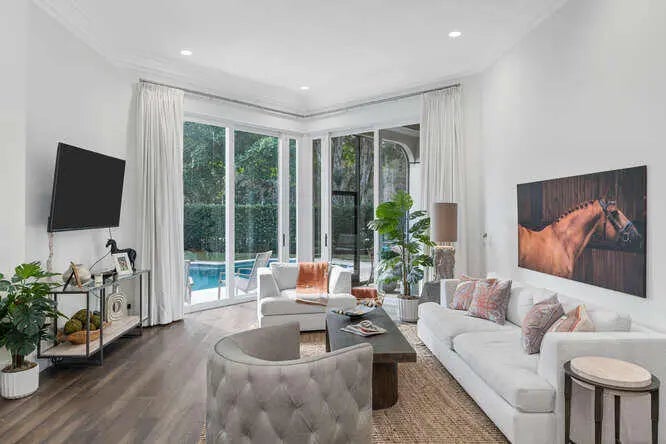 Tucked away at the end of a quiet cul-de-sac in Eagles Landing, this beautifully updated single-family home sits on a large, private premium lot within the gated, prestigious Palm Beach Polo & Country Club. Thoughtfully renovated from top to bottom, this home offers an easy, comfortable layout designed for spacious living and entertaining. The kitchen is brand new with top-of-the-line appliances, complemented by brand-new lighting, fresh interior and exterior paint, updated landscaping, engineered hardwood floors throughout, and classic plantation shutters. Floor-to-ceiling impact doors and windows flood the home with natural light and create a seamless transition to the outdoors.