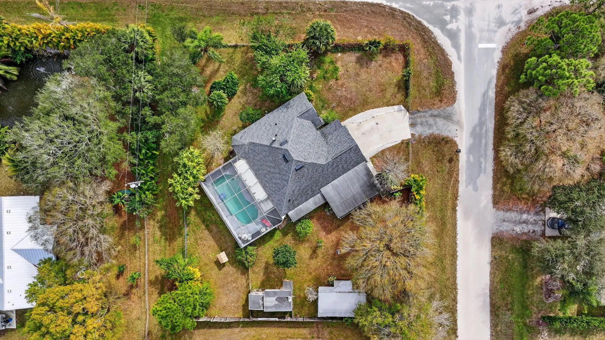 Charming 3BR/2BA home featuring a screened, caged-in pool with covered patio space ideal for relaxing or outdoor dining year-round. Spacious primary suite includes separate tub and shower. Garage conversion provides flexible family room living area. Home also offers a den/office, generous storage throughout, screened porch, workshop outbuilding, and a nicely sized yard with room to garden, play, or entertain. Comfortable floor plan supports everyday living, hobbies, and gatherings, with versatile indoor and outdoor spaces designed for function, comfort, and easy Florida living.