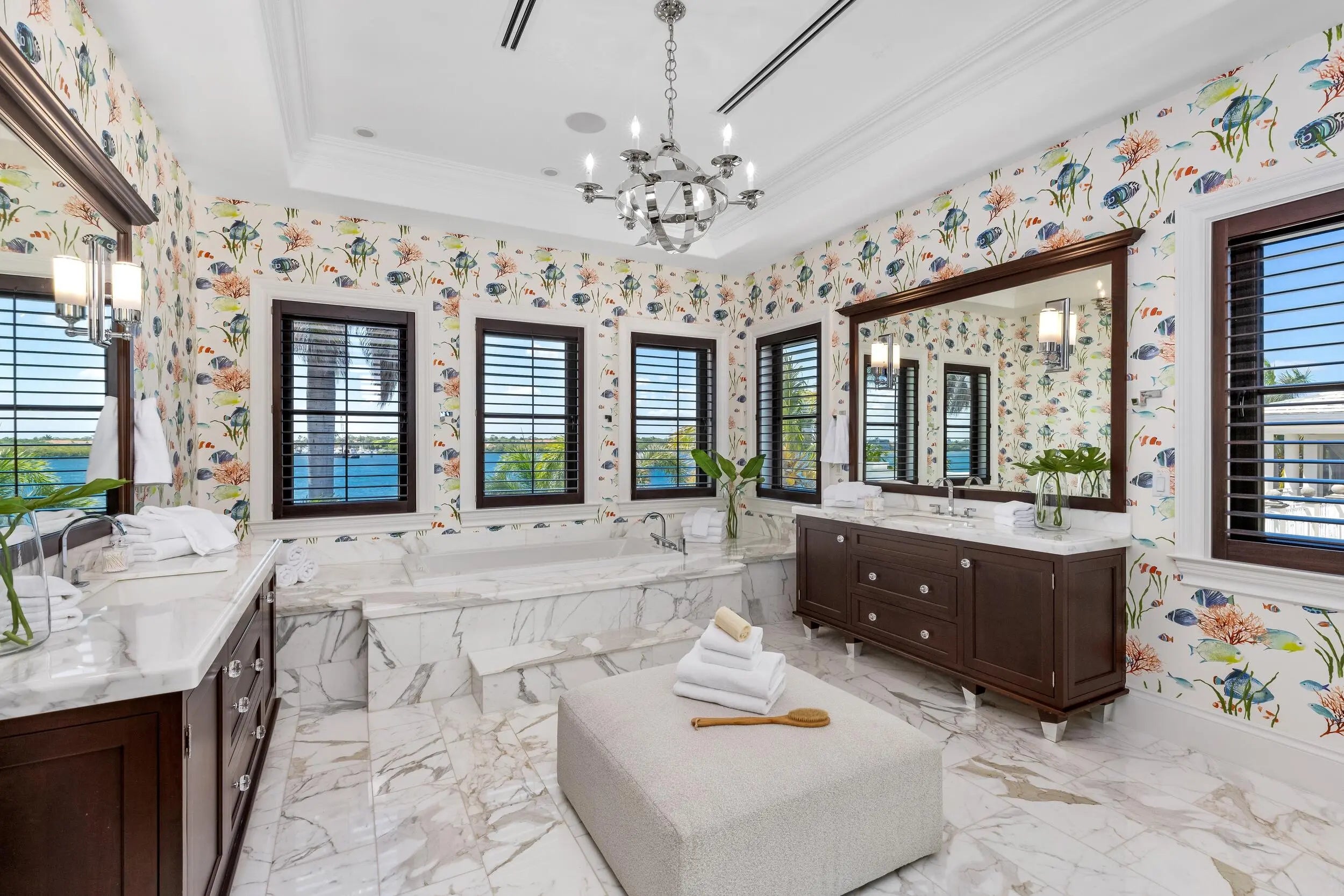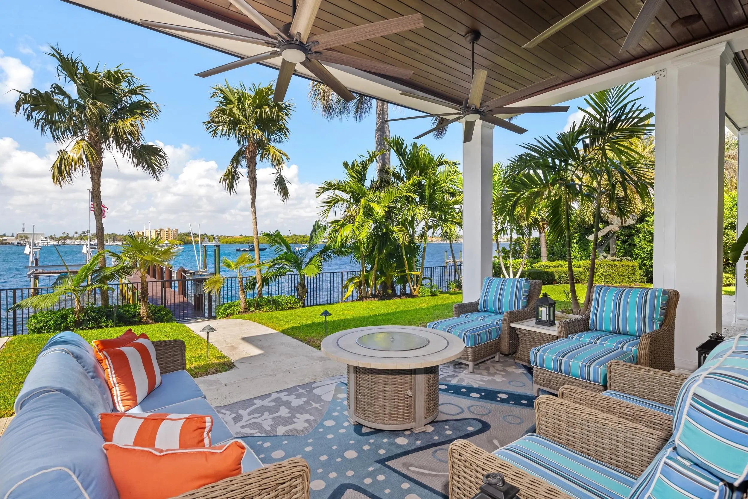 Stunning British Colonial estate in serene Point Manalapan. This elegant and inviting 5BR/5.2BA home is situated on a fantastic, lakefront lot and features breathtaking views of the Intracoastal. Gracious floorplan with welcoming, double height reception room, formal dining room, and spacious great room. Gourmet kitchen with large island, top-of-the-line appliances, and butler's pantry. Expansive primary wing complete with sitting area, dual walk-in closets, large bath with dual vanities, and fabulous covered balcony with stunning water views. Gorgeous outdoor spaces with covered loggia that spans the entire back of the home, summer kitchen, pool with spa, and lush tropical landscaping giving the home a relaxing, resort-style feel.
