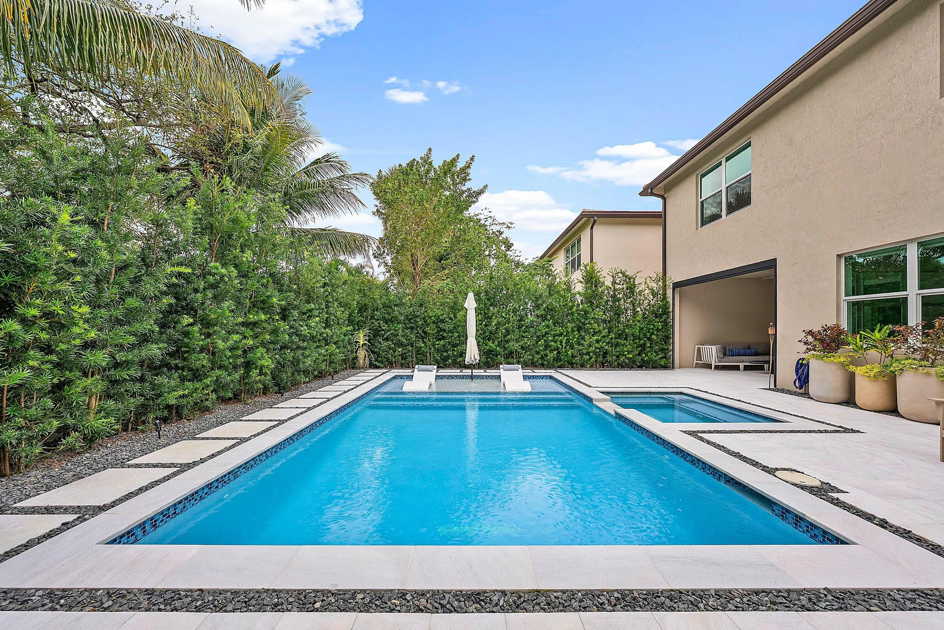 Auto Sprinkler, Covered Patio, Custom Lighting, Outdoor Shower
