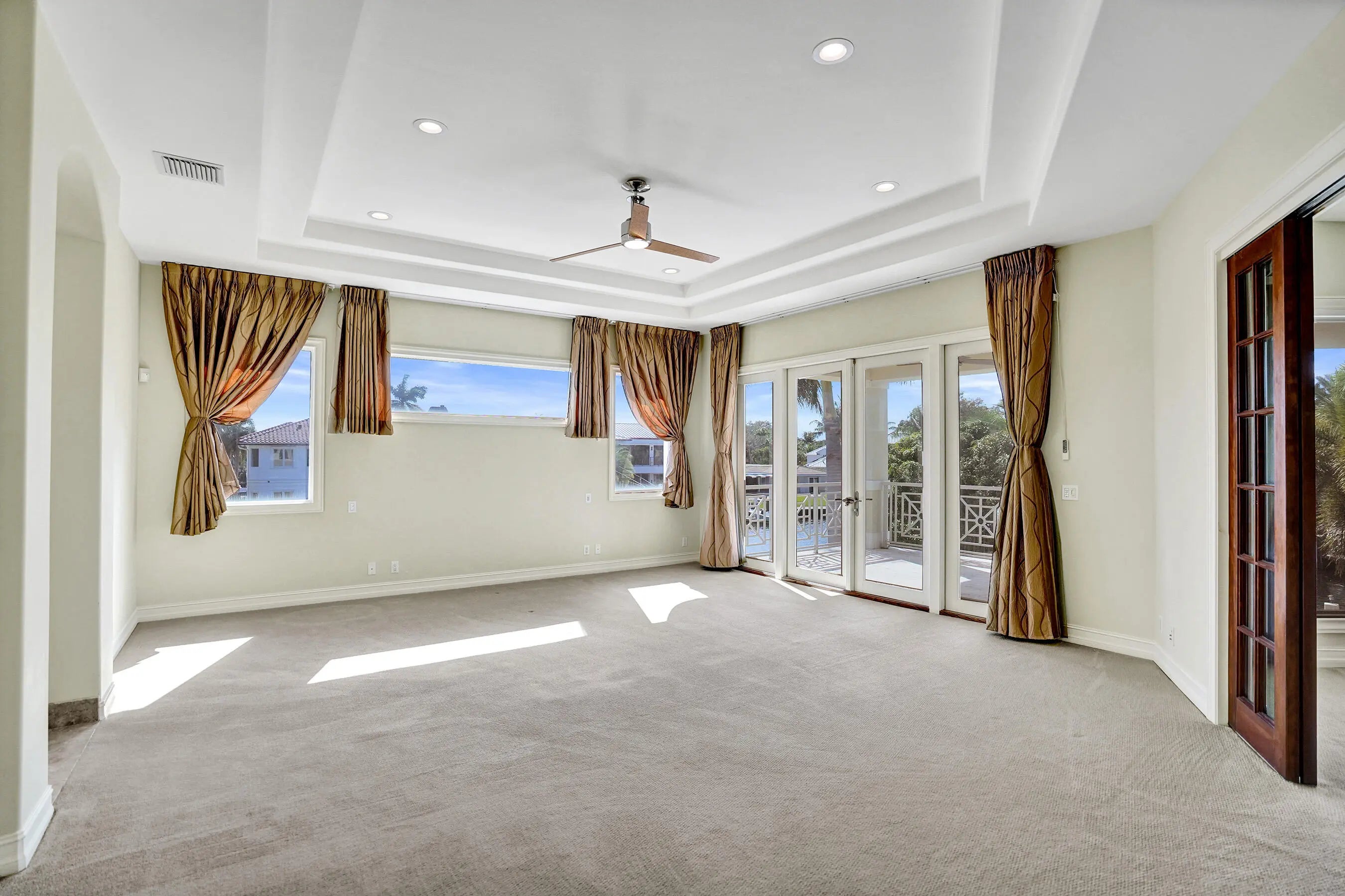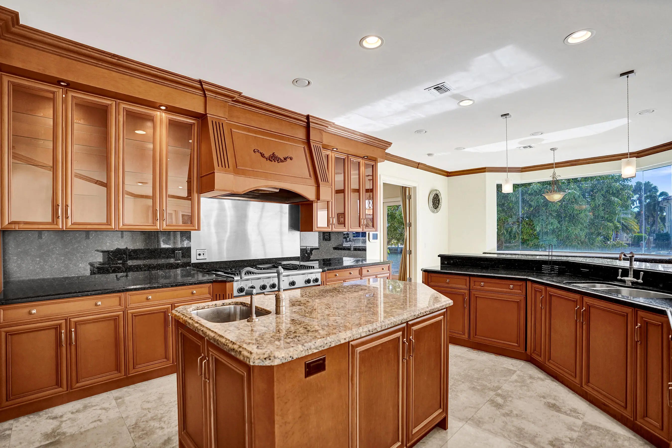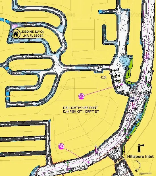 Welcome to your Gated WATERFRONT Point Lot Estate with 223' of deep water frontage! Set along one of Lighthouse Point's most coveted island streets, this 5 Bed + Office + 6 Baths + 3 Car Garage + 1 Car Carport + Pool distinguished waterfront estate presents a rare convergence of architectural refinement, privacy, and premier yachting access. This residence is thoughtfully designed for those who value seamless indoor-outdoor living and life on the water, offering an elevated coastal lifestyle defined by elegance, scale, and quiet exclusivity. A grand entry opens to a formal living room with floor to ceiling windows, coffered ceilings and fireplace, flowing seamlessly into a formal dining room with a beverage center, creating an elegant backdrop for sophisticated gathering.