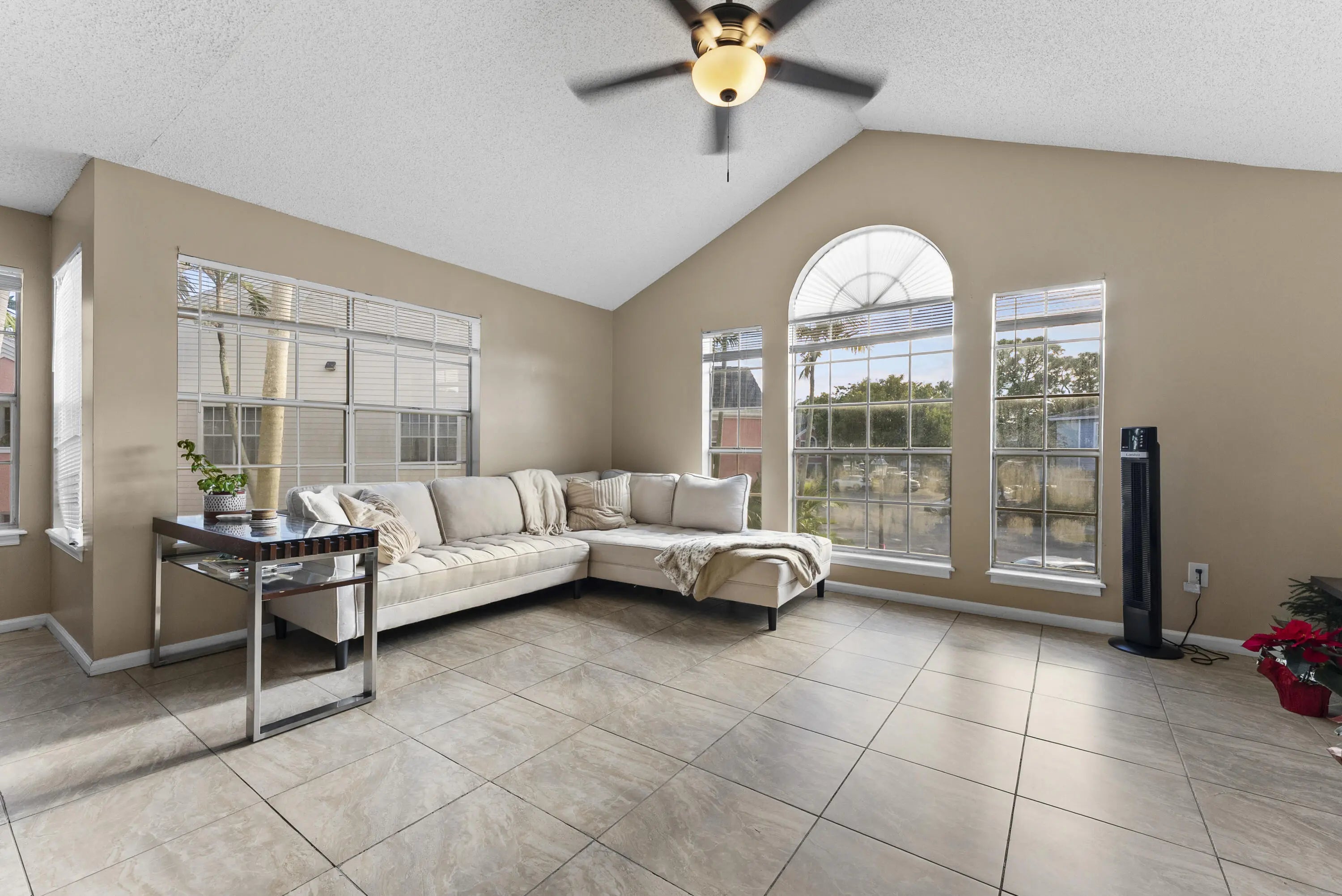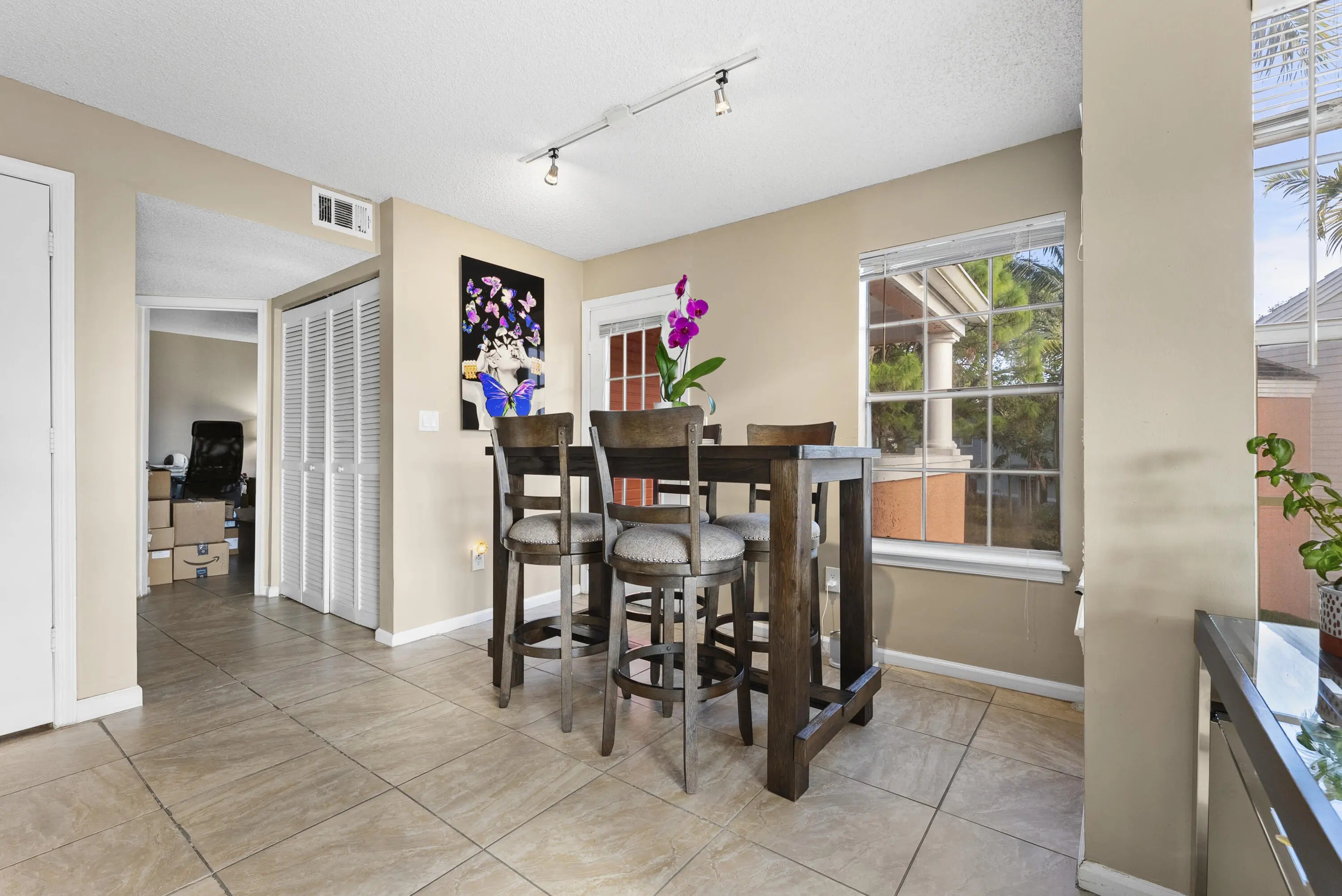 Located in the highly desirable, gated community of Bahia in East Delray Beach, this beautifully maintained 2-bedroom, 2-bath condo offers an ideal blend of comfort and convenience. The unit features cathedral ceilings and a spacious open great room where the stainless-steel kitchen, dining area, and family room come together seamlessly. Large windows flood the space with natural light, creating a bright and inviting atmosphere. Both bedrooms include en-suite bathrooms, and the dedicated dining area overlooks the covered private patio. Additional storage is conveniently located in a closet off the balcony.