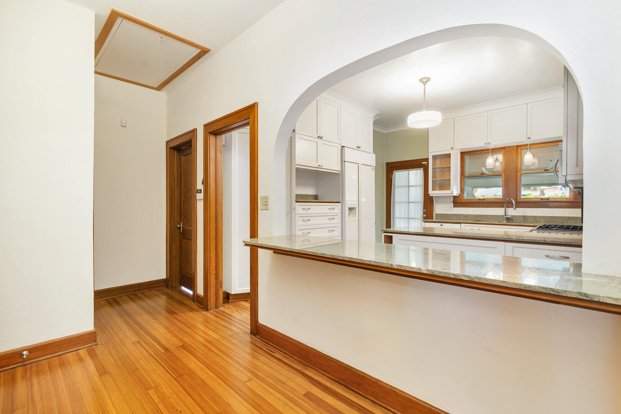 Built-in Shelves, Fireplace(s), Foyer, French Door, Cook Island, Pantry, Pull Down Stairs, Stack Bedrooms