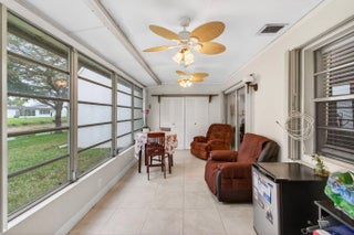 Golden Lakes Village 55+ villa Canal-view setting Enclosed Florida room with laundry Tile throughout Hurricane shutters A/C 2022 Condo fee includes water, cable, exterior, securityFrom the moment you step into this Golden Lakes Village 55+ villa, the canal-view setting sets the tone. The layout flows easily for everyday living, with tile flooring throughout and a bright, open feel that draws you toward the back of the home. As you move through the main living space, the Florida room becomes the natural destination: an enclosed porch that expands the usable footprint to 1,249 sq ft and frames peaceful water views that are easy to enjoy morning, afternoon, or evening.The enclosed Florida room offers flexible space for relaxing, hosting friends, or creating a