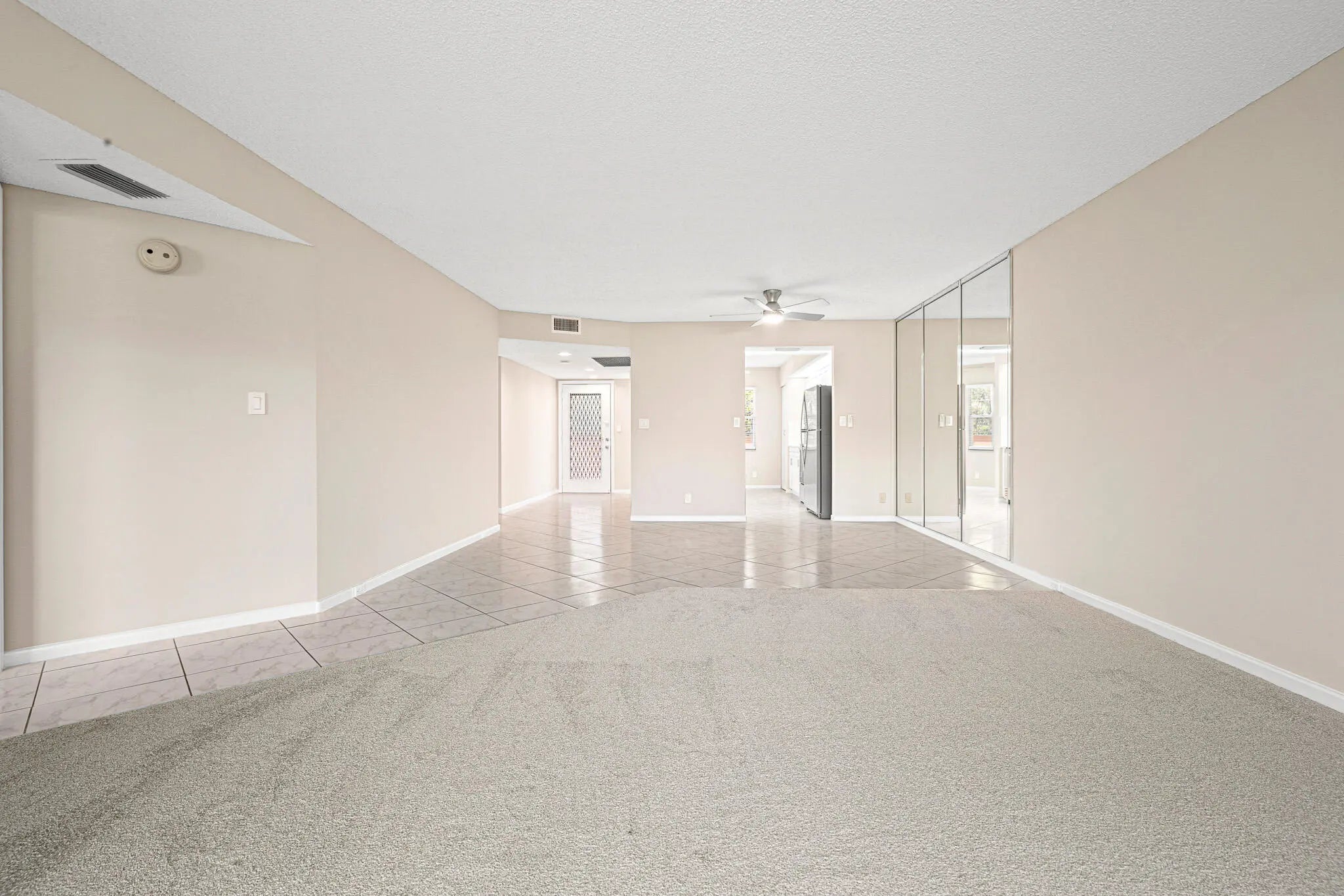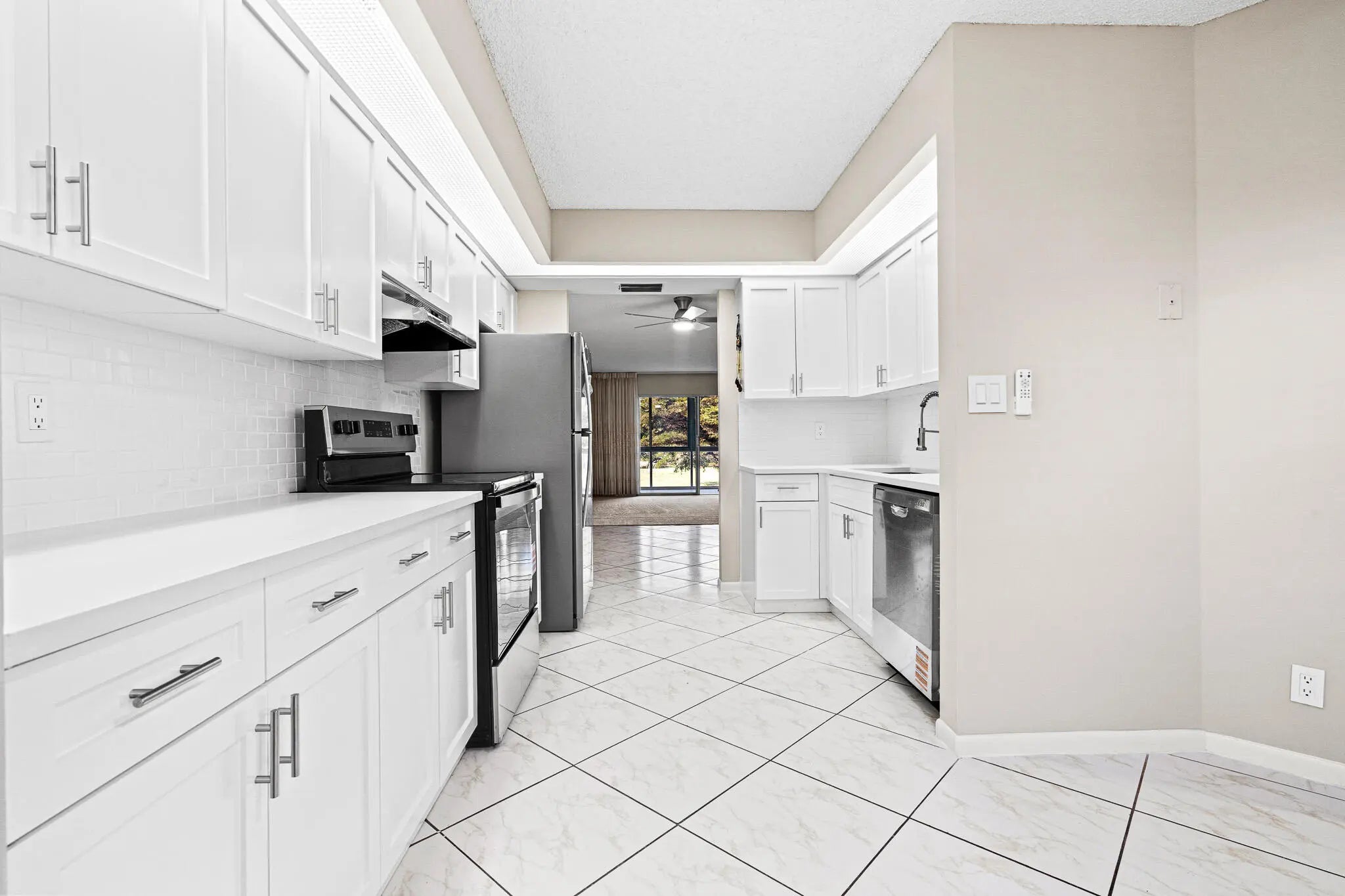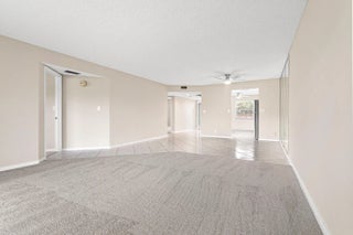 IRIS 2-bedroom, 2-bath residence featuring a bright, open layout with neutral tile flooring, a comfortable new carpeted living area, and sliding glass doors leading to a private balcony with impact Windows overlooking the pool and garden. The updated kitchen offers white shaker-style cabinetry, ample storage, and stainless steel appliances. Washer and dryer conveniently located inside the unit. Well-maintained baths with clean, neutral finishes. Prime location near the theater and clubhouse in a desirable 55+ community.Wynmoor offers pickleball, golf, The Cove restaurant, craft studio, ballroom, billiards, BBQ grills, library, 60+ clubs, and so much more. The billiard room was recently updated, and Thursday nights at The Cove are a perfect way to kick off the weekend!