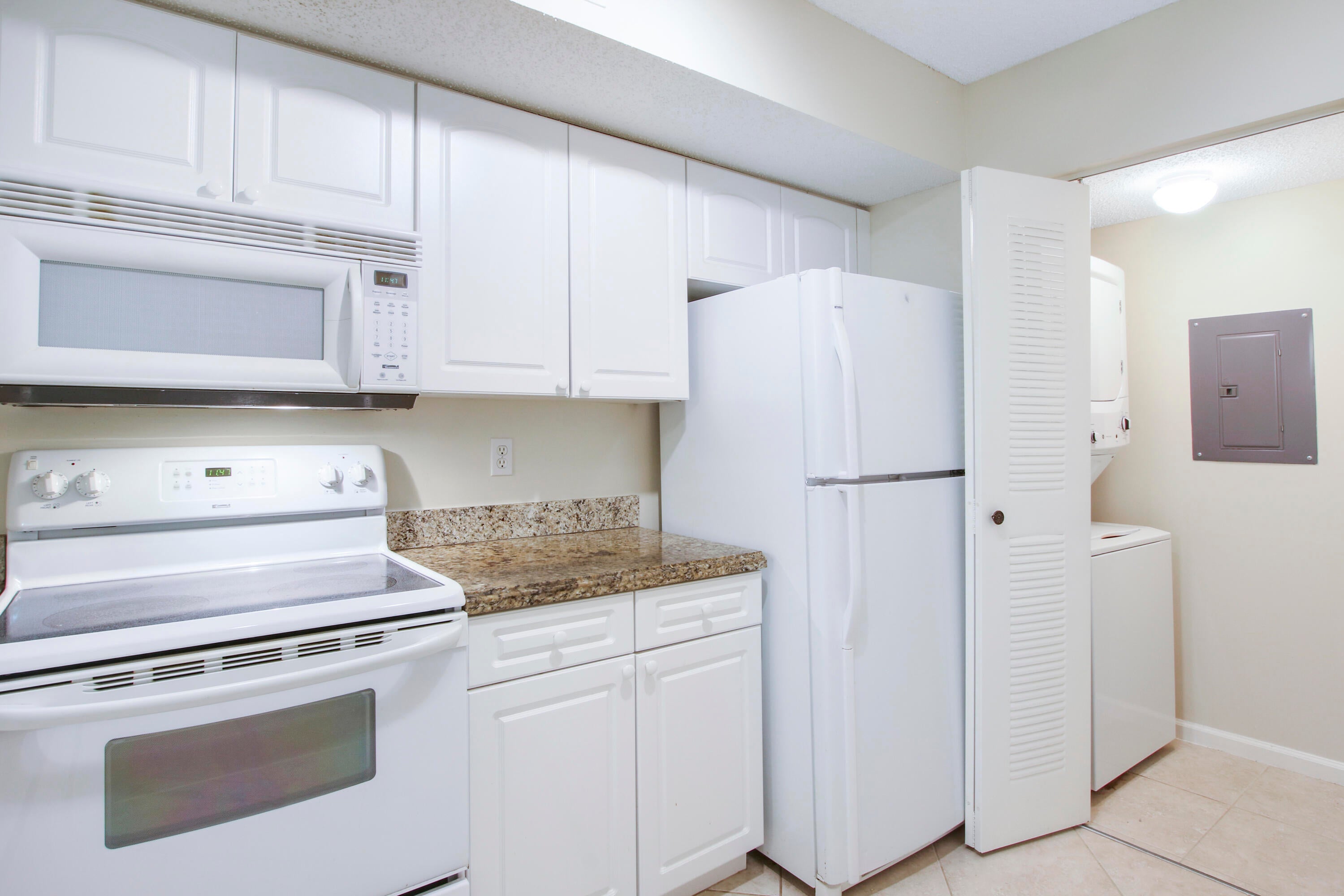 Rarely Found 1st Floor 3 Bed/2 Bath Rear Corner Unit With Shade & Privacy in desirable Lighthouse Cove. Spacious Open Floor Plan With Tile In All Rooms & Granite Kitchen Counters. Has 2024 Bosch Dishwasher, 2023 Range & Microwave. Newer Washer/Dryer & HVAC. Full Accordion Shutters. Lots Of Storage with 2 Walk-In Closets. Step Out To Your Private Screened Patio With Garden View. This Lovely Condo Is Near The Main Entrance With Quick Access To The Clubhouse & Amenities. Enjoy The Tropical Pool, Cabana With Grill, Pickleball, Fitness Center, Billiards & Racquetball. Water, Basic Cable Included. 2 Assigned Parking Spaces. No Trucks or Motorcycles. No Pets or Smoking. Short Walk To Grocery Store & Great Restaurants. JUST 2 MILES TO OCEAN BEACHES With Nearby Parks, Golf Courses & Entertainment.